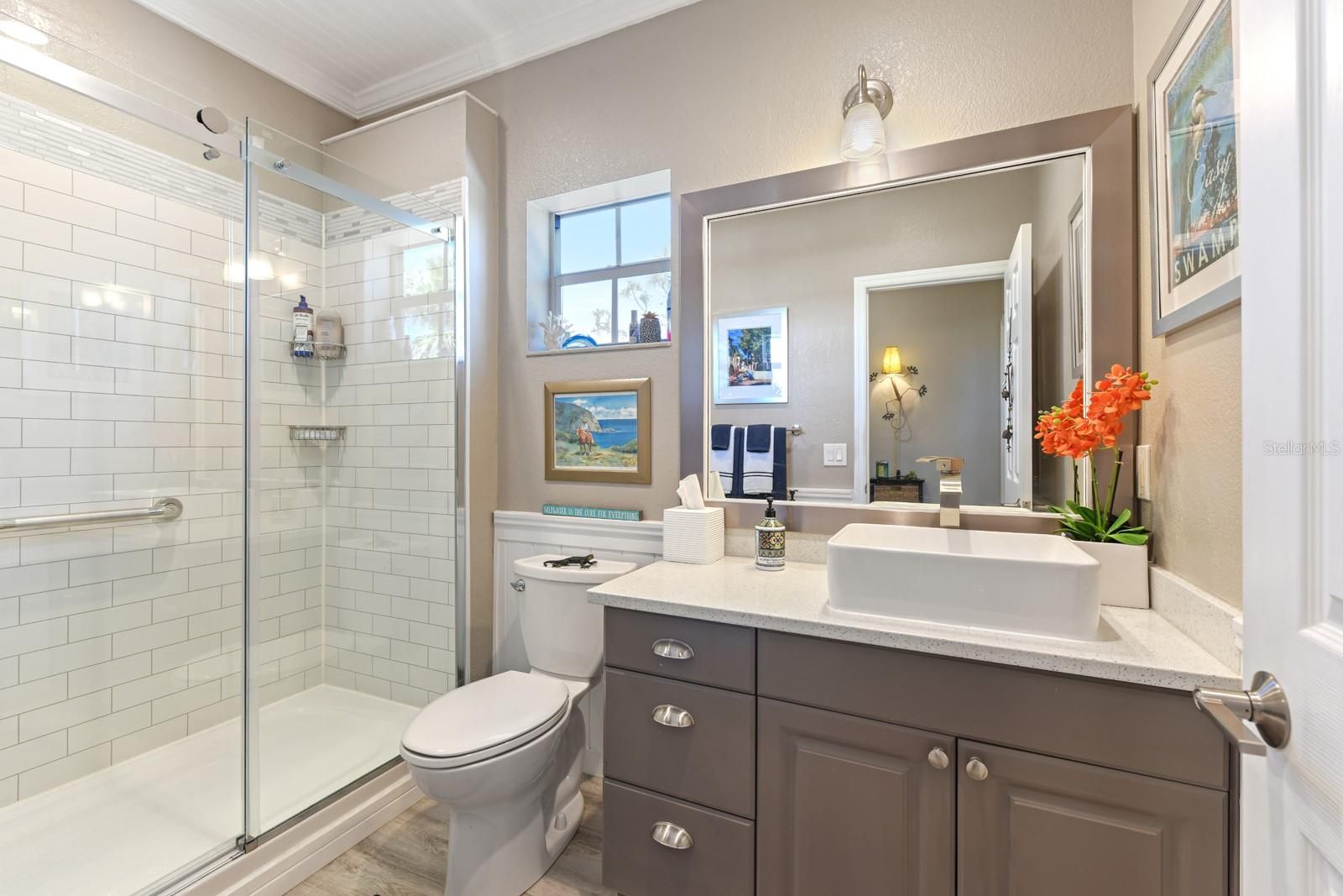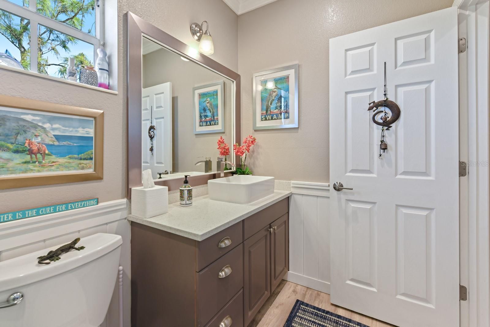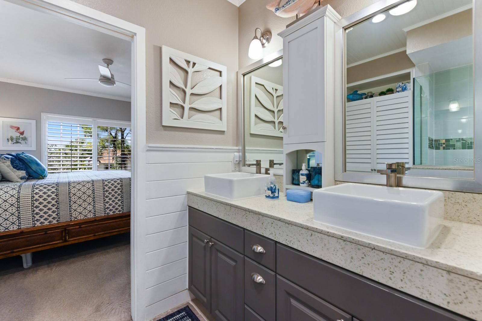 Surrounded by tropical trees within a beautiful 8-unit community in Burnt Store Marina you’ll find this gorgeous 1,585sf second floor condo featuring 3 bedrooms, 2 baths and private single car garage. Light and bright, this spacious and open floor plan with windows on all four sides is offered TURNKEY FURNISHED with distinctive touches you won’t find anywhere else! Inside, you'll be greeted by tasteful neutral paint, stylish finishes, crisp plantation shutters over all windows and a beautifully furnished interior! This interesting layout provides a dining area with a comfortable living area that showcases easy-care wood plank luxury vinyl flooring. On cooler evenings enjoy the inviting fireplace that adds both charm and warmth. The adjacent enclosed lanai allows an extended living space to enjoy year-round with long views of the golf course and sunsets in the evening. An open and spacious kitchen features light granite countertops with attractive backsplashes, and tall 42-inch cabinets with crown molding. WIth a delightful dinette area, newer stainless appliances and a breakfast bar open to the living area, you’ll enjoy entertaining with friends. The split bedroom layout gives you and guests privacy and both bedrooms have designer updates with board and batten walls and crown molding. The two bathrooms were also artfully updated. The guest bath features new a vanity and shower with custom beadboard ceilings and board and batten side walls, and the owner's bath has a complete redesign with new shower, extra storage closet, dual vanity with granite counter, storage tower and two vessel sinks. Additional details include stylish ceiling fans, new dishwasher and a newer full-size washer and dryer. The community is wonderfully maintained and the buildings were upgraded with newer metal roofs, ensuring long-term durability. This condo combines comfort, style, and thoughtfully smart features – come take a look! And be sure to explore the amenity-rich Marina community featuring a 27 hole public golf course, tennis, pickleball and active fitness center, 3 onsite restaurants, Freedom Boat Club, wet and dry boat storage and the fastest access to open water in the area. Enjoy our active, friendly lifestyle and find out why people love to call this home!