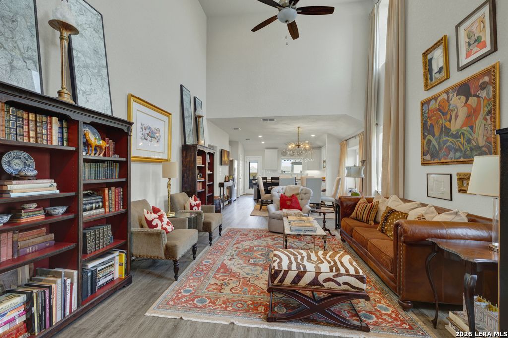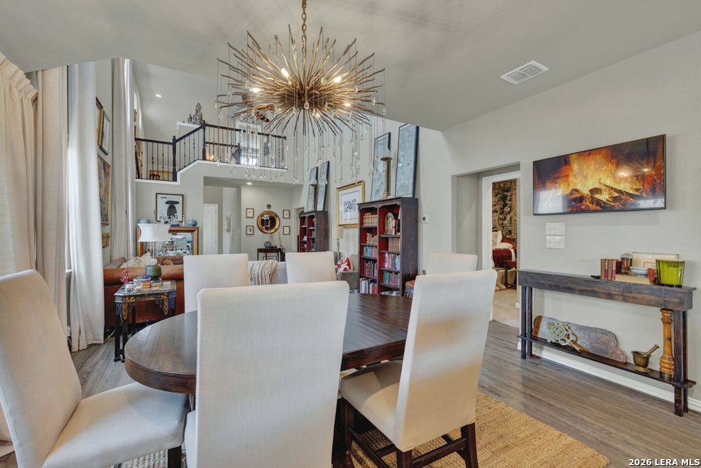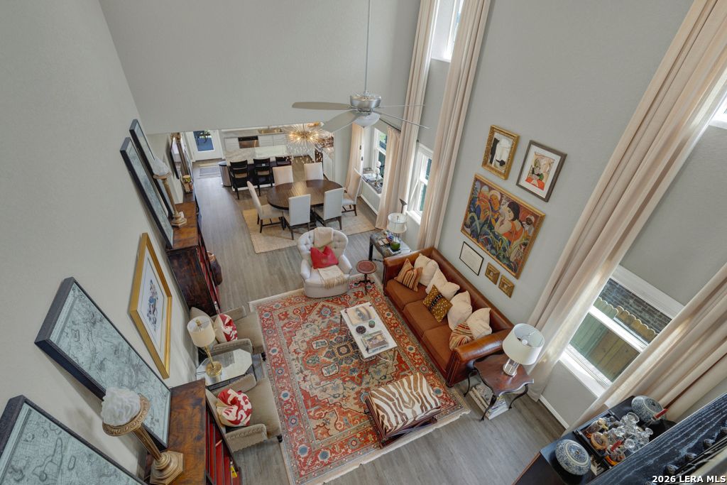 Welcome to 2080 Cowan Dr., located inside the vibrant Veramendi subdivision of New Braunfels, where the Texas Hill Country meets the convenience of city living. This prime location, between the New Braunfels Loop 337 and Highway 46, is just a short drive to the shopping, dining, and entertainment of downtown New Braunfels. Entering this two-story home, you are immediately greeted by 18-foot ceilings and abundant natural light, truly elevating the main living space. The open floor plan allows you the freedom to create your own unique space with three bedrooms, two-and-a-half baths, and a media room/office that could easily be converted into a fourth bedroom. From the main level, guests can access the well-appointed half bathroom while enjoying the living room, dining room, and kitchen. The kitchen boasts a large island with additional cabinets, spacious granite countertops, a breakfast bar, and a gas stove. The master bedroom is conveniently located on the main level, complete with a large walk-in closet and en suite bathroom. The master bathroom has a walk-in shower, toilet closet, and dual sinks. Upstairs, the secondary bedrooms share another full bathroom and a great view of the home below. Just in time for spring, enjoy a short stroll to the community pool to cool off and BBQ. This home grants access to the New Braunfels Independent School District and is just a few blocks from Veramendi Middle School and The Goddard School of New Braunfels. If you are ready to embrace a close-knit community, this could be the one for you. Schedule a showing today to see it for yourself!