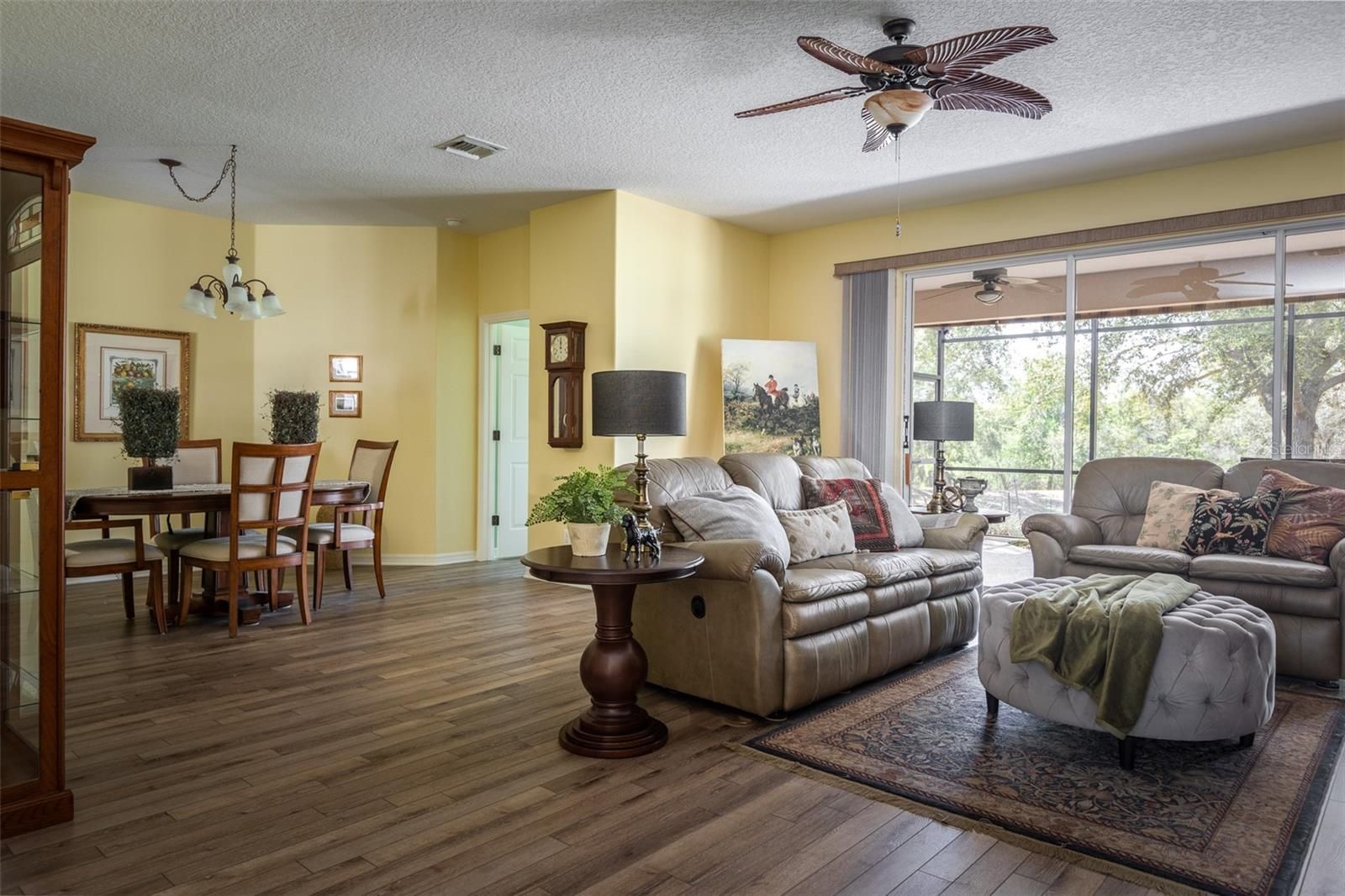Welcome to 20801 Queen Alexandra Dr. in Leesburg, Florida—a beautifully maintained 3-bedroom, 2-bath home lovingly cared for by its original owner and thoughtfully upgraded over the years. This modified YORK II floor plan offers exceptional flexibility, including a separate bonus space located just off the private courtyard—perfect for a home office, workout room, studio, or quiet retreat. From the moment you arrive, the home’s fantastic curb appeal stands out with mature landscaping and an inviting entry through a private courtyard. Inside, a foyer with soaring ceilings welcomes you into the main living area, creating a bright and open feel throughout the home. Recent upgrades provide comfort and peace of mind, including a new roof (2019), Andersen energy-efficient double-pane windows (2023), and a new Carrier air conditioner and water heater (2024). Beautiful premium luxury vinyl plank flooring installed in 2022 flows through the home, combining style with durability. The spacious kitchen is designed for both everyday living and entertaining, featuring stainless steel appliances, premium 42-inch cabinetry with solid wood doors and drawers, and convenient pull-out storage. Step outside to your large lanai with an expanded birdcage enclosure, where you can relax and enjoy peaceful views of the expansive preserve. The space is ready for your personal retreat with hot tub hookups and pull-down awnings for shade and comfort. The primary suite offers a true retreat with three closets for abundant storage and private access to the lanai, creating the perfect place to unwind. Additional features include hurricane panels for added peace of mind during storm season. This one-of-a-kind home blends thoughtful upgrades, flexible living space, and serene outdoor views—all in a beautifully maintained property. Don’t miss the opportunity to make this exceptional home yours.