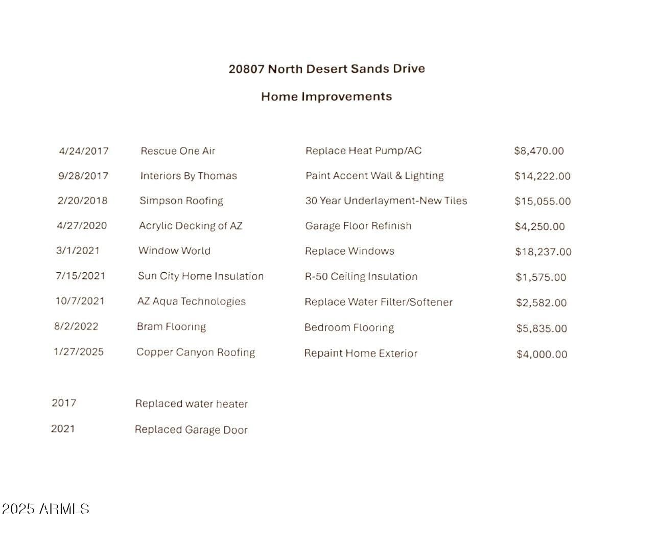 This gorgeous home is situated on an oversized lot! Plenty of room for a golf cart garage or casita. Come see this exquisite San Carlos model with striking curb appeal-turf & desert landscaping. Open & spacious living area w remodeled kitchen featuring granite countertops, updated cabinets & knobs, & S/S appliances. Bathrooms w stylish vanities & finishes. New roof (underlayment & tiles) 2018, HVAC 2017, windows 2021, int & ext repainted, water heater 2017, garage door 2023, garage floor apoxy 2020, water softener 2021, new insulation 2021-very efficient! Bedroom flooring 2022. LOW TAX & NO HOA! So many extras!