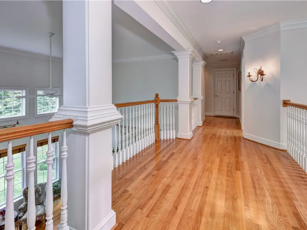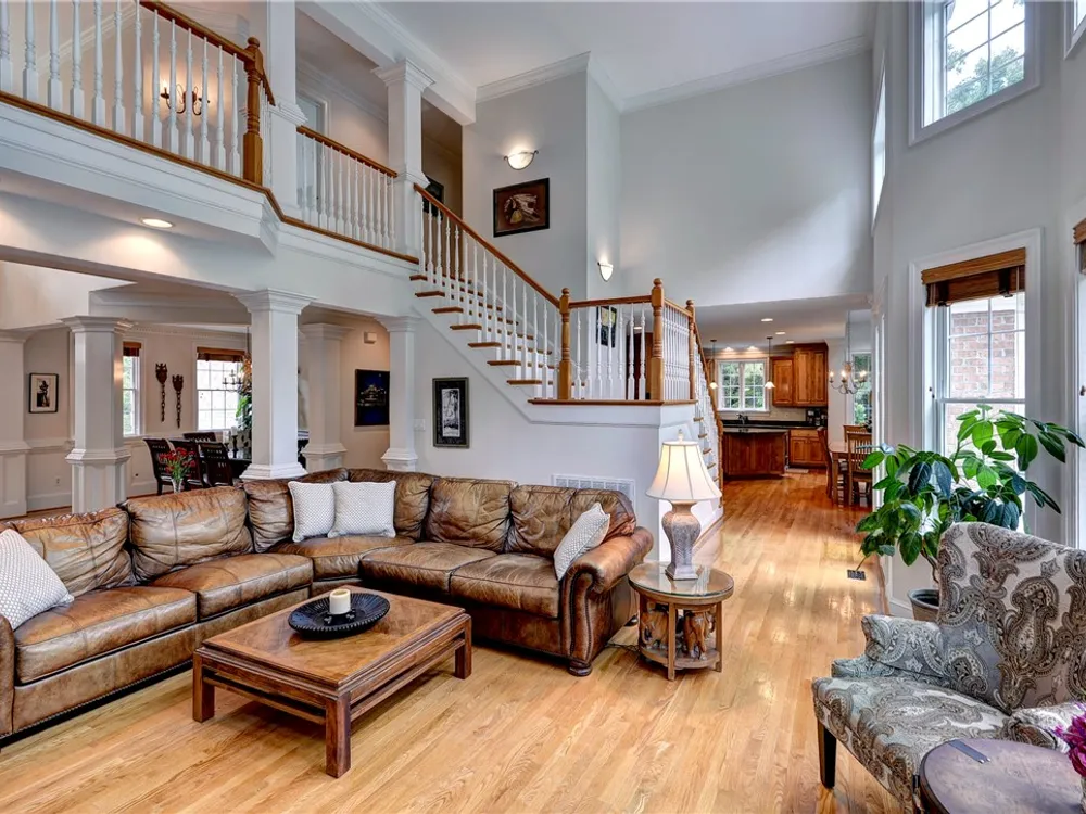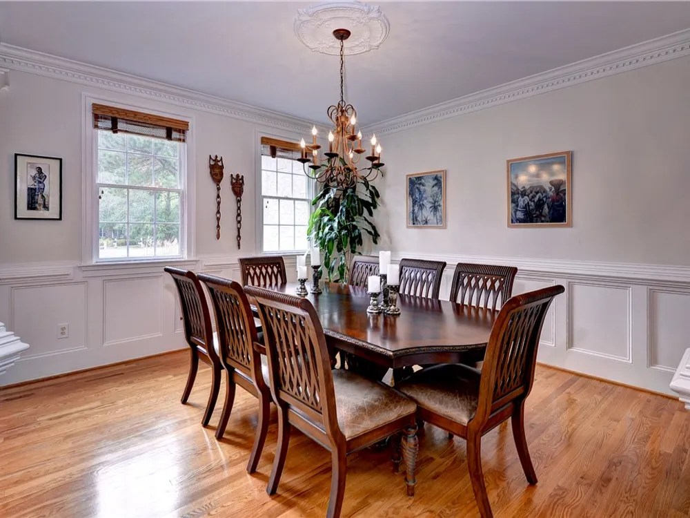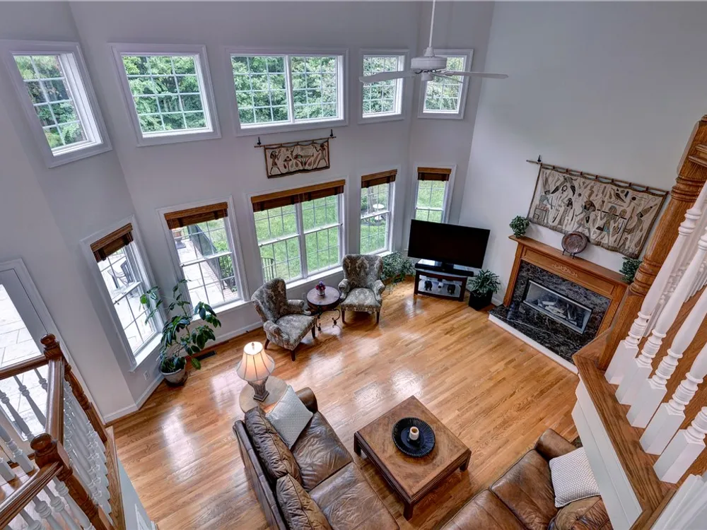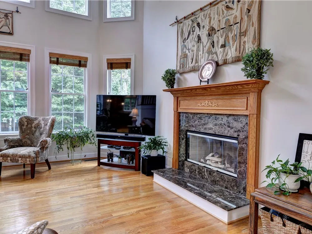 WOW! Truly an extraordinary home in sought-after Governors Land! Perfectly sited at the end of a quiet cul-de-sac, this all-brick residence has been meticulously maintained and is move-in ready. Offering 3,679 sq ft on a .65-acre lot, it is filled with natural light and beautiful custom millwork. The welcoming foyer is flanked by a home office with French doors and an elegant dining room with wainscoting and dentil molding. The great room impresses with a dramatic wall of windows overlooking a private, wooded, serene setting plus a natural gas fireplace. The kitchen includes a center island, granite counters, solid maple cabinetry, a large breakfast area, pantry, and abundant workspace. A spacious utility room with sink and storage adds convenience. The first-floor primary suite offers a large walk-in closet and en suite with Kohler bubble tub and shower. Upstairs are three additional bedrooms plus a bonus/5th bedroom. Outdoor living includes a screened porch and stamped concrete patio backing to tranquil wooded views. Extras: Pella windows and doors, Low-E double-hung windows, oversized 2-car garage with epoxy floor, sealed and conditioned crawlspace, and two walk-in attics.