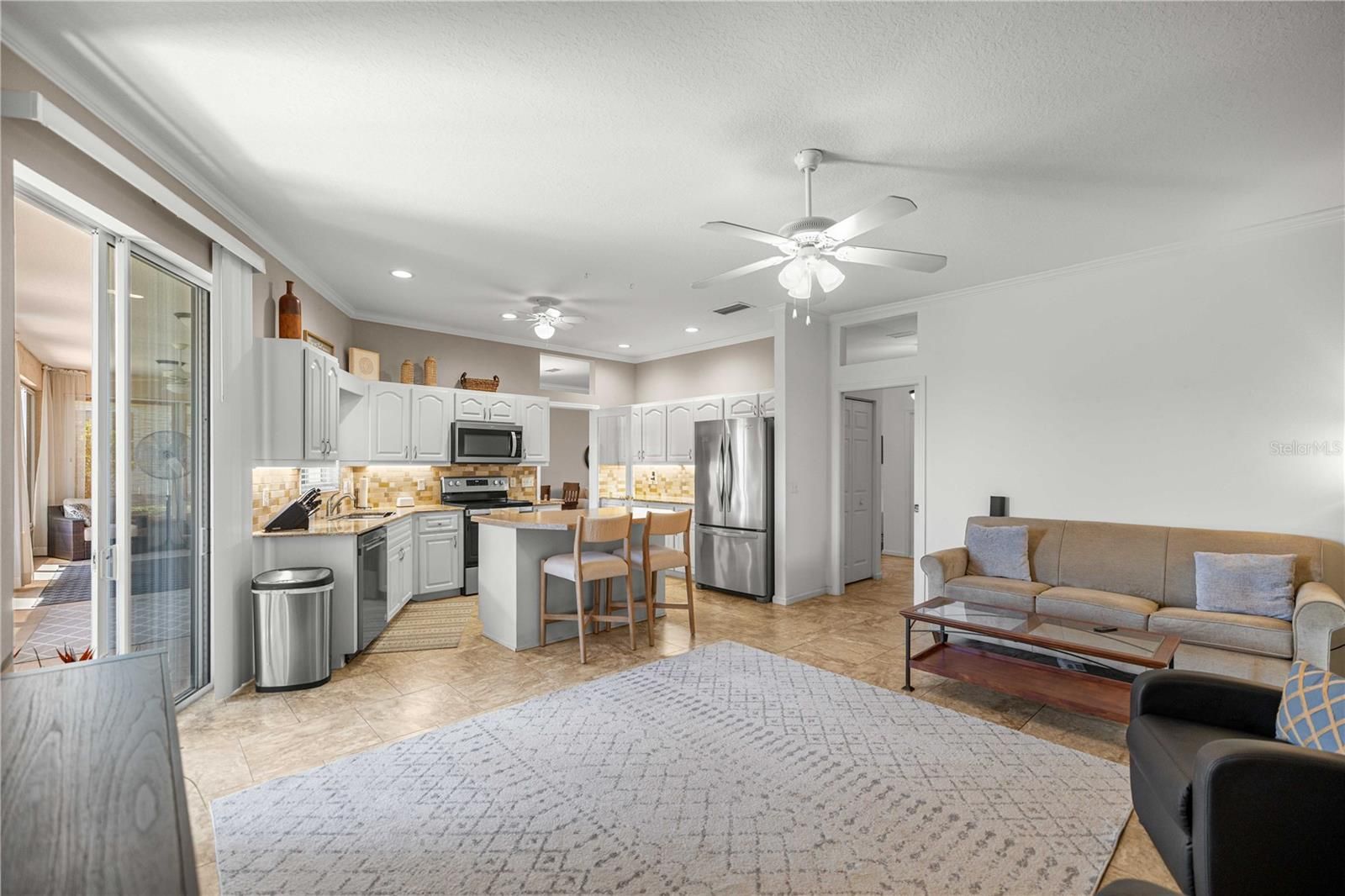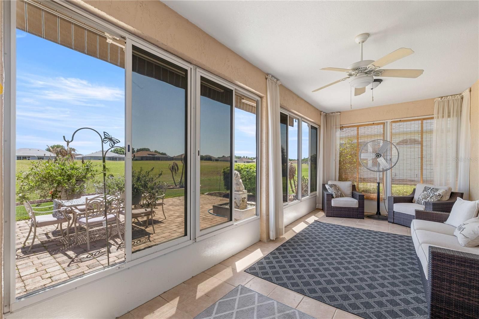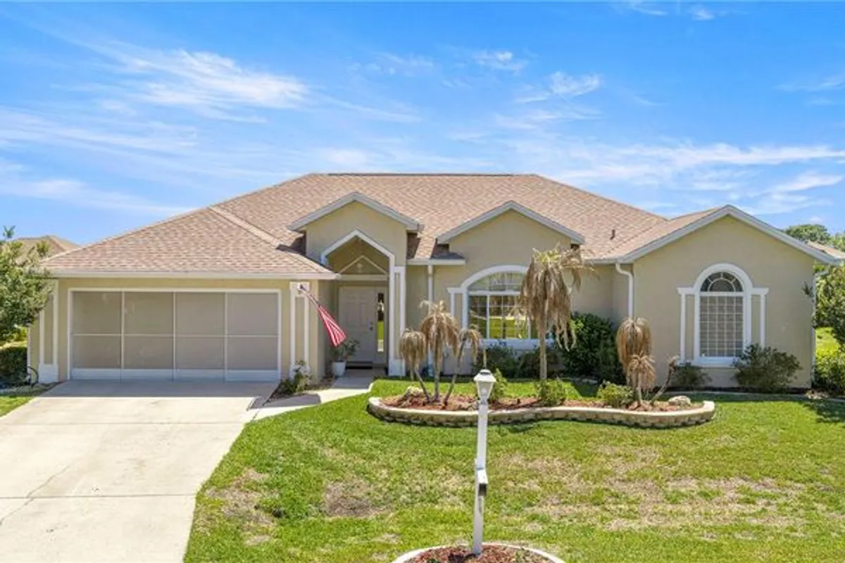 Welcome to Ocala Palms, one of Ocala’s premier 55+ communities, where lifestyle and location come together seamlessly. Perfectly positioned with golf course frontage on the 14th tee box, this home offers a unique advantage, set back facing the tips so you can enjoy the scenic views without the concern of errant tee shots. Inside, you will find a thoughtfully updated interior featuring granite countertops, new Whirlpool appliances, and a blend of laminate and tile flooring throughout for both style and durability. The enclosed lanai, complete with screened windows and sliding panels, creates a versatile space to relax year round while still enjoying the beautiful outdoor setting. Step outside to a dedicated patio area, perfect for cookouts and entertaining, all overlooking the golf course. A power awning provides added comfort and shade, making outdoor living even more enjoyable. The spacious two car garage offers ample storage and convenience. The roof was replaced in 2022, providing added peace of mind for years to come. Living in Ocala Palms means access to a wide array of amenities designed for an active lifestyle, including a community pool, golf course, fitness center, billiards room, and more. With modern updates, a premium lot, and pricing designed to attract strong interest, this home presents an exceptional opportunity to enjoy the best of Ocala living.