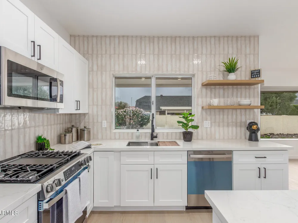 Fully Remodeled Stunner in Sun City West! This immaculate 3 bedroom home has been completely upgraded and is move-in ready. Featuring luxury vinyl flooring throughout, vaulted ceilings, recessed lighting, and a primary suite with spa-style bathroom and walk-in closet, custom vanities, and large rain showers. The sleek kitchen shines with quartz countertops, white shaker cabinets, stainless steel appliances, a custom island, and stylish backsplash. Extras include a den/office with double doors, a cozy family room, and an expansive backyard with a covered patio, perfect for entertaining. Dual pane windows, New Roof, AC, Water Heater and Water Softener!