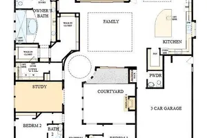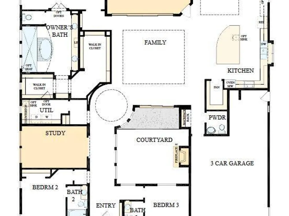 BRAND NEW 3 bed, 3.5 bath, enclosed study single level home with interior courtyard showcasing a huge gas fireplace, and 3 car garage; gorgeous huge chef's kitchen with large center island, walk-in pantry, GE Monogram appliances with 42'' built-in refrigerator; 16' and 9' sliding glass doors and large energy efficient windows; door connects utility room to owner's closet; huge walk-in shower with two showerheads and soaking tub in owner's bath; private backyard with extended covered patio; 2x6 construction and extensive new home warranty.