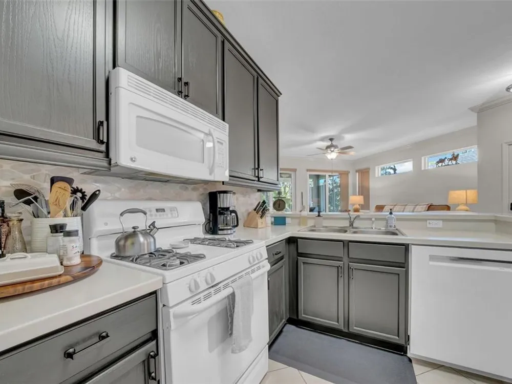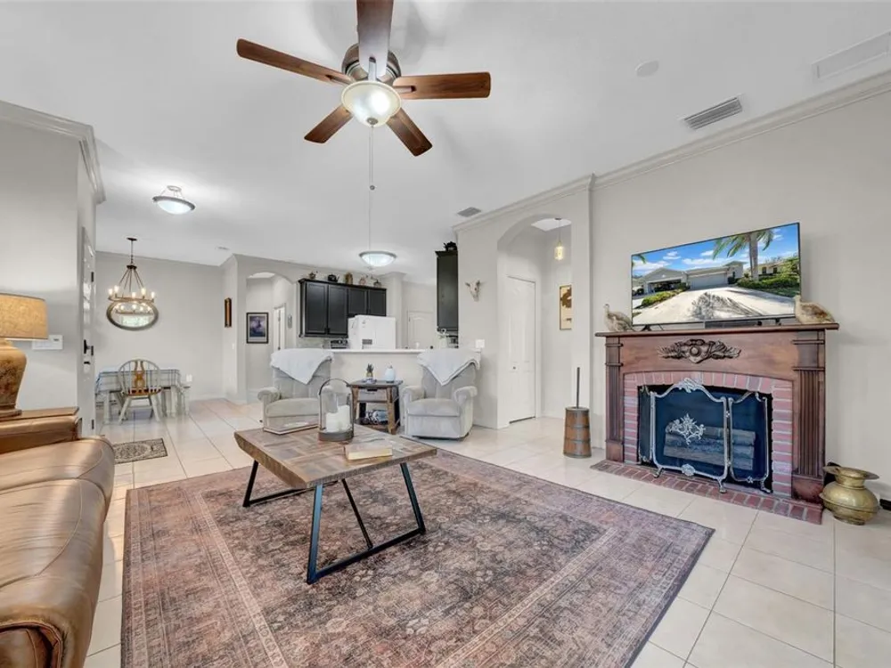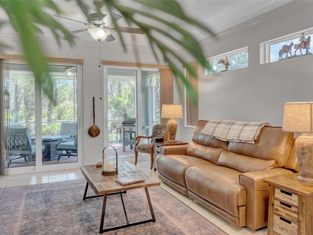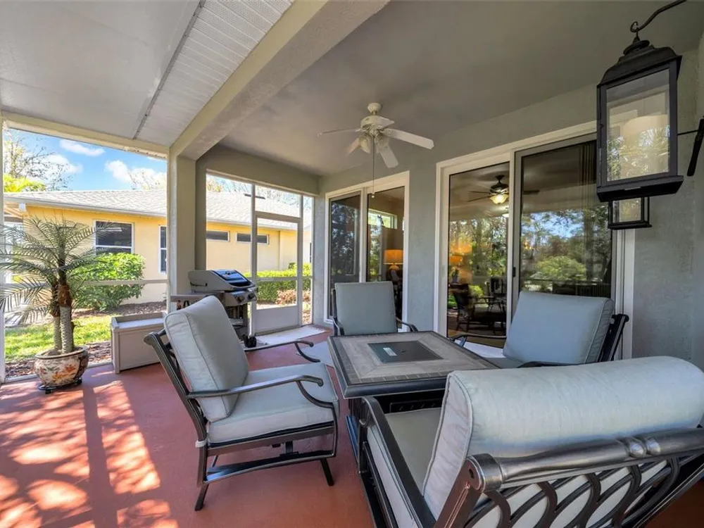 MOVE-IN READY! Stunning Open-Concept Condo in a Premier 55+ Community with Recent Upgrades including hurricane impact windows! New Price Improvement! Ready to embrace the Florida lifestyle? With 1,206 sq. ft. of beautifully designed interior space and an extended screened-in lanai, the home offers a total of 1,821 sq. ft. of comfortable living. Inside, the open-concept kitchen, dining, and great room create an inviting space perfect for entertaining. The kitchen features 42" cabinets, tile flooring, a gas oven, and new appliances, including a newer refrigerator and dishwasher. The bright and airy great room boasts tile flooring and double sliding glass doors that lead to a spacious screened-in lanai with a newly extended roof. The primary suite offers tile flooring, a walk-in closet, and ensuite bath. The second bedroom provides plush carpeting and easy access to a tiled guest bathroom. A laundry area with newly installed cabinetry and a large pantry/closet are conveniently located off the garage entrance for additional storage and functionality. The attached 2-car garage includes high-quality composite decking ramp at the entryway ensuring easy accessibility. Recent upgrades include a brand-new AC (2023), newly installed hurricane impact windows and sliders, screened breezeway, an electric garage screen, fresh interior paint with crown molding, refreshed kitchen cabinets with a new backsplash, new attic insulation, an insulated garage door, and a brand new Bosch dishwasher (2024) along with a new refrigerator (2022). Additional improvements include newly installed storage racks in the garage and updated landscaping with shrubs, trees, and fresh mulch. Your roof is maintained by the Association for peace of mind, and was recently replaced in 2020. This home can be sold mostly furnished if desired. Located centrally between Tampa and Sarasota, Kings Point is a top-rated 55+ golf cart community in Sun City Center, where everything you need is just a short ride away, including shopping, grocery stores, medical offices, and banks. Residents enjoy unmatched resort-style amenities, including indoor and outdoor heated pools, fitness centers, state-of-the-art recreation facilities, arts and crafts, and over 200 clubs and activities. Sports enthusiasts will appreciate the tennis and pickleball courts, lawn bowling, and access to 162 holes of golf. The community also features an 800+ seat auditorium for live entertainment and events. This is your chance to experience the Florida lifestyle you’ve been dreaming of. Schedule your private tour today!