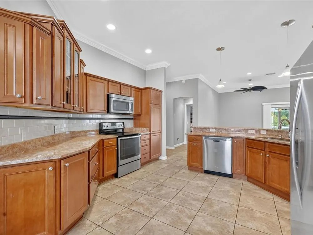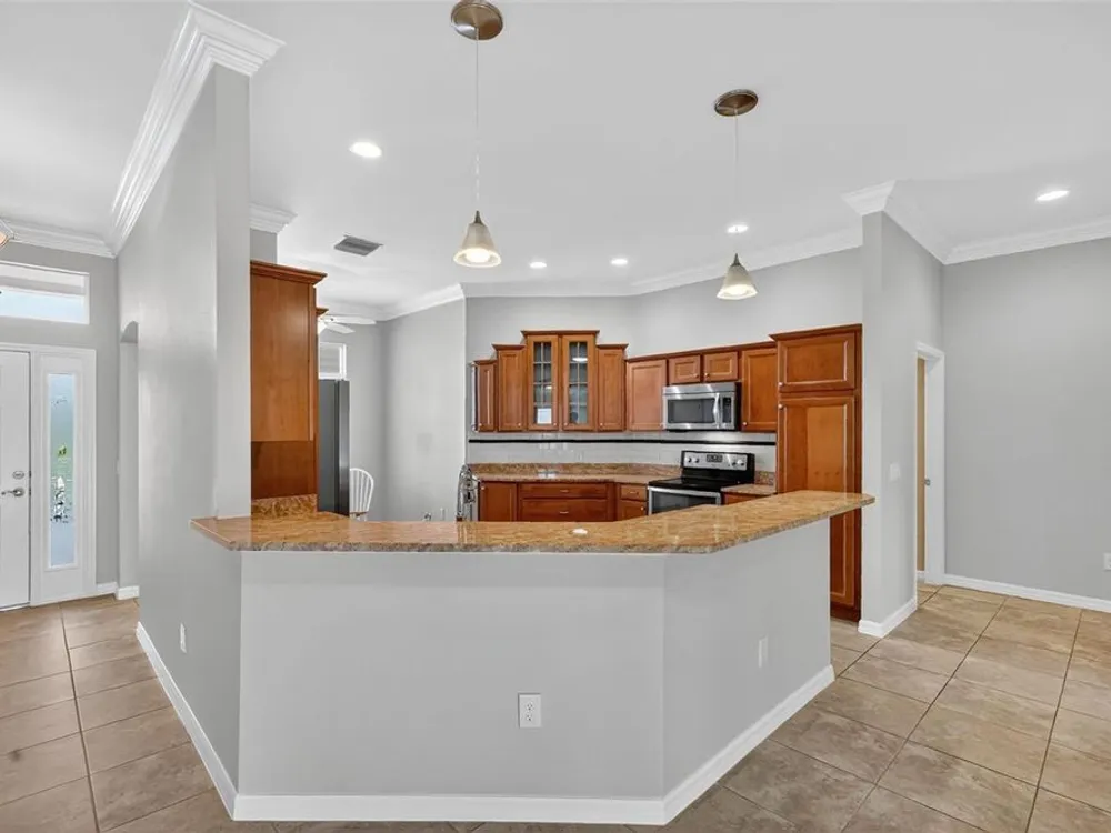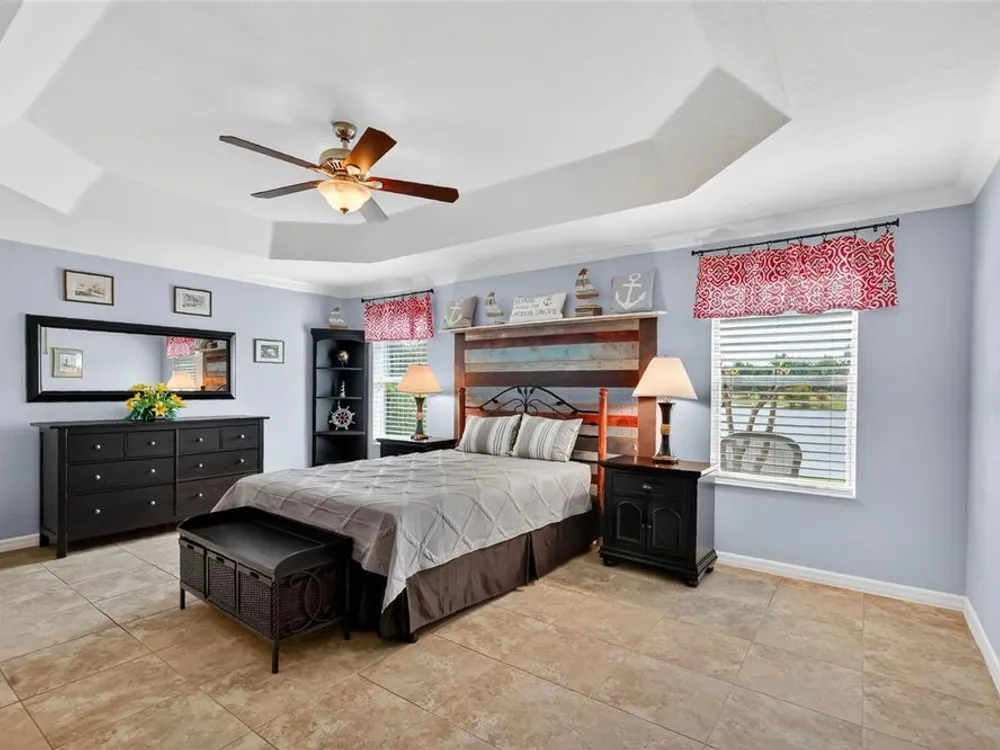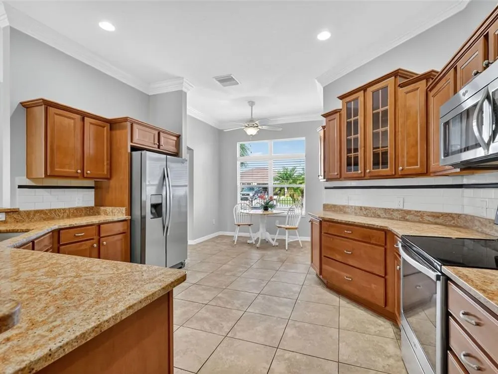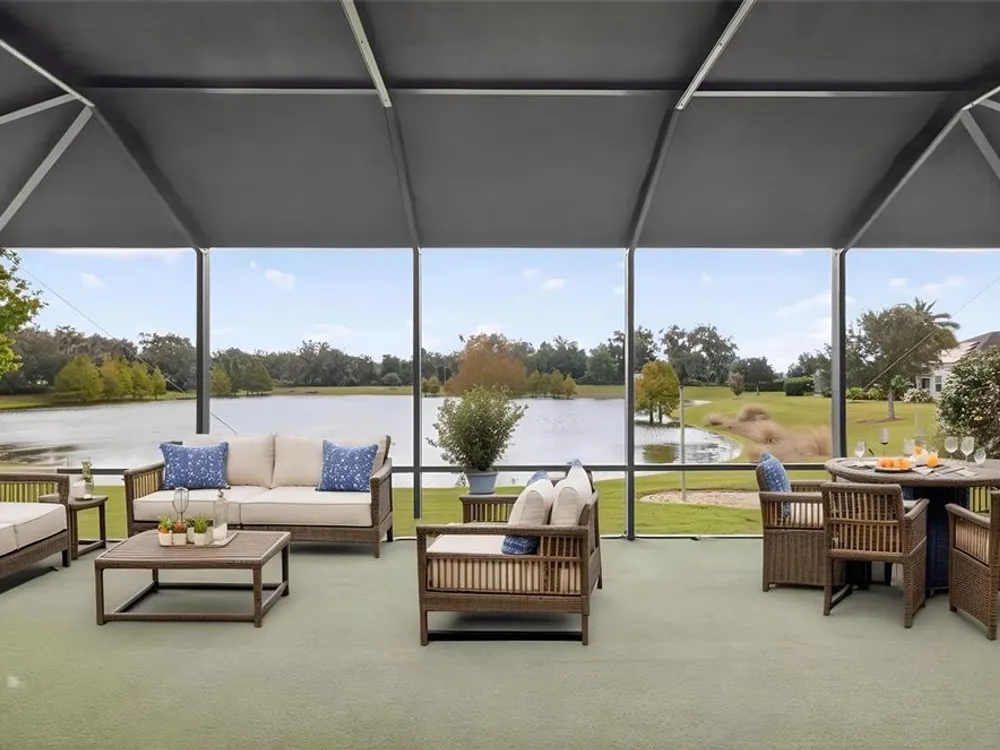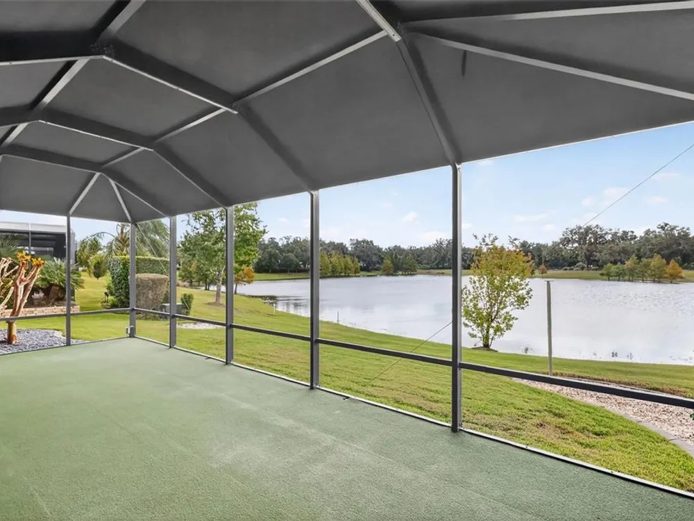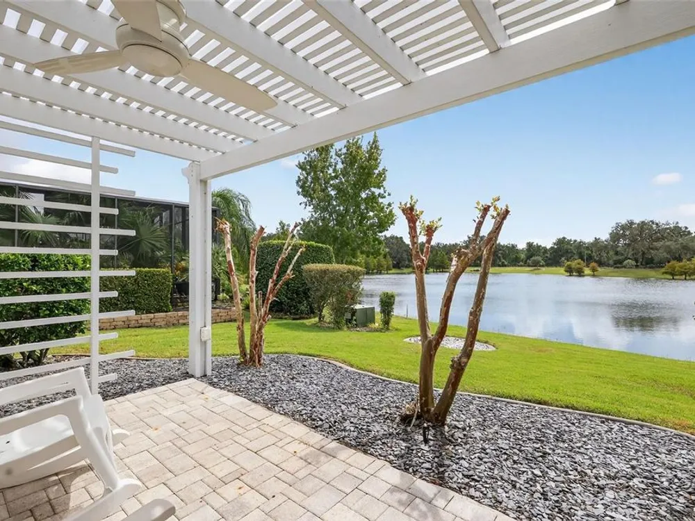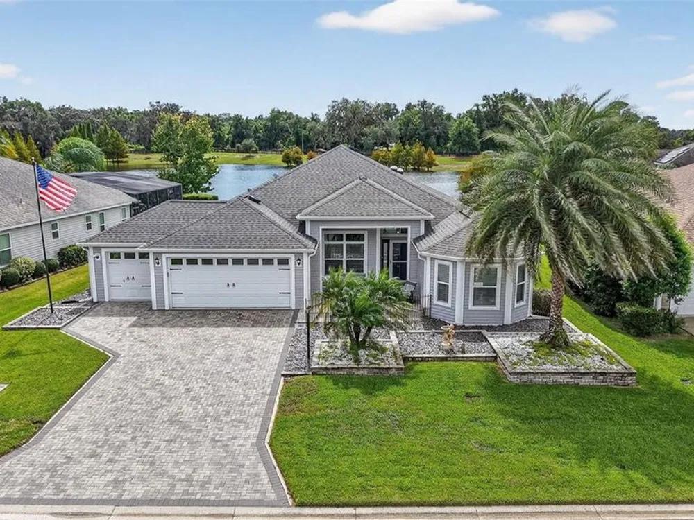 One or more photo(s) has been virtually staged. ENJOY SPECTACULAR WATERFRONT VIEWS in this 3/2 Camellia/Gardenia featuring an EXPANSIVE 364sf CLIMATE-CONTROLLED ENCLOSED LANAI, EXTENDED COVERED BIRDCAGE, REAR PAVER PATIO and PERGOLA, with ROOM FOR A POOL, and OVERSIZED 29’x24’ 2-CAR + GOLF CART GARAGE in the highly desirable Village of Hillsborough! MINUTES to Brownwood Paddock Square offering shopping, dining, and nightly entertainment! The EXQUISITE exterior of this lovely home boasts PAVER drive and walk ways, TROPICAL landscaping with WALLS and STONED beds, and a QUAINT front porch! An entry door with side lite and transom window welcome you into the GENEROUS foyer. From the moment you step inside, the OPEN-CONCEPT layout draws your eye straight through the home to the TRANQUIL WATER beyond, creating a BREATHTAKING first impression! TILE FLOORING flows seamless throughout the ENTIRE home while elegant CROWN MOLDING adds a touch of sophistication to EVERY room’s interior. HIGH VAULTED ceilings and 2 SOLAR TUBES create a bright, spacious atmosphere in the main living area. From here, step through DOUBLE sliding glass doors into the EXPANSIVE CLIMATE-CONTROLLED ENCLOSED LANAI (with an ADDITIONAL A/C and heater system) - adding an ADDITIONAL 364sf of living space to the home! This FABULOUS ROOM features a MINI-SPLIT; below ground, UNDER-AIR hurricane/tornado shelter; and FOUR SLIDING GLASS DOORS OVERLOOKING the WATER and opening to the EXTENDED 336sf BIRDCAGE with a CANVAS COVER. There’s even an ADJACENT 14’x 8’ BRICK-PAVER PATIO with a PERGOLA! Together these spaces create over 448sf of OUTDOOR LIVING SPACE with STUNNING WATERFRONT VIEWS! Back inside, the FABULOUS kitchen showcases RICH, WOOD, STAGGERED cabinetry with PULL-OUTS and GLASS-FRONT accent cabinet, GRANITE countertops, TILE backsplash, STAINLESS appliances, built-in PANTRY, and EAT-IN breakfast bar. The adjacent dinette offers double windows with large transom. Retreat to the luxurious primary bedroom, boasting VIEWS of the WATER, TRAY ceiling, and 2 SPACIOUS WALK-IN closets, one of which is CUSTOMIZED. It’s ensuite bathroom features WOOD cabinetry; DOUBLE sinks; ROMAN-STYLE, TILED, WALK-IN shower; separate water closet, and a BUILT-IN LINEN closet. A SPLIT FLOOR PLAN, places 2 additional bedrooms and second bathroom near the front of the home behind a POCKET DOOR, creating a PRIVATE GUEST WING. Bedroom two offers a TRAY ceiling, BAY window, and CUSTOM built-in closet. The second bathroom features WOOD vanity with GRANITE top, TILED tub and shower combination, and hallway LINEN closet. The third bedroom has a VAULTED ceiling and built-in closet. An INTERIOR LAUNDRY ROOM offers WOOD cabinets, shelving, and UTILITY SINK. Completing the package is an OVERSIZED 603sf 2-CAR + GOLF CART GARAGE with painted floors, BUILT-IN workbench, water filtration system, attic exhaust fan, and stairs accessing a HUGE ATTIC STORAGE AREA with plywood floors! DON’T MISS YOUR OPPORTUNITY TO OWN this MAGNIFICENT WATERFRONT HOME! The Village of Hillsborough is IDEALLY LOCATED - JUST MINUTES to Brownwood Paddock Square! Close to Hillsborough Neighborhood, Bradenton and Manatee Village, and Eisenhower Regional Recreation Centers; Palmetto, Sweetgum and Mangrove Executive Golf Courses; Evans Prairie Country Club; CR 466A with Colony Shopping Plaza and a plethora of shopping, dining, medical, and more! PLEASE WATCH OUR WALKTHROUGH VIDEO of this EXCEPTIONAL WATERFRONT HOME in a FANTASTIC LOCATION. CALL TODAY for your private showing or virtual tour!