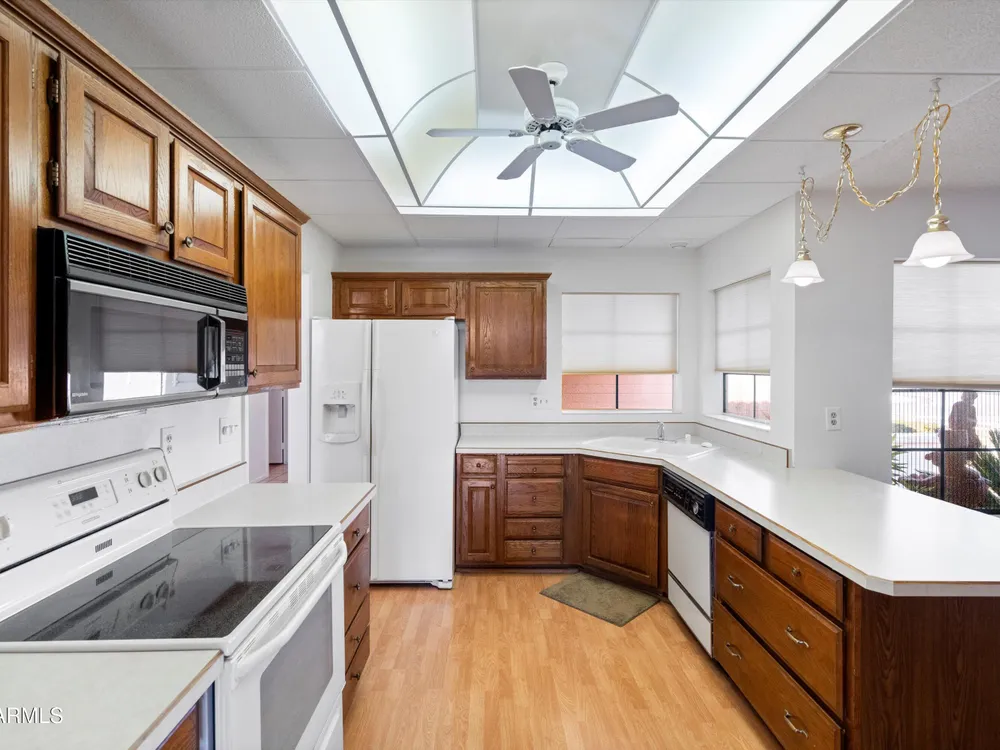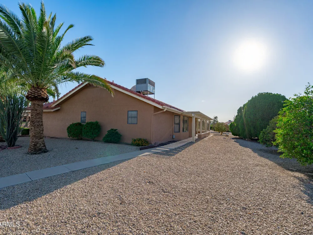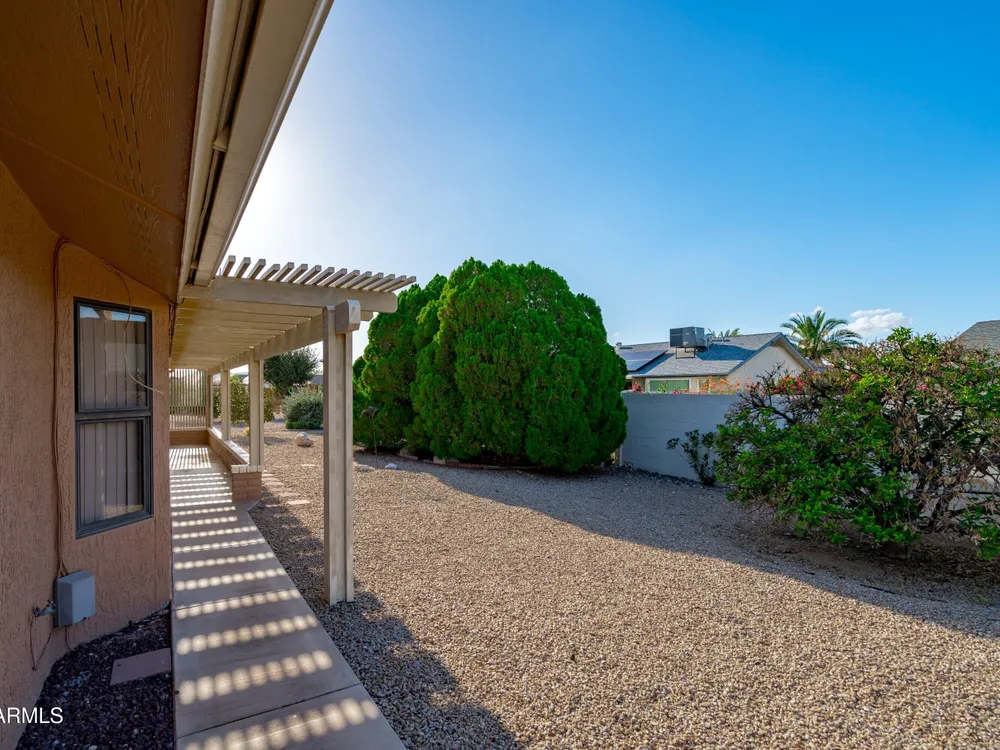 Discover comfort, convenience, and community in this charming corner-lot home nestled in the heart of the premier 55+ community of Sun City West. From the moment you arrive, you'll notice the inviting front patio, perfect for morning coffee or friendly chats with neighbors. Step inside to find an open and spacious living area, ideal for entertaining or relaxing after a round of golf. The kitchen includes all appliances, ample storage, and a cozy breakfast nook overlooking the front courtyard. The primary suite offers generous space, a private bath, and a walk-in closet. Both bedrooms and the living room include ceiling fans for year-round comfort. Outside, enjoy a covered back patio surrounded by mature fruit trees , a tranquil setting for Arizona sunsets. Located within Sun City West, residents enjoy resort-style amenities including multiple golf courses, recreation centers, fitness facilities, swimming pools, craft rooms, and social clubs. The community encourages an active, connected lifestyle with walking paths and beautifully maintained common areas. You'll love the convenient access to shopping, dining, medical centers, and Loop 303 , everything you need is just minutes away. Nearby attractions include Lake Pleasant Regional Park, White Tank Mountain trails, and spring-training baseball , offering recreation year-round. Whether you're looking for a seasonal getaway or your next forever home, this delightful property delivers the perfect blend of easy living and community charm in one of Arizona's most sought-after active-adult neighborhoods.