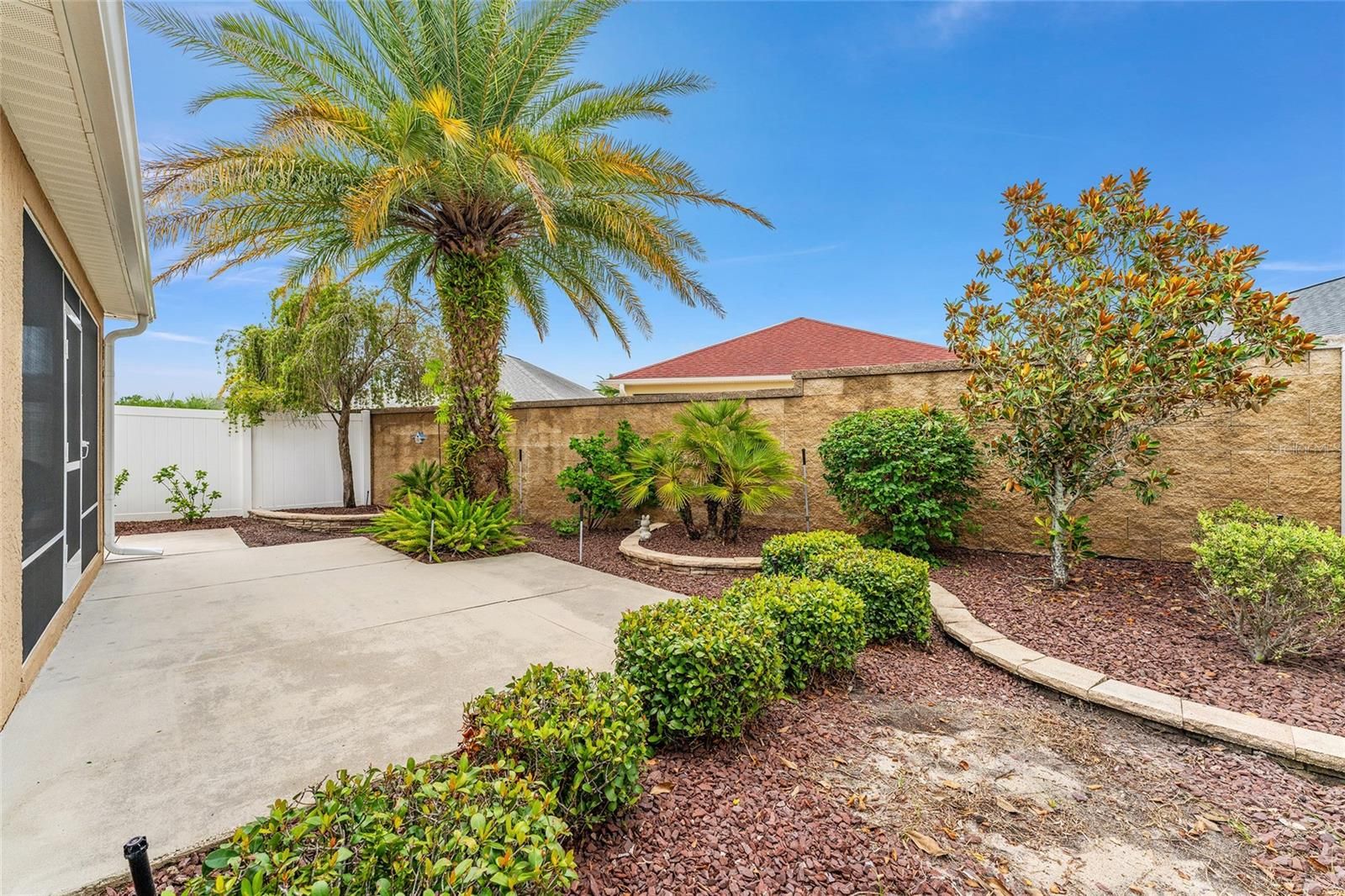 TURN KEY Cambridge style Courtyard Villa in the sought after Village of Hillsborough. This home is beautifully furnished, decorated and maintained. As you arrive, notice the mature landscaping, covered front porch and leaded glass entry door. Stepping inside, admire the engineered hardwood flooring (new 2023) and high ceilings. The large sliding doors, windows and bright walls (newly painted 2023) create a very welcoming space. The kitchen is nicely appointed with lots of storage including a pantry closet. The matching LG stainless steel appliances are new in 2023. Also notice the breakfast table with stools and the convenient pass through to the dining room. The main area of the house is spacious and perfectly proportioned for relaxing, entertaining or accessing the exterior patio area or the covered/screen lanai. Speaking of which, step out and enjoy the courtyard. This area has a combination of stone walls and fencing to provide great privacy. Notice the low maintenance landscaping, no grass. Continuing back inside, take a look at the primary suite located in the back corner for privacy. This suite also includes a walk-in closet, linen closet and private bath complete with dual sinks and a tiled walk in shower. The guest suite is located in the front corner of the house also for privacy. This suite includes a large closet and full bathroom. Another area worth mentioning is the garage with room for a car and golf cart. This area also has a nice laundry area complete with cabinet storage and utility sink. The garage door opener is new. Take a look at the beautiful photos and video. Picture yourself living in this very special home in this wonderful neighborhood and then call to schedule a private showing.
