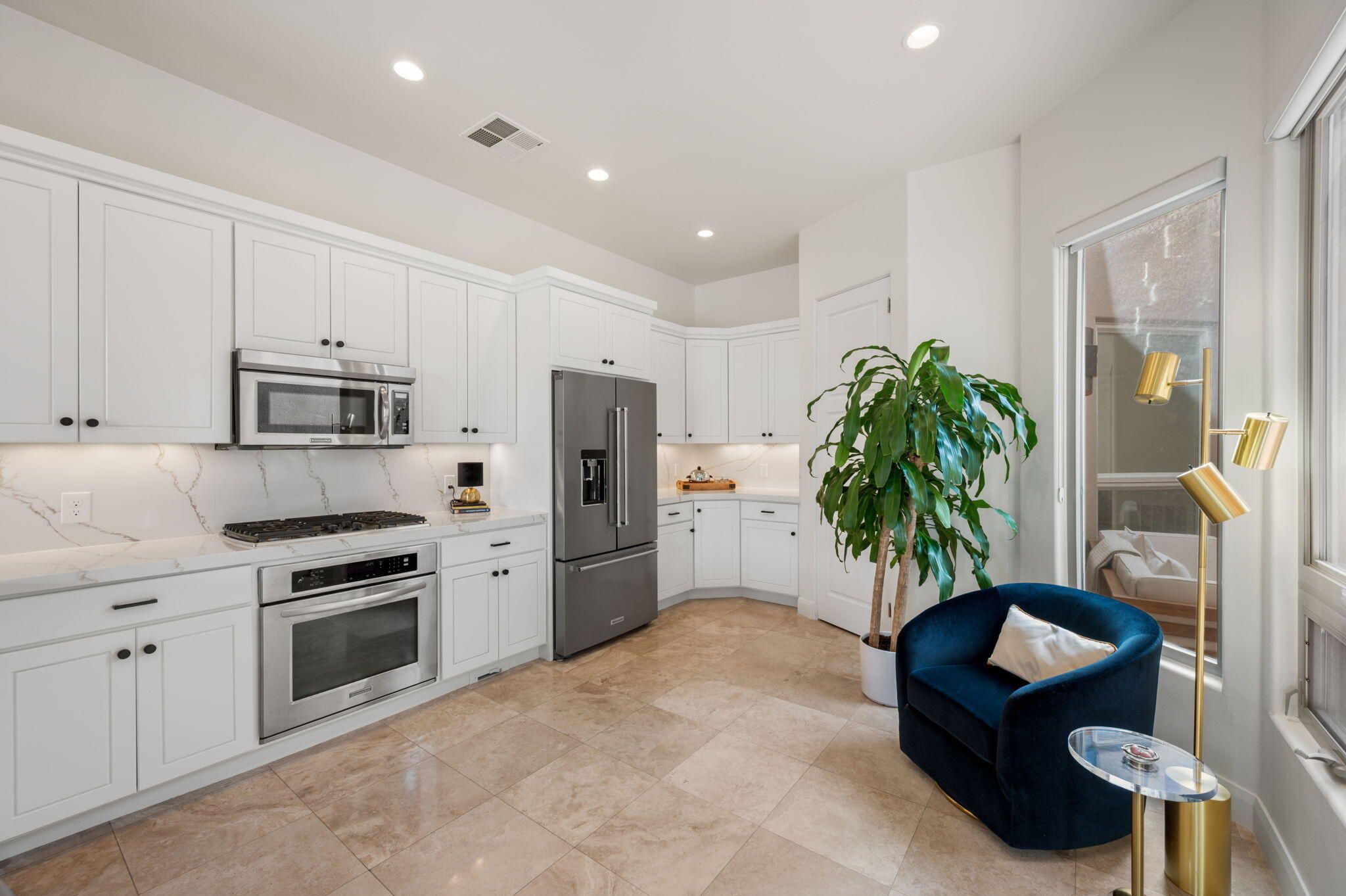 Absolutely lovely, updated and fully furnished! 5-bed (incl. casita), 4-bath 2900+ sq ft. home in charming Entrada. Rare opportunity: Great room AND family/theater room w/ wet bar, 84'' TV (4 TVs total) are ideal for multi-gen getaways & hosting. Enjoy a private courtyard w/ custom gate & north-facing patio. Newly painted inside/out. High-quality build, trayed ceilings, quartz kitchen counters. 4 fridges (2 mini), built-in KitchenAid convection oven and top range; central vac w/ kitchen sweep; security wired. Neutral light tones w/ color pops. $240.00/month Social Membership is req. and amenities include: private dining, social events, wellness center (remodel underway), fitness classes, weight room, 2 pools, 2 hot tubs, pickleball, volleyball & basketball courts.