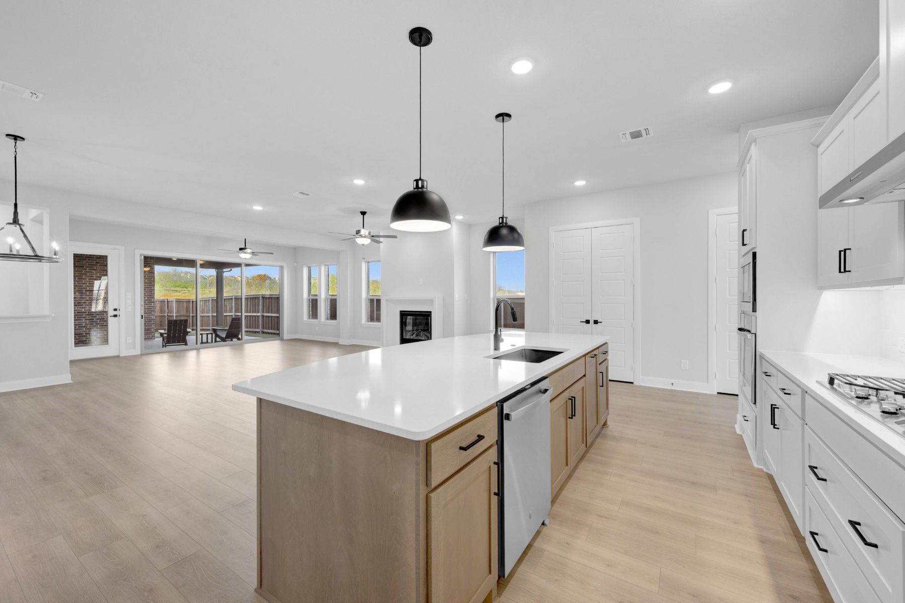 Pinebrook Manor welcomes you with timeless design and natural warmth. Expansive sliding glass doors open to a large patio, seamlessly connecting the living areas to the outdoors, while a wet bar off the sunroom makes hosting effortless. A cozy yet sleek fireplace adds warmth and style to the main living space, perfect for gatherings year round. The beautifully upgraded kitchen features quartz countertops, white cabinets, and a large island ideal for meal prep or serving guests. The owner’s retreat is a true haven, offering a spacious layout with the perfect nook for reading or enjoying morning coffee while overlooking your backyard oasis. The serene atmosphere continues into the owner’s bath, which features a large oversized shower and a generously sized closet, blending comfort with convenience for everyday living. With a 3-car garage for all your hobbies, plus a spacious backyard ready for even more entertaining, this home truly has it all and is conveniently located near walking and biking trails and the award-winning Magnolia Lifestyle Center.