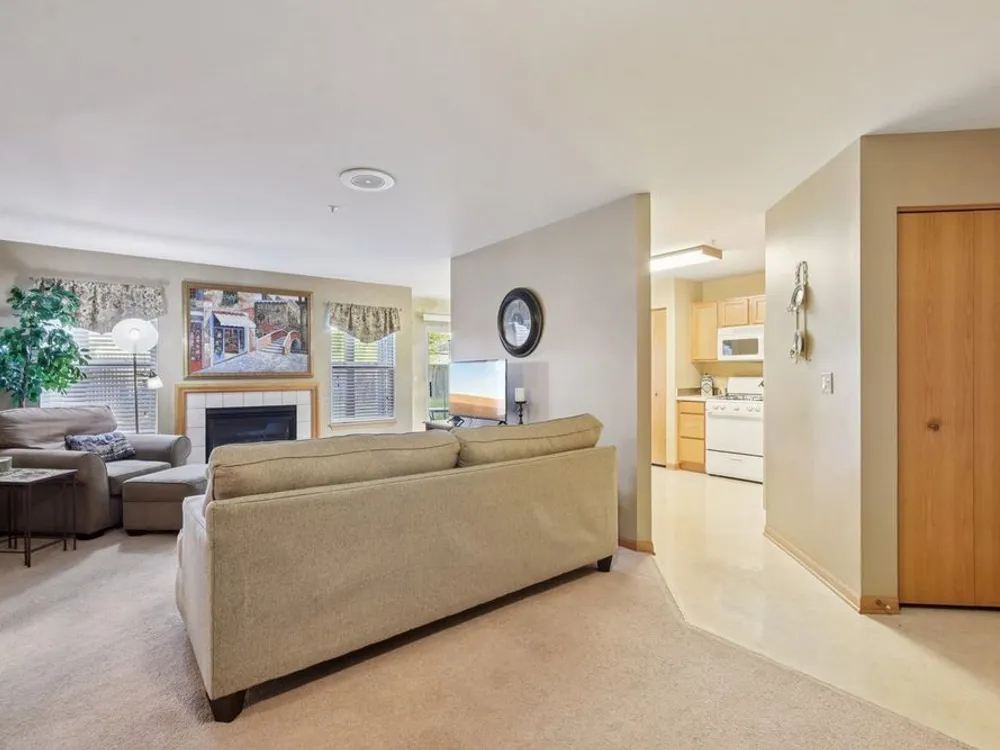 Welcome to Carillon's 55+ community! This first-floor, no-stairs unit features 2 bedrooms and 2 bathrooms designed for comfort and convenience. The spacious family room, complete with a cozy fireplace, flows seamlessly into the dining area-perfect for entertaining. The kitchen offers plenty of counter space for cooking and meal prep. The primary suite includes a walk-in closet and a handicap-accessible bathroom, while the second bedroom is generously sized for guests or flex space. Step outside to enjoy your private patio. Carillon residents enjoy a vibrant lifestyle with amenities including indoor and outdoor pools, tennis and pickleball courts, bocce ball, fitness facilities, and year-round events. Recent updates: hot water heater (2017), A/C (2017), sump pump (2021), and furnace (2021).