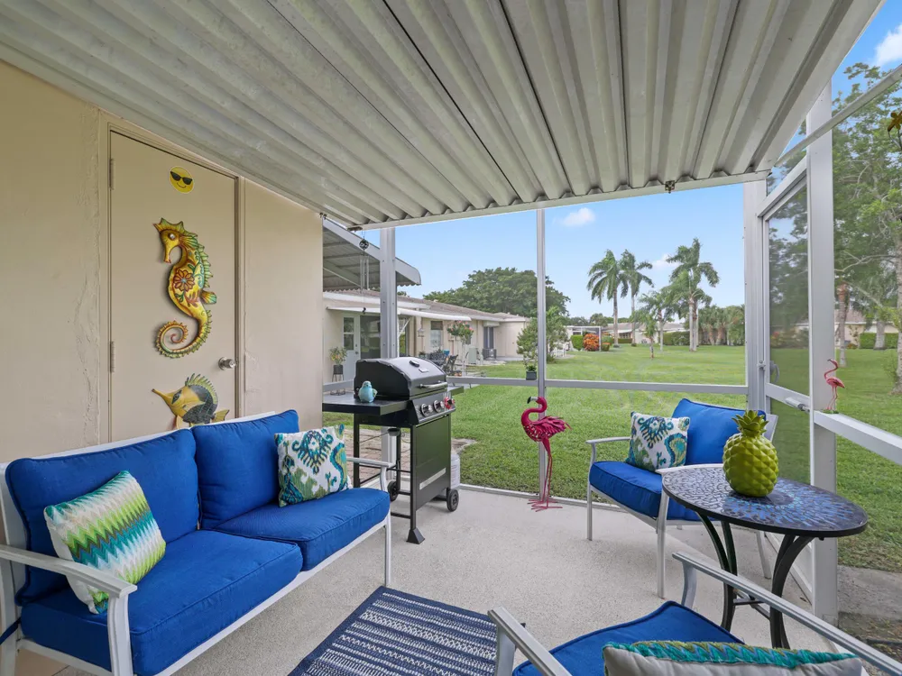 Discover the best of Florida living in this beautifully updated 2-bedroom, 1.5-bath villa in Boca Lakes, a gated active adult community. The villa's open living and dining area flows onto a private patio with green views, offering a peaceful spot to relax or entertain. With both eastern and western exposures, natural light fills the space throughout the day, creating a warm and inviting ambiance. Abundant storage and a versatile half bath, ready for full conversion, add convenience and flexibility.Located just minutes from the Turnpike, I-95, and Boca Raton's top attractions like Mizner Park, Town Center, beaches, and the Brightline Station, this villa is ideal to enjoy for the season or year-round! There is a new roof too.