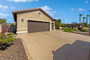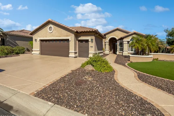 Experience luxury living in the heart of PebbleCreek. This spacious 3 bedroom, 2.5 bathroom home sits on a prime corner lot and features 2,852 square feet of beautifully designed space. The interior has just been professionally repainted, giving the home a fresh, modern feel throughout. Enjoy soaring ceilings, a gourmet kitchen with granite counters, rich cabinetry, and a built-in wet bar perfect for entertaining. The open layout flows into a bright great room and a serene backyard with lush landscaping, built-in BBQ, and scenic mountain views. The elegant primary suite offers dual vanities, a soaking tub, and a walk-in shower. A 3-car garage with golf cart bay adds convenience. Located in a gated, resort-style community with golf, pools, dining, fitness, and more.