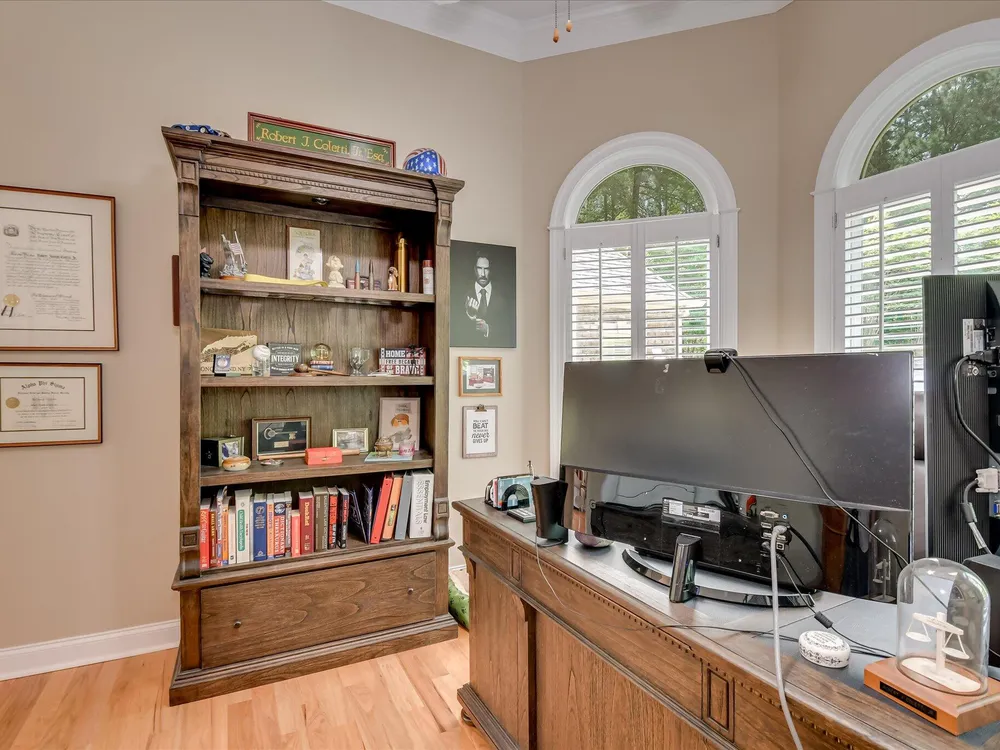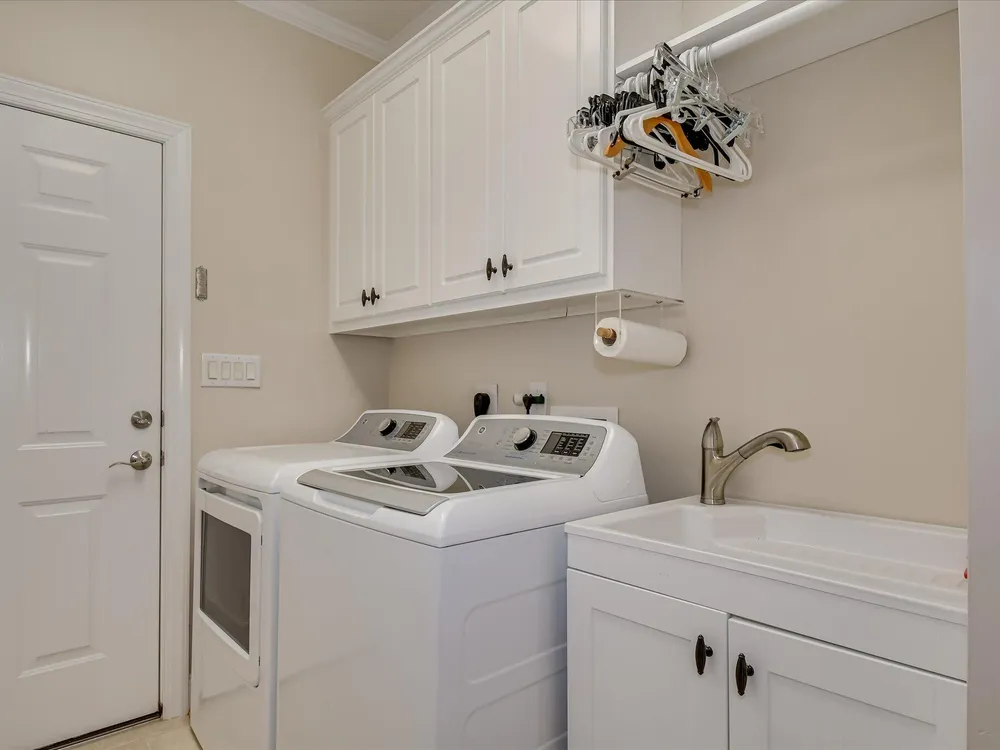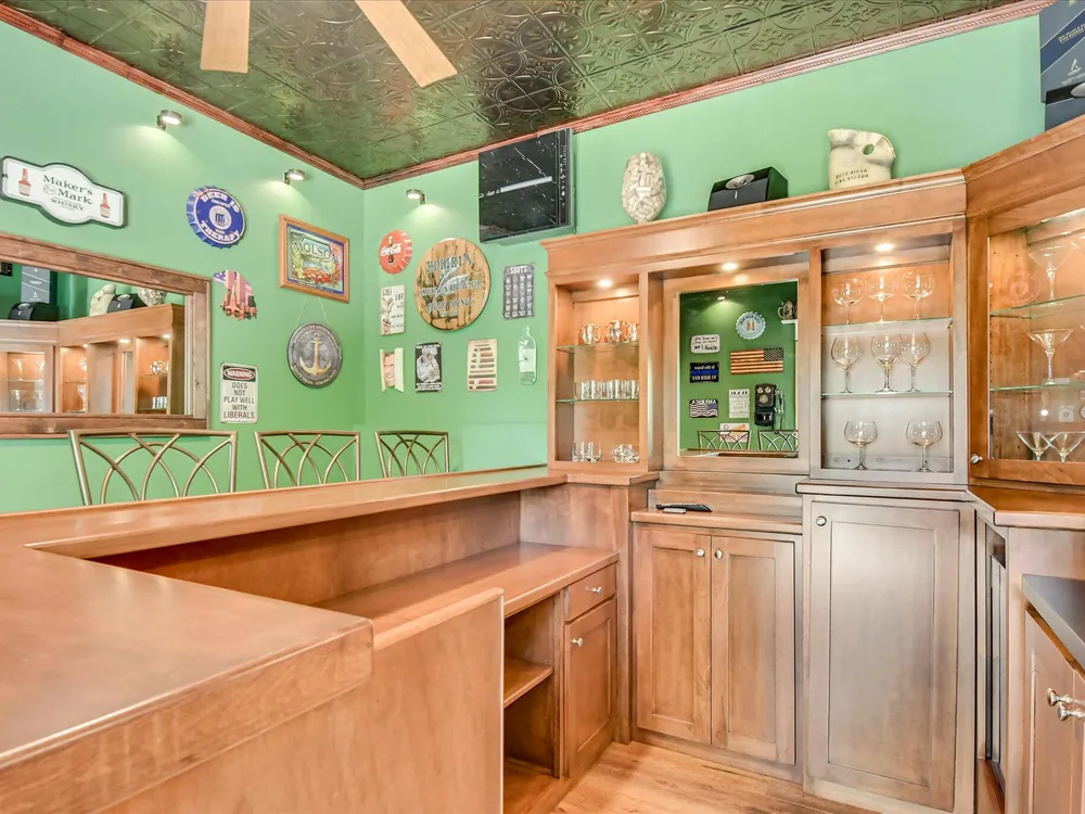 - Blinds, Cable TV, Utility Sink, Wired for Data, Pantry, Built-in Features, Smoke Detector, Wet Bar, Walk-In Closet(s), Security System Owned, Kitchen Island, Eat-in Kitchen, Split Bedrooms, Entrance Foyer, Washer Hookup, Electric Dryer Hookup, Pull Down Attic Stairs, Attic, Attic Storage, Main Level Primary