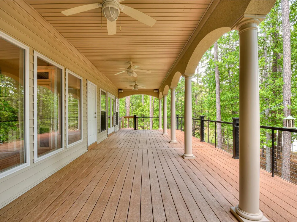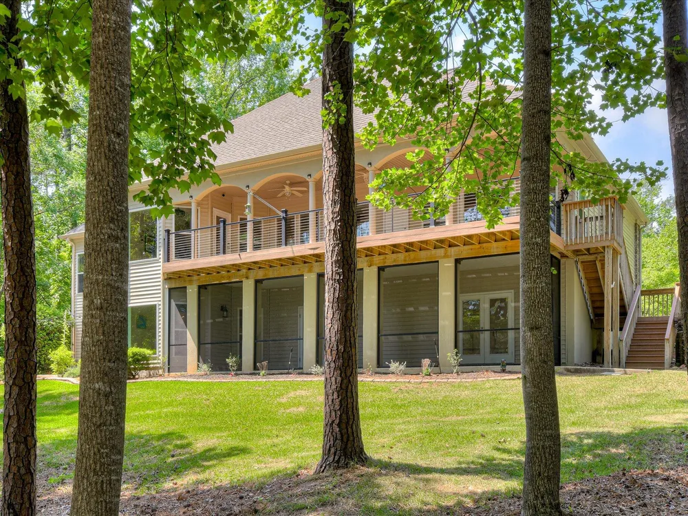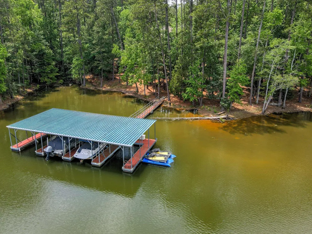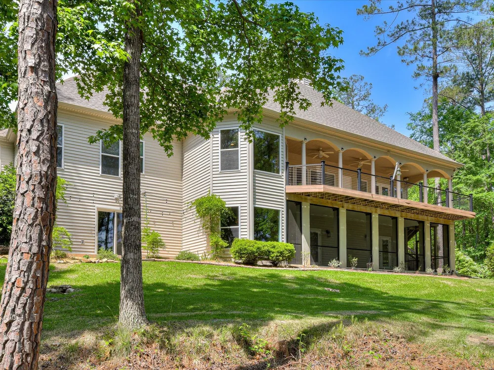 WOW! 150+ FEET OF LAKE FRONTAGE, WITH FABULOUS LAKE VIEWS! JUST A SHORT WALK DOWN TO YOUR PRIVATE BOAT SLIP! A MUST SEE LUXURY LAKE HOME WITH 3771 HEATED SF. You may feel like you are entering your own personal resort as you pass the professionally landscaped, terraced yard to approach the elegant front entry. Once inside you will not be disappointed. From the relaxed vibe of the fireplaced family room to the majestic columns and arches of the formal dining room, you will be ready to entertain all of life's moments with style and confidence. The efficient kitchen layout, with its center island, two ovens, built in microwave, large French door refrigerator and cabinets in every direction, will keep meal prep moving smoothly, and if outdoor dining is your preference, the covered upper deck or lower level screened in porch will give you plenty of protected space to enjoy any meal. You can even hang out under the lights on the patio just outside of the lower-level bar. Not to worry if the weather doesn't cooperate. Just move inside to the fully equipped bar room, complete with dual wine coolers, full size fridge, freezer with icemaker, cigar refrigerator, sink and microwave (for when you get the munchies), or chill in the large, carpeted rec room, complete with fireplace. Need a place to work or dabble in your favorite projects, a tiled floor, hobby room lies just off the rec room, offering natural light and fresh air through a patio door to the screened porch. The lower level has an indoor entry to 1512 sq ft of storage/workshop, with concrete floor and lots of standing room. The attic space above the garage is also accessible for storage with the pull-down stairs and partial floor. The upgrades and additional features of this home will make your life easier and more comfortable. They include such things as dual hot water heaters for faster hot water supply, two separate systems for heating and cooling, whole-house water filtration, irrigation in front and back, durable concrete coating on screened porch and garage floors, a Generac back-up generator, with a 250-gal propane tank to keep it running, and a Simpli-Safe home security system. All of this (and more), plus this home is located in the highly desirable Savannah Lakes Village along the Freshwater Coast of South Carolina. Living here means you are part of a vibrant and active community, which includes access to WCTEL's high-speed gigabit fiber network. Your dock gives you easy access to Lake Thurmond, which provides some of the best freshwater fishing the southeast has to offer. Within the village you will find all of the on-site amenities it has to offer - several eateries, 2 premier golf courses, tennis, pickleball, indoor and outdoor pools with hot tubs and sauna, fitness facility, walking trails and so much more.