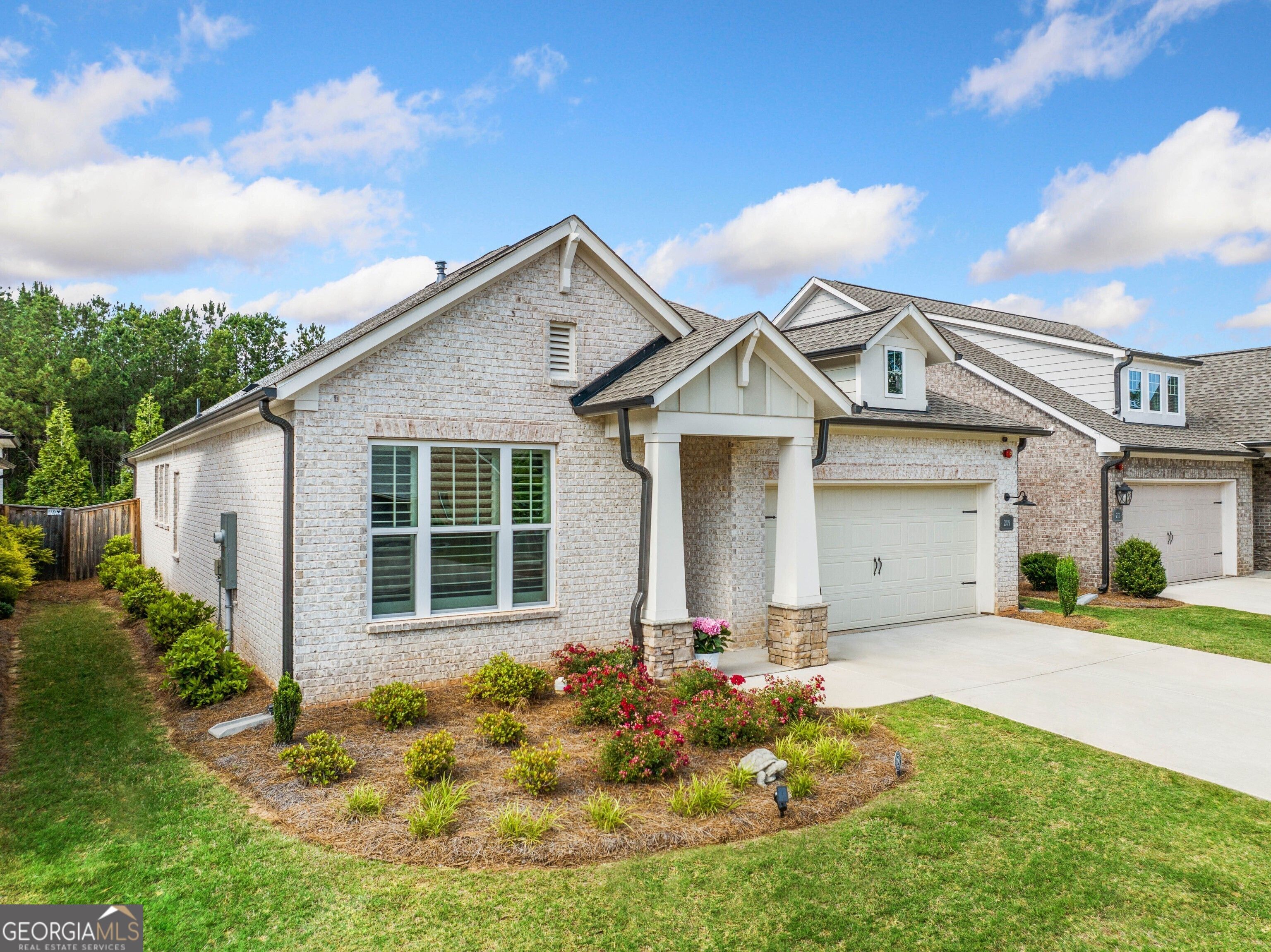 Extraordinary, Stepless Living less than 2 miles from Downtown Woodstock! Located in the Vibrant 55+ Community Glenhaven at Ridgewalk, this home offers the perfect balance of quiet luxury and modern aesthetics. Don't wait for new construction, this immaculate home has been meticulously maintained and loaded in post construction upgrades! Step inside to a bright and airy open floor plan w/ soaring 11 ft ceilings and 7 inch Luxury Vinyl Plank flooring! Need the versatility for a home office and guest suite? This highly sought after floor plan offers two generously sized secondary bedrooms tucked away from the Owners Suite offering the privacy and flexibility to suit every lifestyle. The heart of the home is a true gathering space- designed for comfort and entertaining! The intriguing kitchen boasts Top-of-the-Line Custom Cabinetry w/ lacquered finish, Professional Grade Stainless Steel Appliances (w/gas connection), 8-foot island w/sparkling quartz countertops, a DREAM pantry & Spice Niche- handcrafted to maximize storage and functionality! Retreat to the primary bedroom with thoughtfully curated accents including built in bookcase and sidelight windows. This continues into the primary bathroom featuring a Zero Entry, Oversized Glass Enclosed Rain Shower with bench seating and Transom Windows. This home offers the ultimate in Indoor/Outdoor Living as you step outside to the expanded, Covered Patio, with overhead fans- the perfect space to unwind or play with grandchildren and pets in the fully fenced backyard! The activities don't stop there! You can vacation from home at the Resort Style Amenities! Enjoy the 4500 sq ft Clubhouse w/fully equipped Fitness Center! Take a swim in the Pool w/Lap Lanes, play on one of the pristine PickleBall Courts or meander to Olde Rope Mill Park- a true destination for Walking,Hiking, Mountain Biking, Fishing, Kayaking & SO MUCH MORE! PRIME location, just minutes from downtown Woodstock, one of Money Magazine's "Best Places to Live in America!" Explore Woodstock's charming Main Street, renowned for casual and fine dining, shopping, theater, arts, and year-round free concerts. With easy access to I-575 and the Peach Pass express lane, commuting through Atlanta and to Hartsfield-Jackson Atlanta International Airport is a breeze. Take advantage of Cherokee County's generous veteran and senior property exemptions and make this exceptional home yours today!