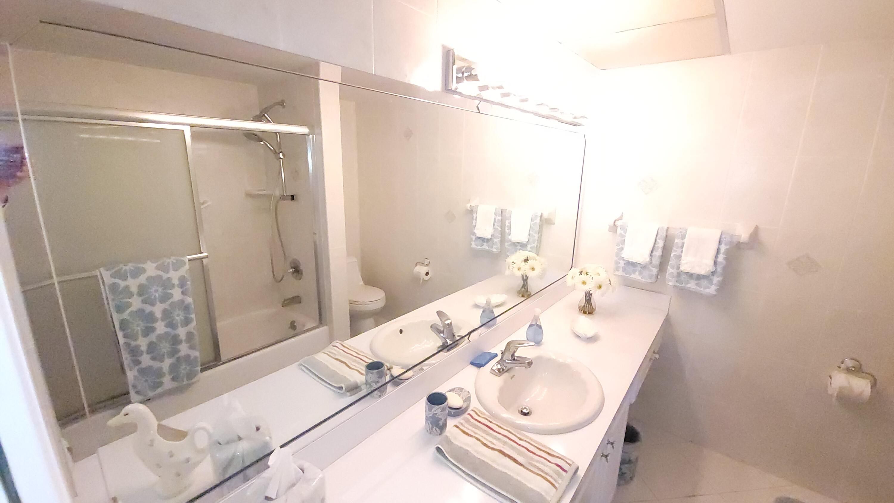 Welcome to the paradise of South Florida, resort-style social living at its absolute best. Enjoy wonderful views from this fully furnished and beautifully renovated, two-bedroom, two-full bath condo located in sunny West Palm Beach Florida and experience the distinct Century Village 'way of life' with luxurious recreational facilities and abundant social activities. This is the largest unit available in CV. 1200 total square feet! Kitchen and bathrooms renovated. Beautiful garden view from the expansive Florida room. Pool view from the front catwalk. All tile floors. Water heater replaced Jan 2024, A/C replaced 2017, Front windows (impact) replaced 2017, Florida room windows (impact) replaced May 2022. No pets. No rentals.