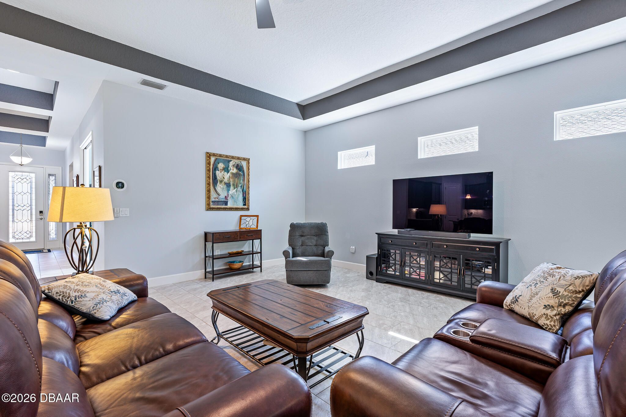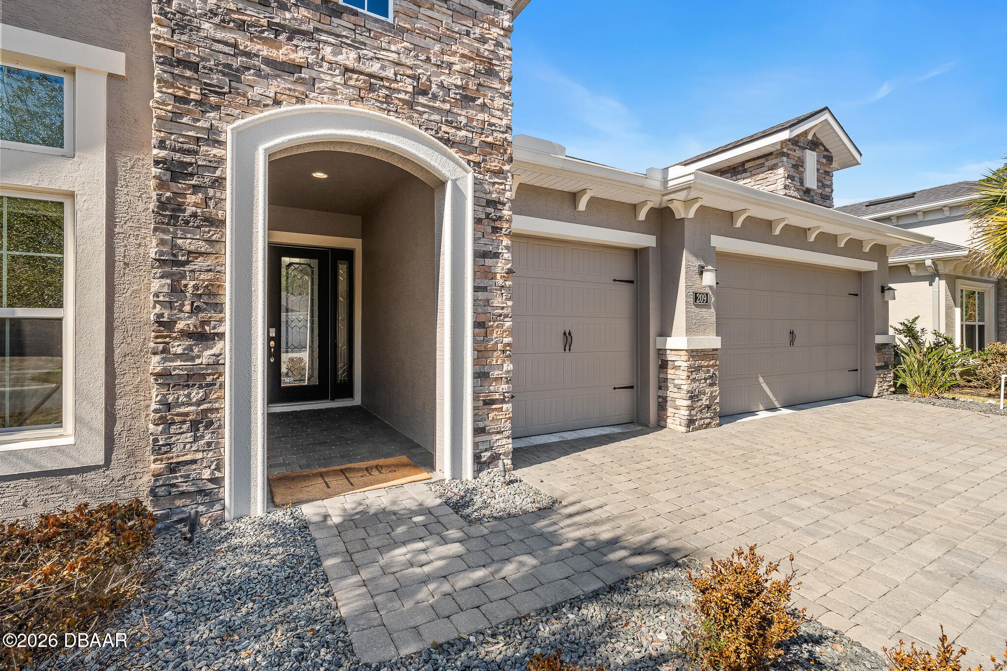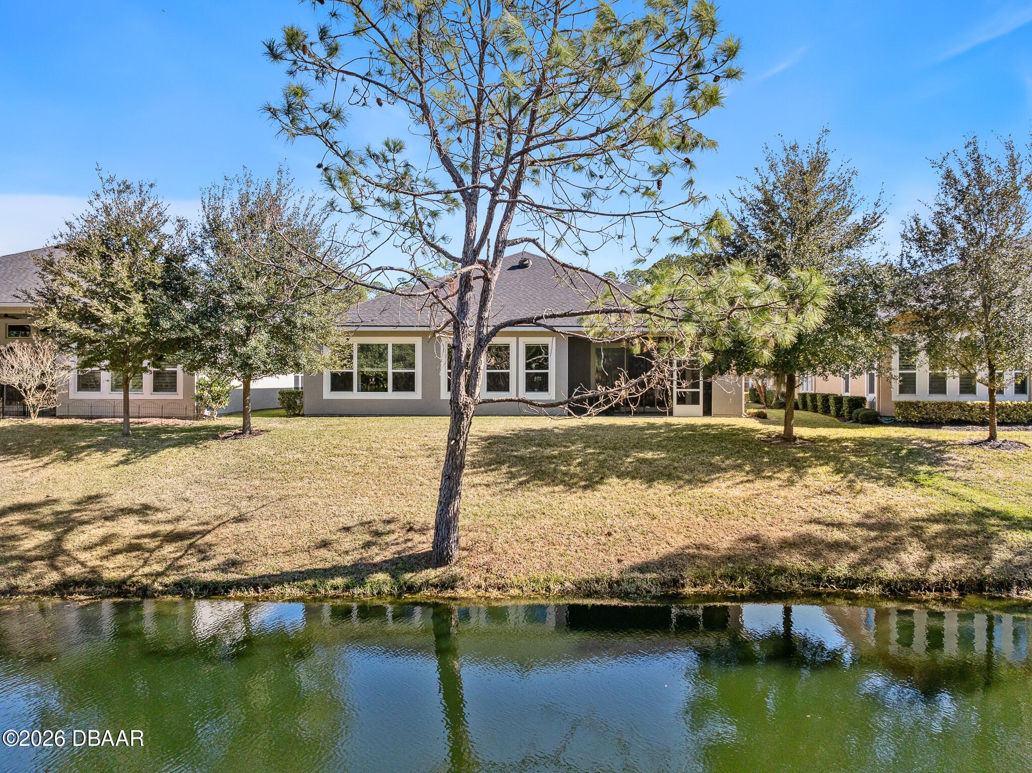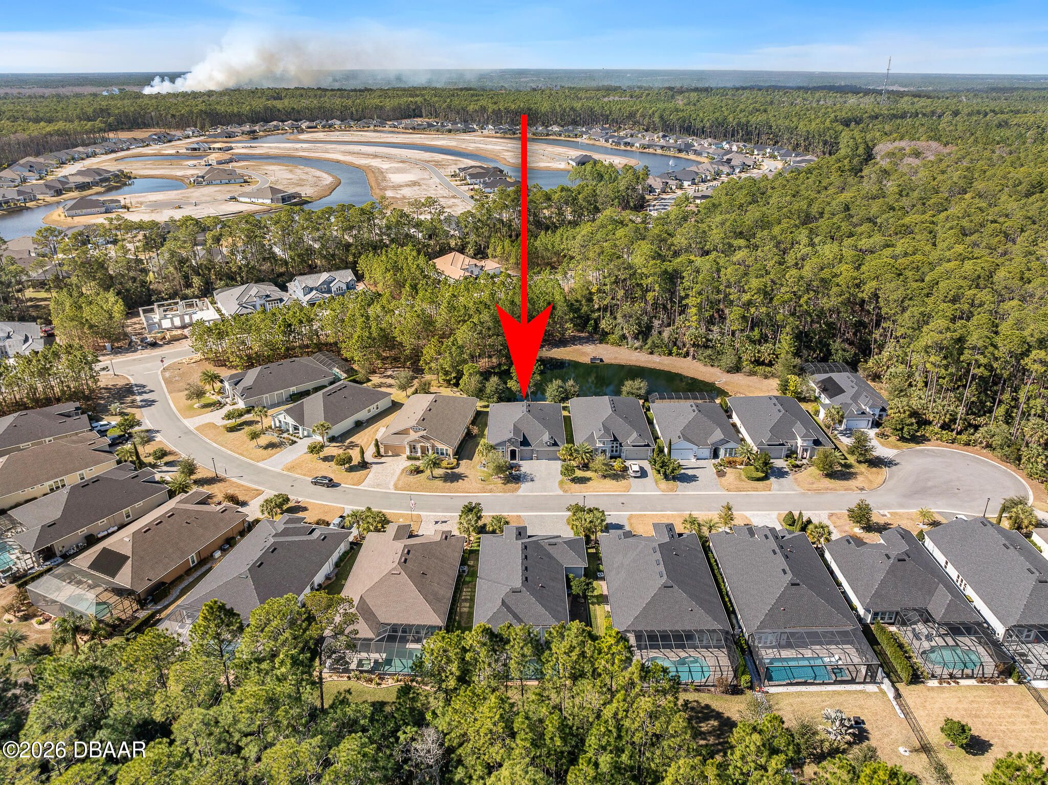 Welcome to 209 Heatherwood Court, perfectly positioned on a private cul-de-sac and offering the rare find of a true three-car garage. Built in 2020, this award-winning Arden floor plan by ICI Homes sits on a tranquil pond-view homesite and has been thoughtfully customized to feature 3 bedrooms, 3 full bathrooms, plus a dedicated office or den. A spacious covered entry leads into an impressive foyer with soaring ceilings that create an immediate sense of openness. Just off the foyer, a guest bedroom with an adjacent full bath functions beautifully as a private guest suite. Nearby, a flexible space with double pocket doors can easily serve as a home office, den, or study, filled with natural light. A separate hallway off the entry leads to the utility room—complete with a convenient sink—along with another guest bedroom and full bath, providing a well-designed layout for privacy and comfort. The heart of the home is the expansive great room, where the living, kitchen, and dining areas blend seamlessly under 10-foot ceilings, highlighted by an elegant tray ceiling rising to 11 feet. The gourmet kitchen is both stylish and functional, featuring abundant storage with dovetail drawer construction, soft-close doors and drawers, and a generously sized corner pantry. A glass cooktop, built-in wall oven, and microwave that vents to the exterior make this kitchen ideal for everyday living and entertaining alike. Main living areas showcase upgraded 12" x 24" tile flooring, while the bedrooms offer the comfort of newer carpeting. Transom windows at the front of the home invite in additional natural light, enhancing the bright and airy feel throughout. Step outside to the approximately 200-square-foot screened lanai, where peaceful pond and conservation views create a private outdoor retreat. Enjoy the sights and sounds of nature, with local wildlife frequently visiting this serene setting. Located within the gated, golf-cart-friendly community of Plantation Bay Golf & Country Club, residents have access to optional membership opportunities that include 45 holes of championship golf, a stunning $30-million Founders Clubhouse, tennis and pickleball courts, resort-style and lap pools, a fitness and spa center, an additional Prestwick Clubhouse, and a full calendar of social activities. Buyers of this home are eligible for a substantial discount on the club's initiation fee, please contact the listing agent for full details. This home combines thoughtful design, quality construction, and an exceptional lifestyle an outstanding opportunity in one of the area's most sought-after communities.