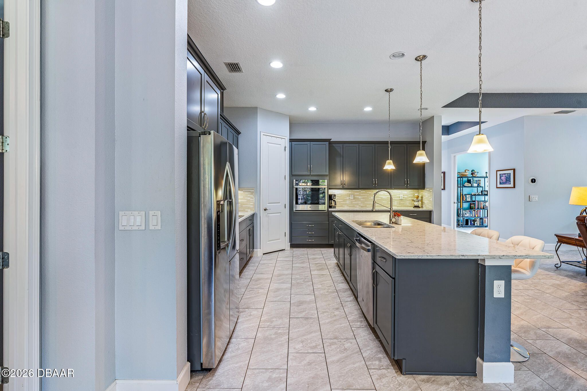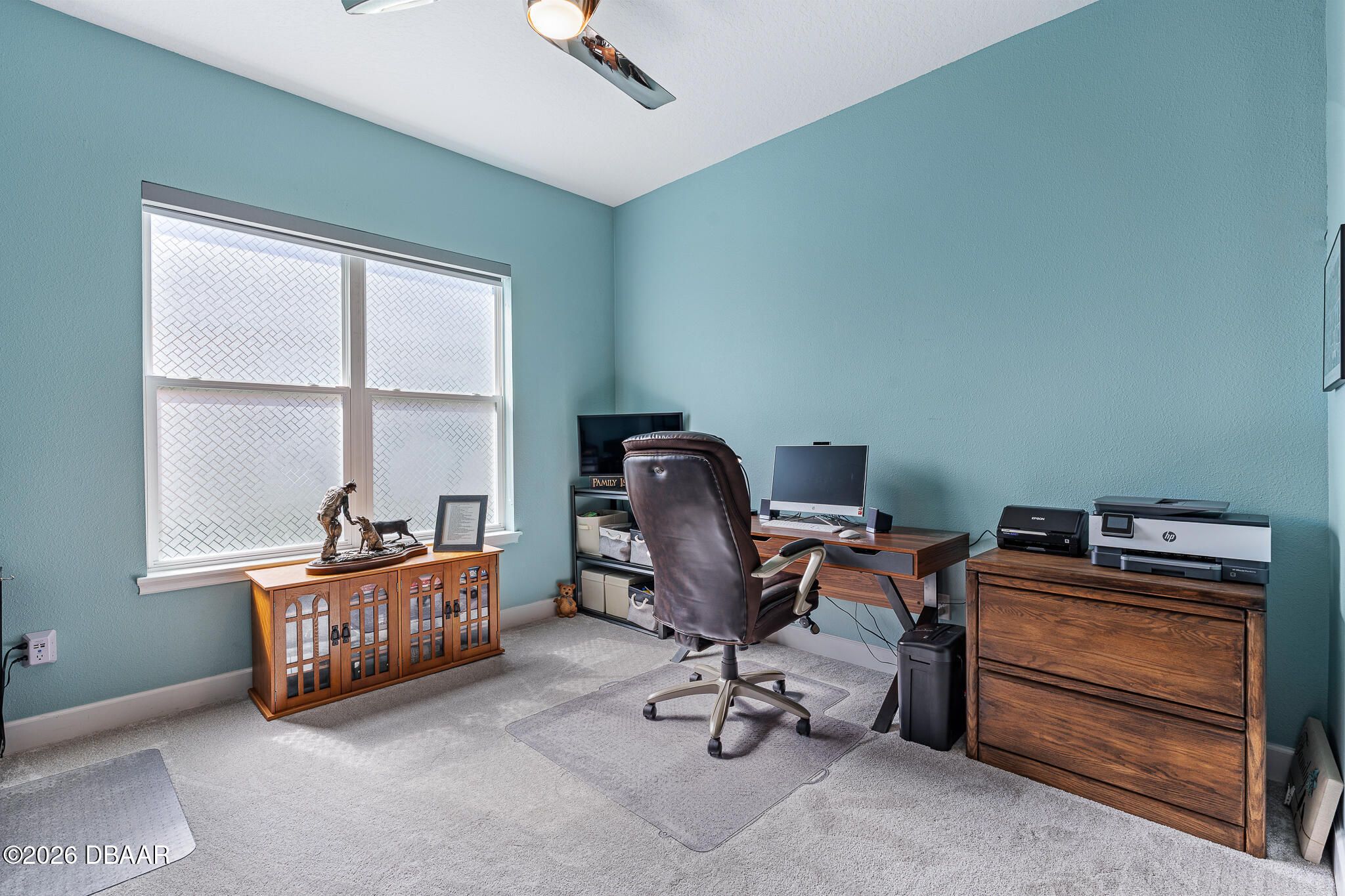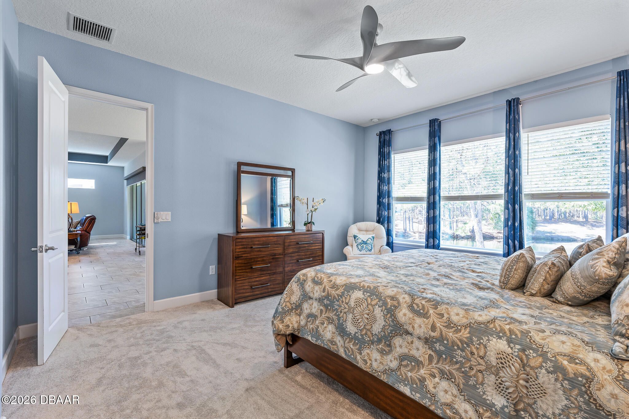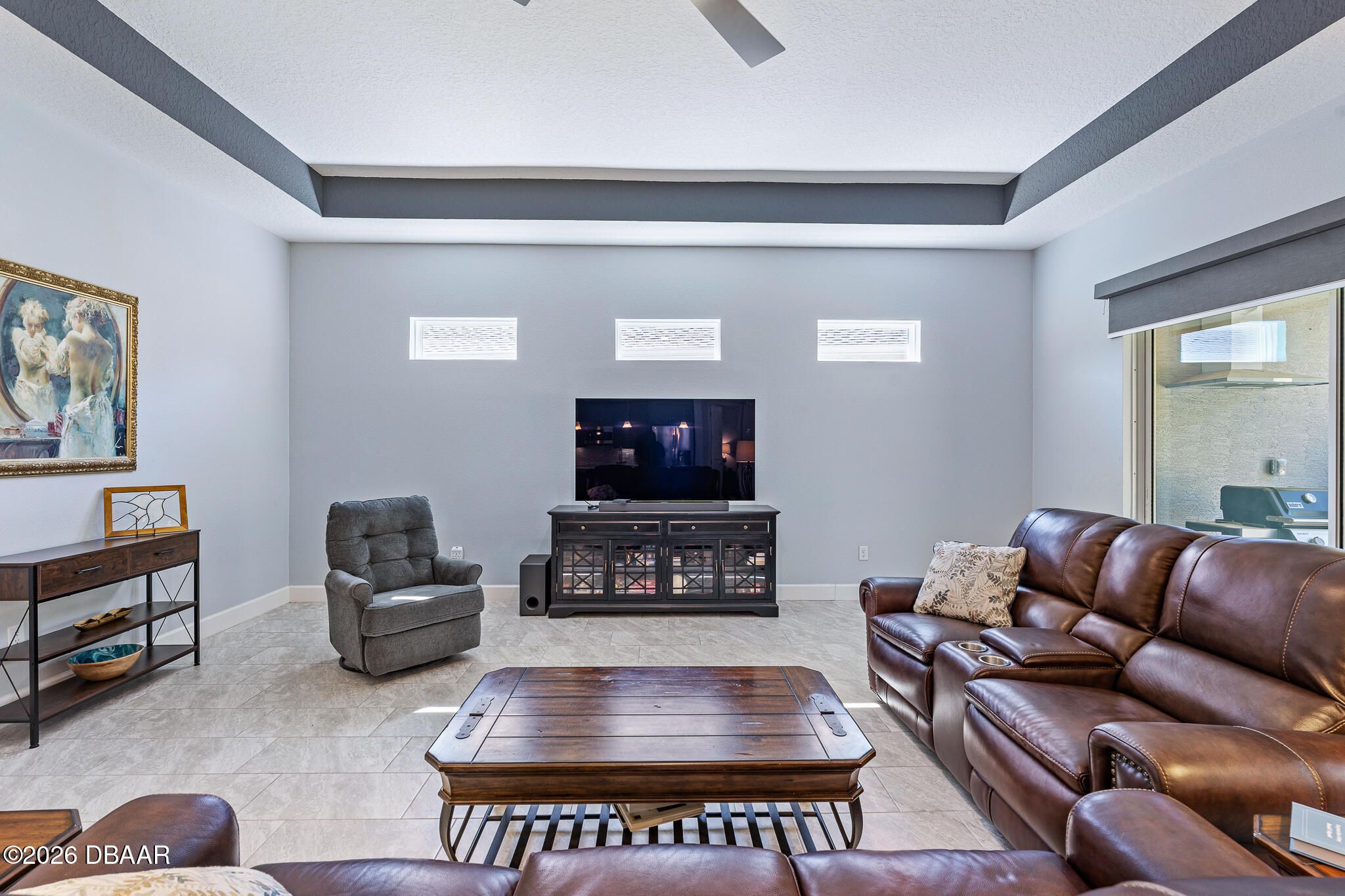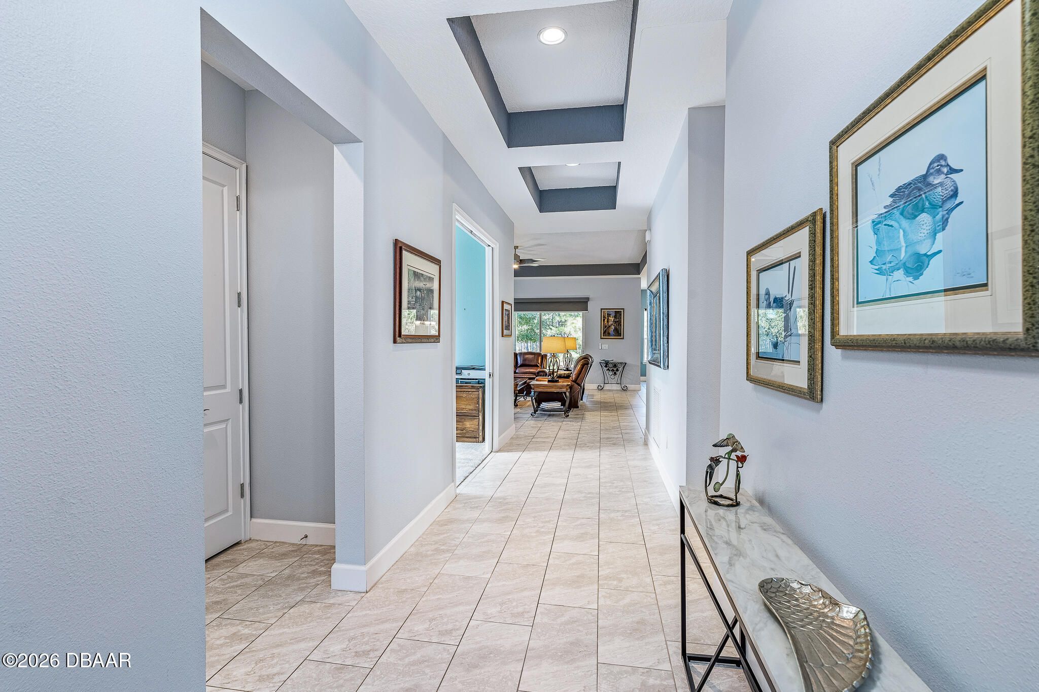 Welcome to 209 Heatherwood Court, perfectly positioned on a private cul-de-sac and offering the rare find of a true three-car garage. Built in 2020, this award-winning Arden floor plan by ICI Homes sits on a tranquil pond-view homesite and has been thoughtfully customized to feature 3 bedrooms, 3 full bathrooms, plus a dedicated office or den. A spacious covered entry leads into an impressive foyer with soaring ceilings that create an immediate sense of openness. Just off the foyer, a guest bedroom with an adjacent full bath functions beautifully as a private guest suite. Nearby, a flexible space with double pocket doors can easily serve as a home office, den, or study, filled with natural light. A separate hallway off the entry leads to the utility room—complete with a convenient sink—along with another guest bedroom and full bath, providing a well-designed layout for privacy and comfort. The heart of the home is the expansive great room, where the living, kitchen, and dining areas blend seamlessly under 10-foot ceilings, highlighted by an elegant tray ceiling rising to 11 feet. The gourmet kitchen is both stylish and functional, featuring abundant storage with dovetail drawer construction, soft-close doors and drawers, and a generously sized corner pantry. A glass cooktop, built-in wall oven, and microwave that vents to the exterior make this kitchen ideal for everyday living and entertaining alike. Main living areas showcase upgraded 12" x 24" tile flooring, while the bedrooms offer the comfort of newer carpeting. Transom windows at the front of the home invite in additional natural light, enhancing the bright and airy feel throughout. Step outside to the approximately 200-square-foot screened lanai, where peaceful pond and conservation views create a private outdoor retreat. Enjoy the sights and sounds of nature, with local wildlife frequently visiting this serene setting. Located within the gated, golf-cart-friendly community of Plantation Bay Golf & Country Club, residents have access to optional membership opportunities that include 45 holes of championship golf, a stunning $30-million Founders Clubhouse, tennis and pickleball courts, resort-style and lap pools, a fitness and spa center, an additional Prestwick Clubhouse, and a full calendar of social activities. Buyers of this home are eligible for a substantial discount on the club's initiation fee, please contact the listing agent for full details. This home combines thoughtful design, quality construction, and an exceptional lifestyle an outstanding opportunity in one of the area's most sought-after communities.