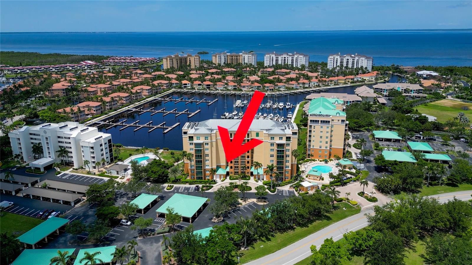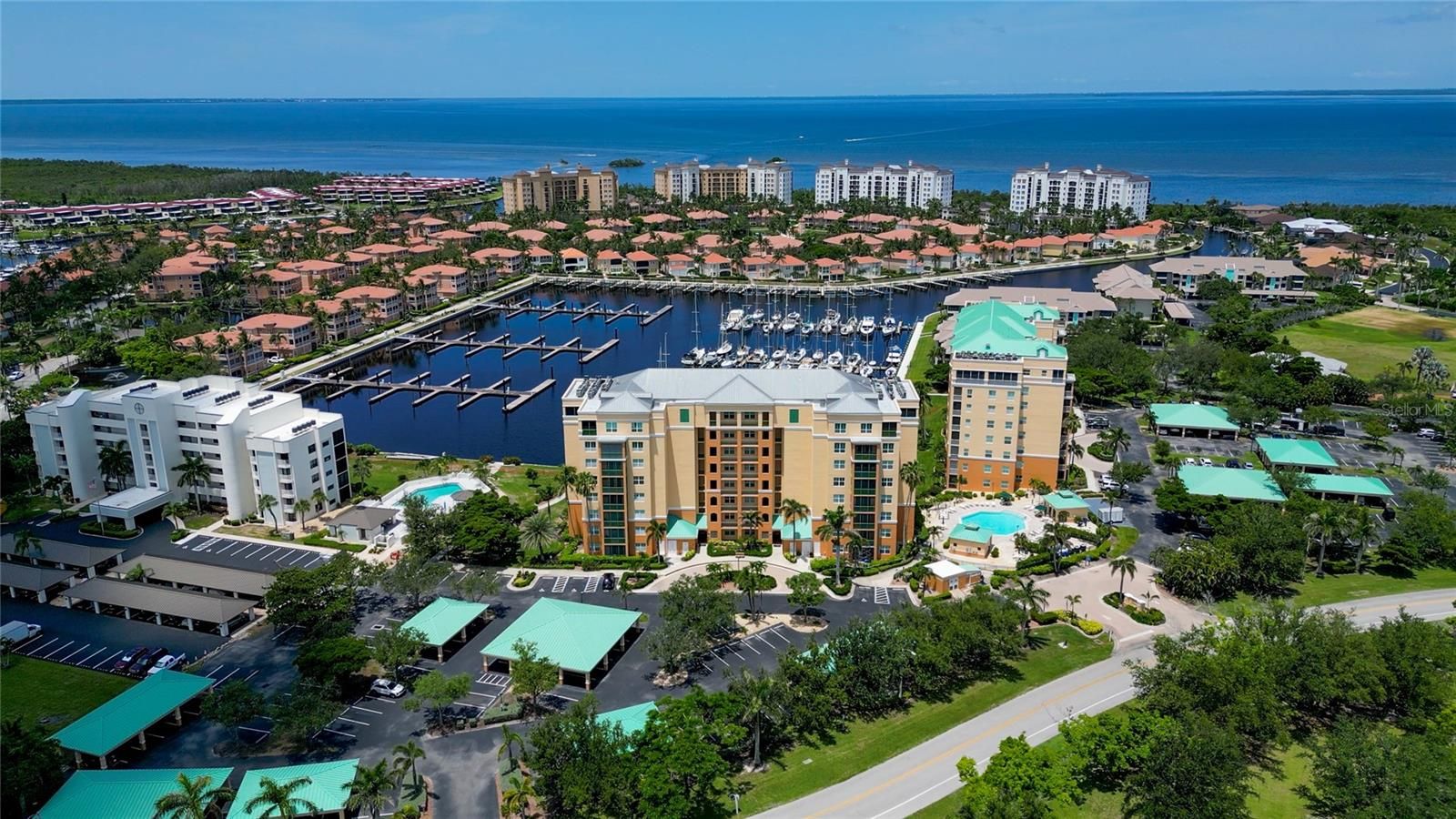 THIS AWESOME SECOND-FLOOR CONDO HAS A PANORAMIC VIEW OF THE MARINA NORTH BASIN where you can watch the boats coming and going, and the manatee and dolphins playing! Be sure to click on the Virtual Tour attached here! This unit includes a handsome CARPORT for vehicles or golf carts. And it is fully FURNISHED/TURNKEYwith a tropical flair... just bring your toothbrush and flip-flops! Owner just added an electric Kevlar hurricane panel to protect the lanai furnishings. Beautiful wood-look flooring and tile throughout this home. The KITCHEN has solid oak cabinetry, stone counters and a new refrigerator and dishwasher. The master en-suite bath has an excellent custom shower enclosure. The HVAC was replaced in 2023. BURNT STORE MARINA is a first-class tropical resort community, with many ala carte amenities including a 27-hole golf course, a large tennis/pickleball/fitness center, a doggie park, walking trails, and the largest deep-water Marina on Florida's west coast with 600 wet slips and 350 dry racks. There are three on-site RESTAURANTS... Cass Cay on the harbor with daily entertainment, the Linkside Cafe at the golf course, and the Tradin' Post deli. Spend your days at the Harbor Towers swimming pool, boating and world-class fishing, golfing, biking, or just relaxing with a good book on your tropical lanai. This beautiful condo offers the best in the care-free Florida lifestyle... welcome to Paradise... you deserve it!