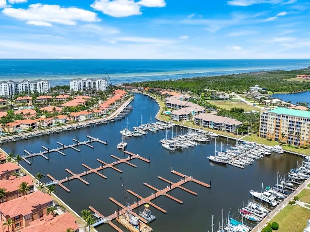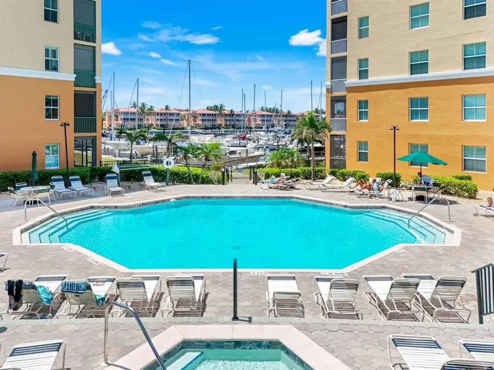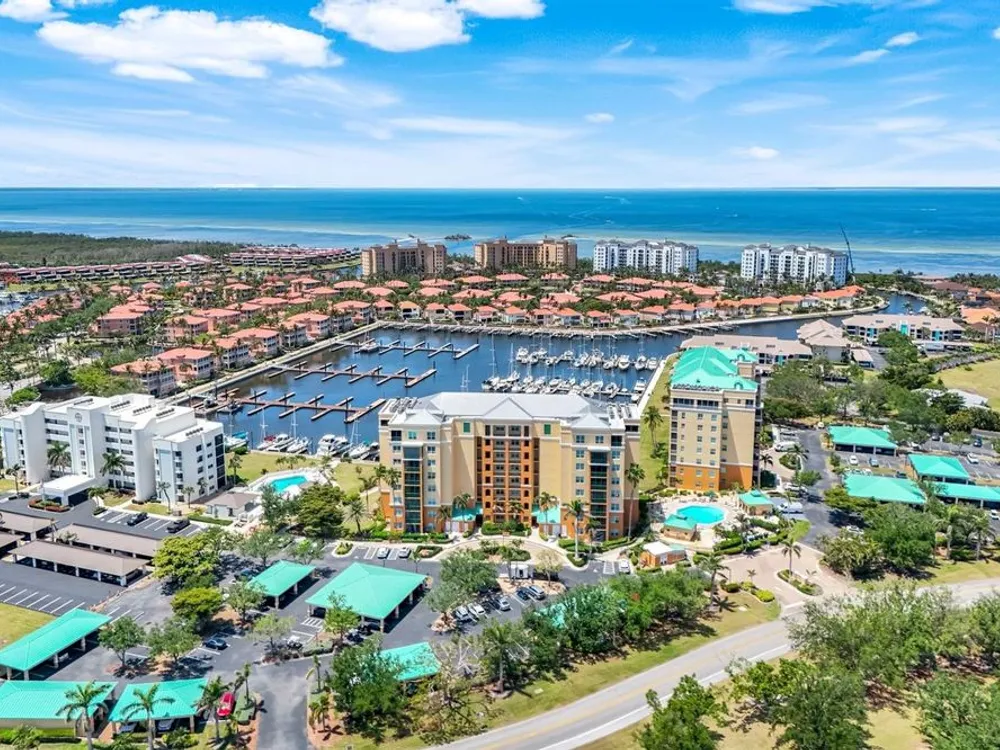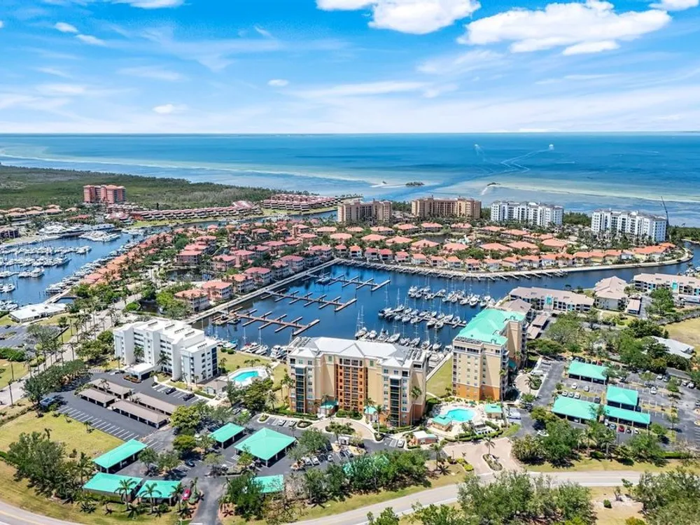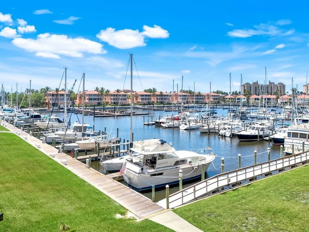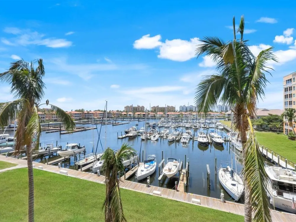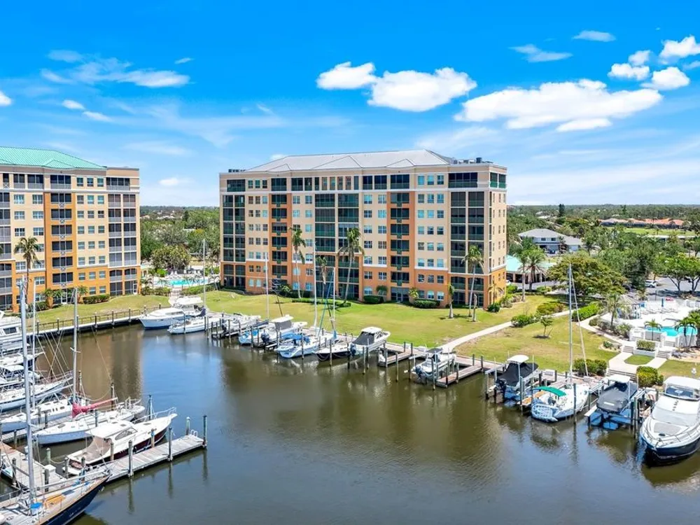 Lovely Florida condo with an incredible view of the marina, where you can watch the manatees play! This 2-bedroom, 2-bathroom condo features a bright kitchen with lots of storage in the newer cabinets, quartz countertops, breakfast bar, plus formal dining area. The spacious living room boasts a view of water and boats in the marina, with a sliding door to the screened balcony. Primary bedroom has a spacious walk-in closet, sliding doors to the screened balcony and ensuite bathroom with tiled walk-in shower. Welcome guests with a 2nd bedroom and guest bathroom with tub/shower combination in a separate hallway. Laundry closet inside the unit for your convenience. Also included is an owned, covered carport space (not available with every unit). This property allows a 7-day rental minimum, which makes it great for investors. Burnt Store Marina offers 2 restaurants, a golf course, fitness center, tennis and pickleball courts and the Harbor Towers have a private swimming pool. Come relax in the privacy of your beautiful Florida condo, play some golf, enjoy the walking paths, or the friendly common areas with activities galore.
