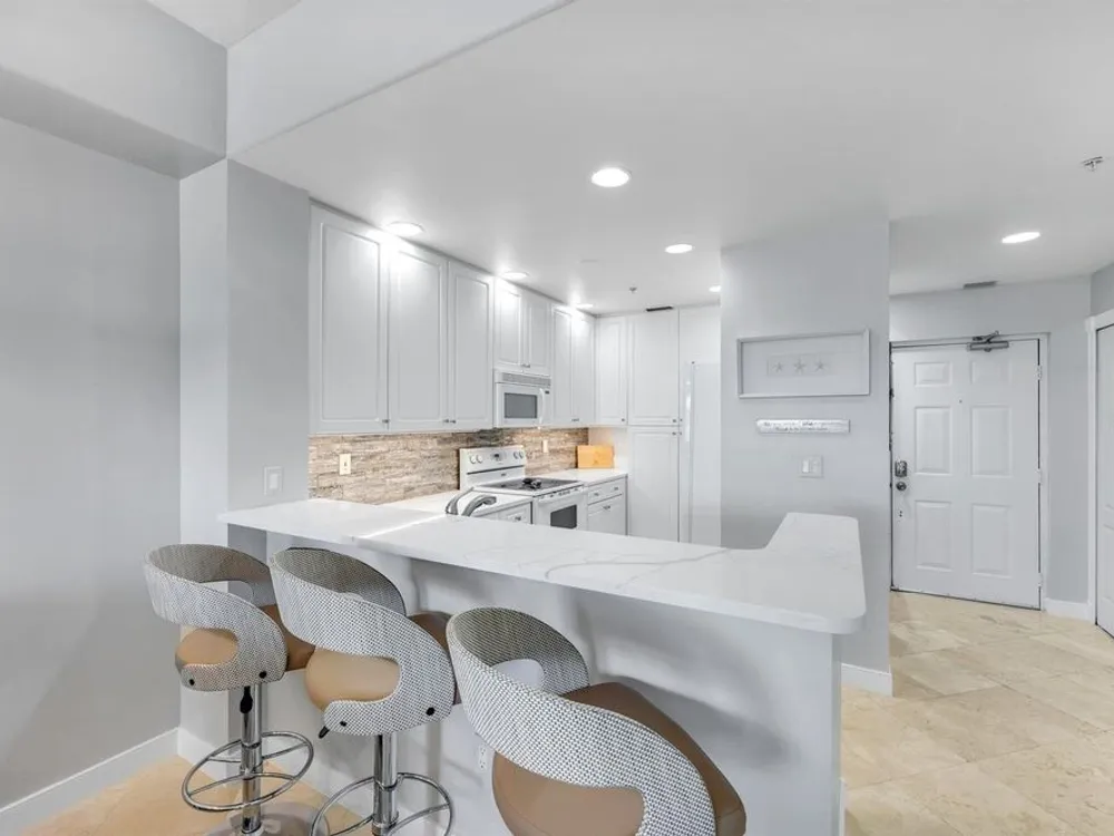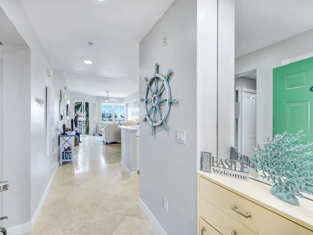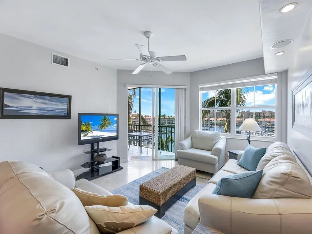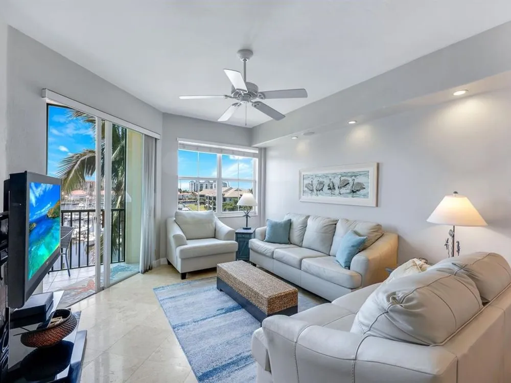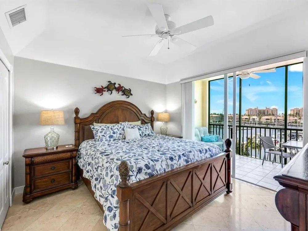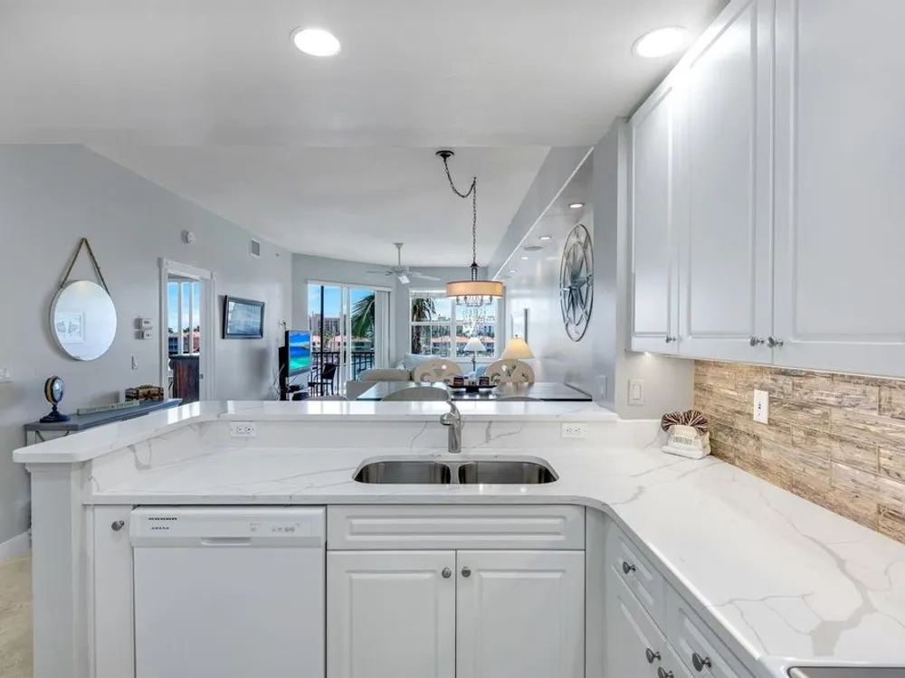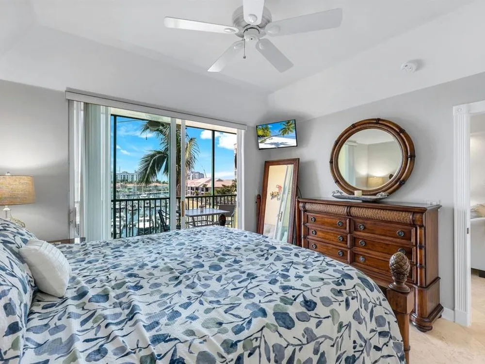 Lovely Florida condo with an incredible view of the marina, where you can watch the manatees play! This 2-bedroom, 2-bathroom condo features a bright kitchen with lots of storage in the newer cabinets, quartz countertops, breakfast bar, plus formal dining area. The spacious living room boasts a view of water and boats in the marina, with a sliding door to the screened balcony. Primary bedroom has a spacious walk-in closet, sliding doors to the screened balcony and ensuite bathroom with tiled walk-in shower. Welcome guests with a 2nd bedroom and guest bathroom with tub/shower combination in a separate hallway. Laundry closet inside the unit for your convenience. Also included is an owned, covered carport space (not available with every unit). This property allows a 7-day rental minimum, which makes it great for investors. Burnt Store Marina offers 2 restaurants, a golf course, fitness center, tennis and pickleball courts and the Harbor Towers have a private swimming pool. Come relax in the privacy of your beautiful Florida condo, play some golf, enjoy the walking paths, or the friendly common areas with activities galore.