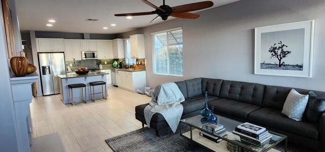 $20,000 PRICE IMPROVEMENT! Welcome to Palm Springs, Four Seasons. A private and gated Exceptional Residence in the Coveted Four Seasons 55+ Community. This beautifully upgraded designer home seamlessly blends elegance, functionality, and comfort throughout. At the heart of the residence is an expansive open floor plan, anchored by a chef's kitchen featuring upgraded stainless steel appliances, slide out shelving and an oversized center island, all with granite countertops. The home also offers a formal dining room and a separate living/sitting room, providing smooth elegant spaces with new porcelain tile throughout. The well separated bedrooms enhance privacy with an oversized primary suite offering a tranquil retreat plus a generous walk-in closet and a luxurious four-piece bath. Both bathrooms are elegantly updated with South African granite countertops, spa jacuzzi tub, new tile flooring, designer ceiling fans, upgraded lighting and refined finishes. Step outside to an immaculately landscaped yard to enjoy sweeping mountain, desert and city views, perfect for morning coffee or evening sunsets. Life at Four Seasons revolves around The Lodge; a beautifully appointed clubhouse offering a vibrant calendar of activities, full time staff, fitness & aerobics studios, a ballroom, game room, library, and more. Resort-style amenities include swimming pools, spas, tennis and pickleball courts, a BBQ pavilion, and scenic walking paths--all designed for wellness, connection, and active living. Located just minutes from downtown Palm Springs, this home combines the serenity of a private community with convenient access to fine dining, designer shopping, world-class entertainment, and premier medical care. Low HOA dues include Frontier fiber optic internet. More than a home, this refined residence captures the essence of the Palm Springs lifestyle--beauty, comfort, and community in perfect balance.
