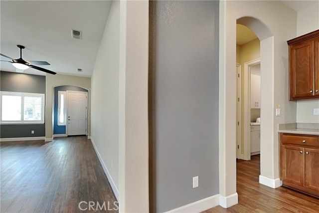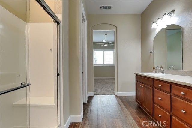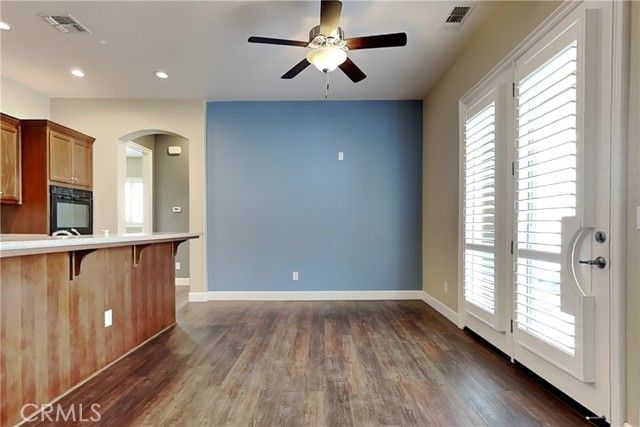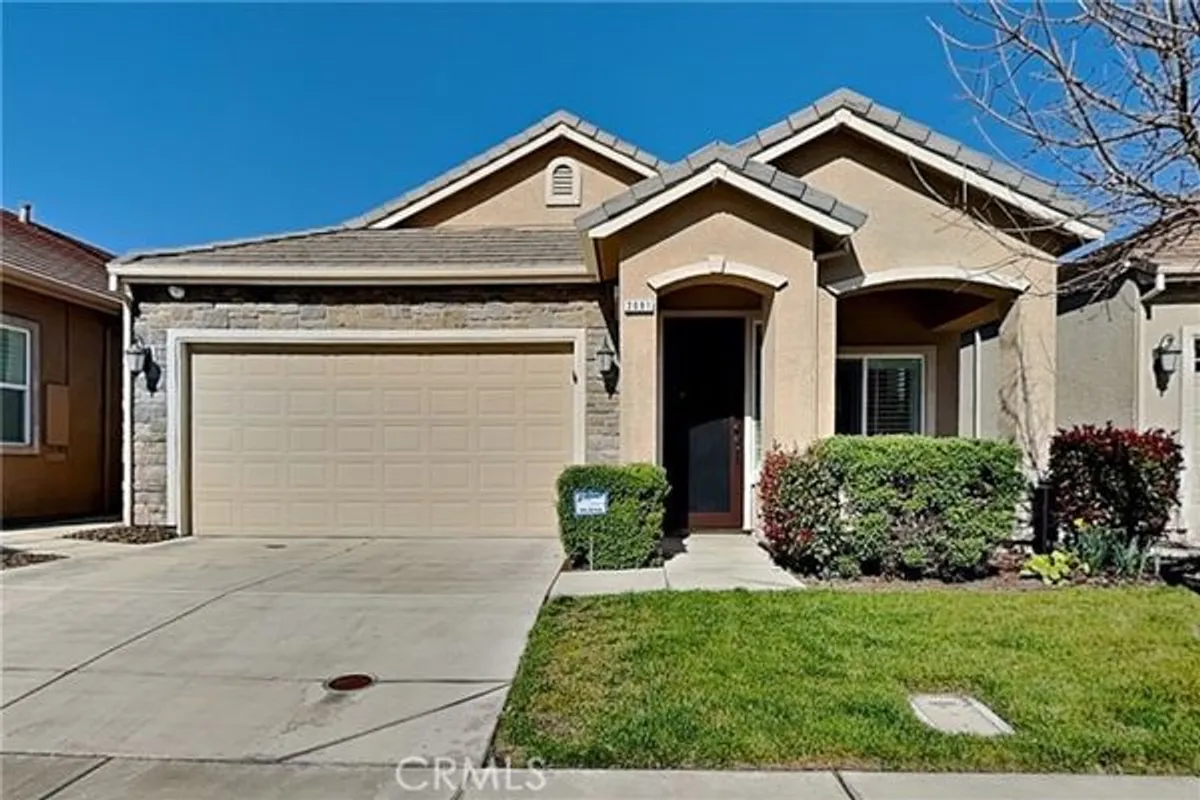 Welcome to Cottage Park gated senior 55+ community in Turlock! Beautifully upgraded 2BR/2BA model with excellent floorplan and over 1,400 SF. Incredible custom-installed security door at entry with amazing bronze finish. Updated designer interior paint and baseboards throughout. Large living room with beautiful luxury vinyl plank (LVP) flooring, ceiling fan, and custom plantation shutters. Kitchen with LVP plank flooring, solid-surface slab countertops with full backsplash, island with sink and breakfast bar, all built-in appliances (double oven, microwave, Bosch dishwasher, gas cooktop), abundant upgraded cabinets, LED recessed lighting, and large lighted pantry closet with built-in shelving. Adjacent formal dining area with LVP plank flooring, ceiling fan and awesome atrium french door to backyard patio. Hall bath with solid-surface vanity top, upgraded vanity cabinet and faucet, tub/shower with window, and LVP plank flooring. Secondary bedroom features upgraded carpet, good-sized closet, designer ceiling fan, and 2 windows with custom plantation shutters. Master bedroom with upgraded carpet and custom plantation shutters. Master bath features upgraded vanity cabinet, solid-surface vanity top featuring dual sinks with upgraded faucets, private toilet area, LVP plank flooring, large shower with integrated seating and clear glass doors, and adjacent lighted walk-in closet. Inside laundry room with LVP plank flooring, designer cabinets, amazing solid-surface counter top and LED recessed lighting. Other features include full extended-height ceilings, built-in fire sprinklers throughout, pre-wired alarm system with 2 security cameras & upgraded baseboards. Private backyard features covered concrete patio area outside dining area atrium door, upgraded vinyl fencing and gate, beautiful low-maintenance ornamental landscape plantings, concrete walk leading to backyard grass area and rear concrete patio with outside storage. 2-car finished garage with 2 professionally installed overhead storage racks and professionally installed TESLA electric car (EV) charger. Cottage Park gated community features - Clubhouse with recreation area + fireplace, workout gym, kitchen, fenced pool area, Bocce ball court, 2 horseshoe pits, guest parking, and green-belt park areas with benches integrated throughout the community for walks or socializing. Excellent location to shopping, dining, hospital, and services. Welcome home!