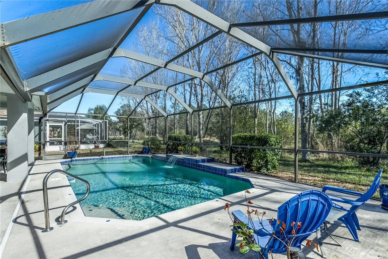Experience the best of Florida living in this popular Active 55+ gated golf community, where lifestyle, comfort, and convenience come together beautifully! This spacious 3-bedroom, 2-bathroom POOL home with a 2-car garage offers an open and airy living and dining room combination—perfect for everyday living and entertaining. The bright kitchen features a cozy breakfast nook, pantry, stainless steel appliances, and Corian countertops, providing plenty of space to cook and gather. The oversized primary suite is a true retreat, overlooking the sparkling pool area and offering an en-suite bath with dual sinks, walk-in shower, and a generous walk-in closet. The desirable split-bedroom floor plan places two guest bedrooms and a guest bath at the front of the home, creating privacy and comfort for family and visitors. Situated on a quiet dead-end street, this home enjoys peaceful NATURE PRESERVE and pond views. The outdoor living space is simply amazing—an IMRESSIVE 1,200 sq ft screened-in LANAI, partially under roof, with a sparkling saltwater POOL and abundant room for relaxing or entertaining friends. Updates and replacement include ROOF 2021, A/C 2022, Double pane WINDOWS 2020, Luxury Vinyl FLOORING in living areas, WATER SOFTENER, WATER HAETER and HURRICANE SHUTTERS. Enjoy resort-style amenities including a clubhouse with restaurant, fitness center, library, pro shop, and countless clubs and social activities. Outdoor enthusiasts will love the 18-hole golf course, driving range, tennis, pickleball, bocce, shuffleboard, community garden, dog park, and more. HOA Quarterly fee cover ROOF REPLACEMENT, EXTERIOR PAINT, CABLE TV, INTERNET and LAWN MOWING. Best of all, you’re just a golf cart ride away from Publix, restaurants, banking, hair and nail salons, animal hospital, grooming, and more for everyday conveniences. Come embrace the vibrant Florida lifestyle and enjoy easy, active living at its finest!