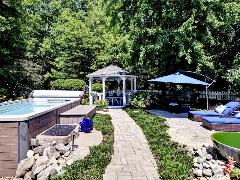 Looking for the ultimate in single-level living? This charming 5-bedroom home also offers the flexibility of a second floor with En-Suite Bedrooms for those who value privacy. Featuring a welcoming front porch, the layout includes 2 main floor bedrooms, 4 full baths, and 3 cozy natural gas fireplaces (located in the Great Room, Primary Suite, and Sunroom). The heart of the home is its spacious kitchen, boasting a center island, breakfast area, and a generous walk-in pantry. Plus, a conveniently situated Butler’s Pantry allows for easy access to the Great Room, making entertaining a breeze. One of the standout features is the seamless connection to the stunning backyard, highlighted by a fantastic Sunroom conversion filled with windows that truly brings the outdoors in. The outdoor retreat offers picturesque walking paths, raised garden beds, a built-in grill, and tranquil water features. With a vibrant array of flowers that bloom throughout the seasons, a charming gazebo and a year-round 8x15 heated REC pool/spa perfect for relaxation or fitness, this backyard is a dream come true. Don’t miss the chance to experience this beautiful home set on an exceptional .75-acre lot!