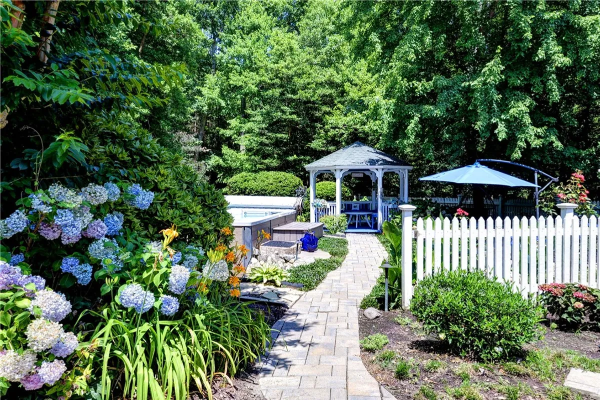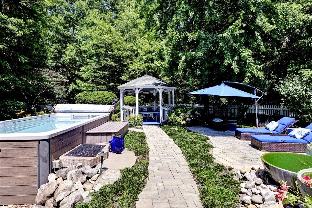 Welcome home! This stunning residence features 2 inviting bedrooms on the first floor and 2 more on the second, plus an amazing 5th bedroom with its own private entrance above the spacious four-car garage—perfect for guests or a home office! Greeted by a charming front porch, you’ll discover four full baths and three cozy natural gas fireplaces located in the Great Room, Primary Suite, and Sunroom, creating warm and inviting spaces to retreat to. The heart of this home is the expansive kitchen, complete with a center island, a bright breakfast area, and a large walk-in pantry. Enjoy seamless indoor-outdoor living with breathtaking views of the incredible backyard! Step into an exceptional Sunroom adorned with walls of windows that draws you to the outdoor retreat. The lush backyard boasts walking paths, charming raised gardens, a built-in grill, mesmerizing water features, and an array of seasonal blooms—it's a nature lover's paradise! Complete with a delightful gazebo and a year-round 8x15 heated REC pool/spa that’s perfect for relaxation or a vigorous swim. Situated on an exceptional .75-acre setting, this home truly has it all.