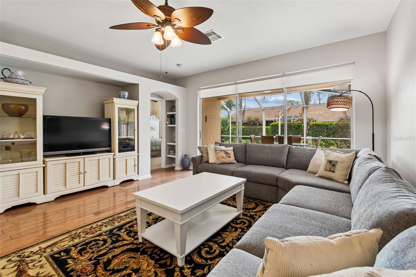Welcome to 20930 Jaffa Lane in Land O’ Lakes, located inside the highly sought after Groves Golf and Country Club, a vibrant 55+ golf course community known for its beautiful surroundings and active lifestyle. As you arrive, you are greeted by a gorgeous screened courtyard entry that leads you to the front door, creating a welcoming and private outdoor space that adds both charm and character to the home. This 2 bedroom, 2 bathroom home features a desirable split floor plan, offering comfortable living and privacy for both residents and guests. The property has been immaculately maintained, showing true pride of ownership throughout. New carpet was added to the bedrooms in 2022. Primary bathroom features granite counters, tile floors, and a walk in shower. The primary bedroom features a lovely bay window and a large walk in closet. The guest bathroom includes granite counters, tile floors, and a bathtub with tile surround. The roof was replaced in 2020 and the A/C was replaced in 2022. This home is move in ready! One of the standout features is the oversized screened in porch, offering plenty of room to relax, enjoy the Florida breeze, or entertain guests if you so desire. Whether you picture morning coffee, or hosting friends and neighbors, this space is perfect for embracing the Florida lifestyle. The quarterly HOA fees include roof replacement, exterior paint, basic cable, and lawn care. Located within The Groves Golf and Country Club, residents enjoy access to a golf course, clubhouse, restaurant, fitness center, pool, tennis, and a wide variety of social activities that make it easy to stay active and connected. Conveniently located near shopping, dining, and everyday conveniences, 20930 Jaffa Lane offers the perfect opportunity to enjoy comfortable living in one of Land O’ Lakes’ most desirable active adult communities.