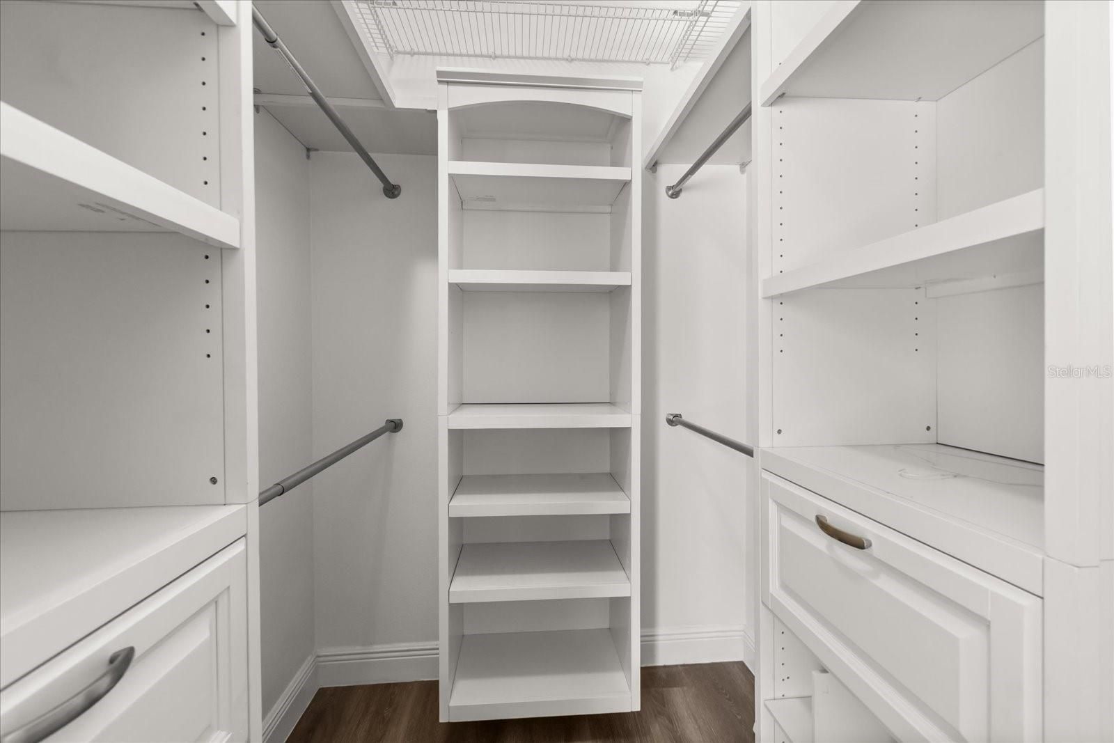 - Eat-in Kitchen, High Ceilings, Kitchen/Family Room Combo, Main Level Primary, Solid Surface Counters, Solid-Wood Cabinets, Stone Counters, Walk-In Closet(s), Window Treatments