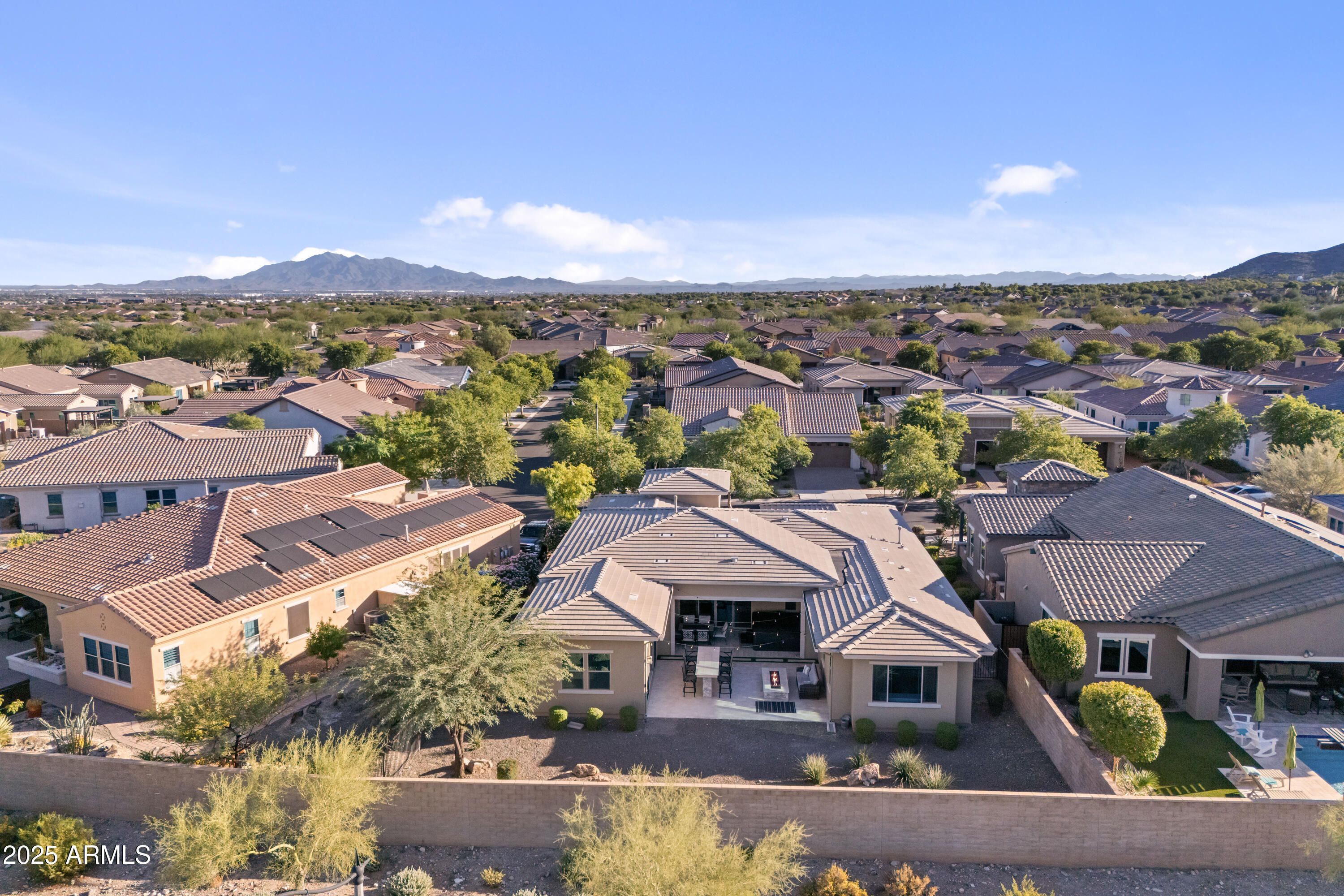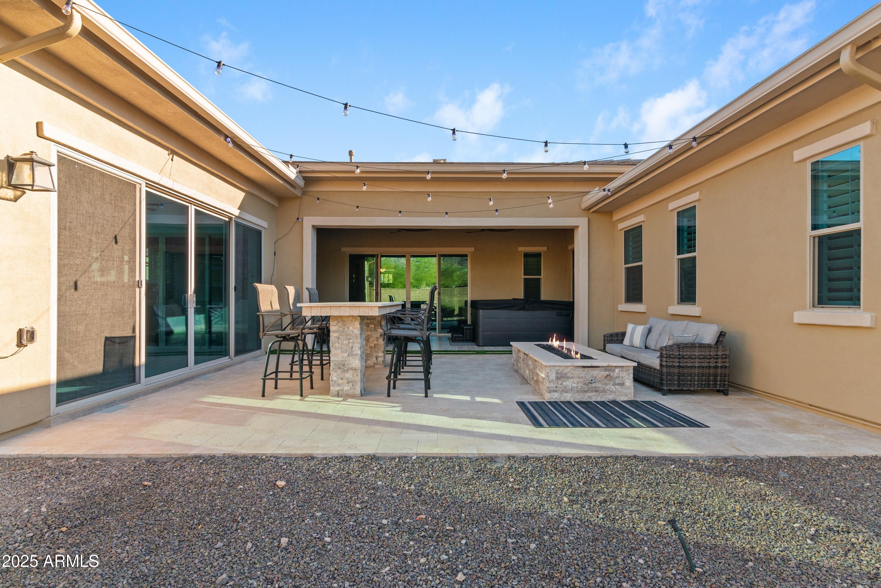 Over $130,000 in recent improvements has truly made this Entertainers Floorplan by Maracay an entertainers dream home with Mountain views. Your BRAND NEW kitchen is complete with one of the largest islands w/ additional storage that you won't find anywhere, new cabinetry with soft close hardware throughout, Quartz countertops, & a custom bar to match! Out back is where the continuation of entertainment extends with over $51,000 in improvements including a 7 person, 96 jet hot tub, custom built-in gas firepit, high top seating area, custom lighting, & travertine pavers all with Mountain views. In addition, the home has been recently painted inside & out, a new AC unit, the primary suite has a custom design closet, & the primary walk-in shower has dual rain head and body sprayers. The lot is large enough to accommodate a pool if desired. The definition of needing nothing and move in ready showcasing pride of ownership!