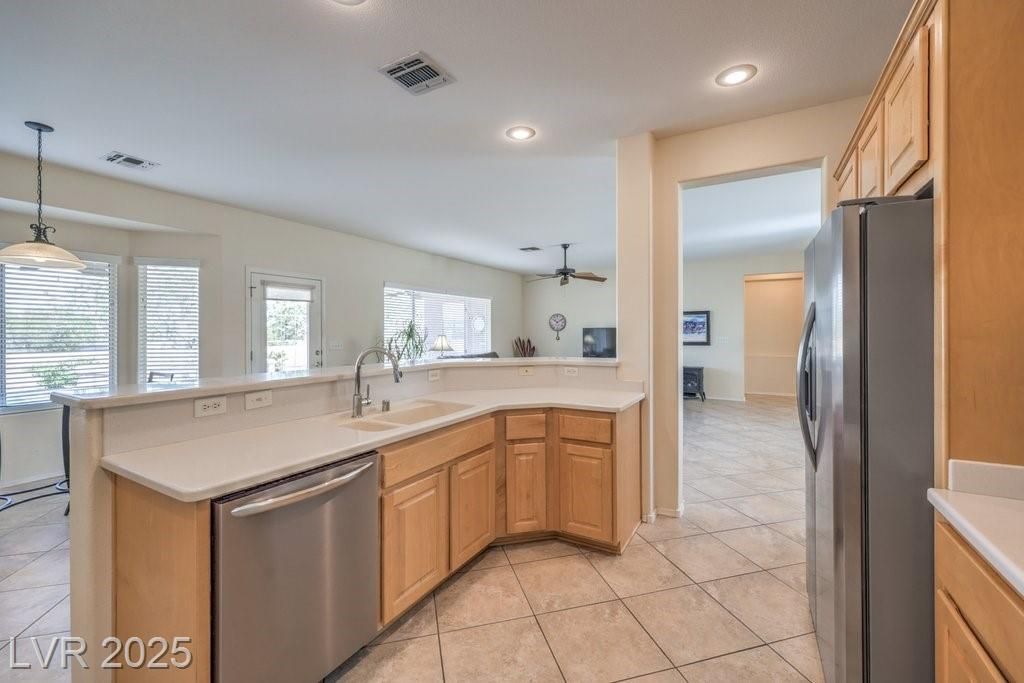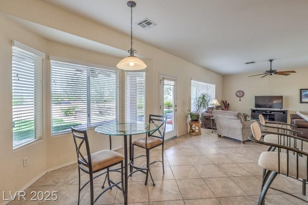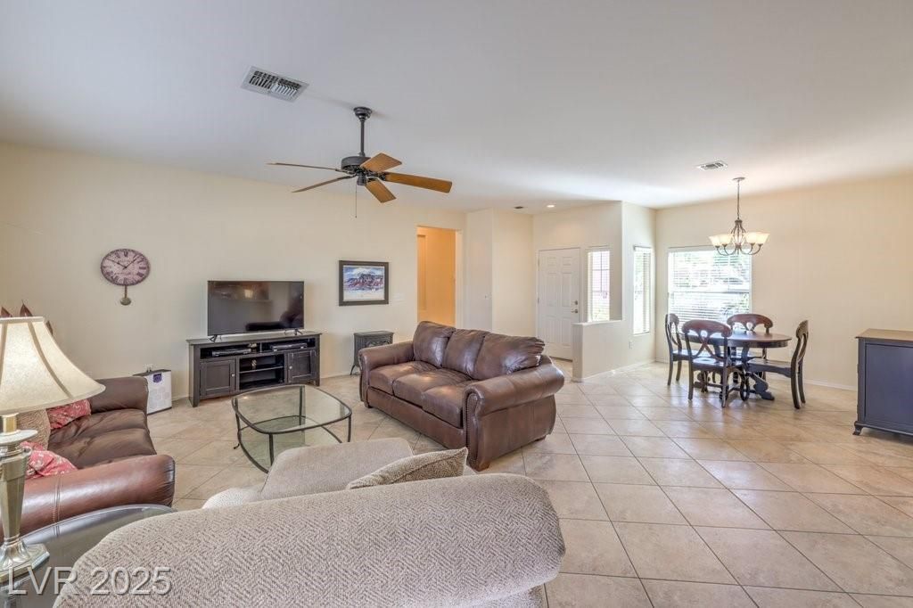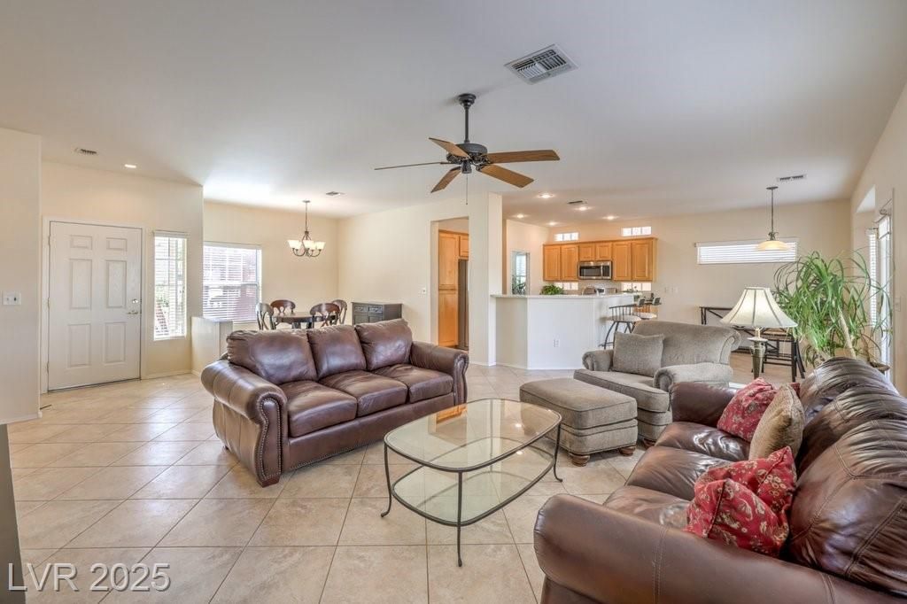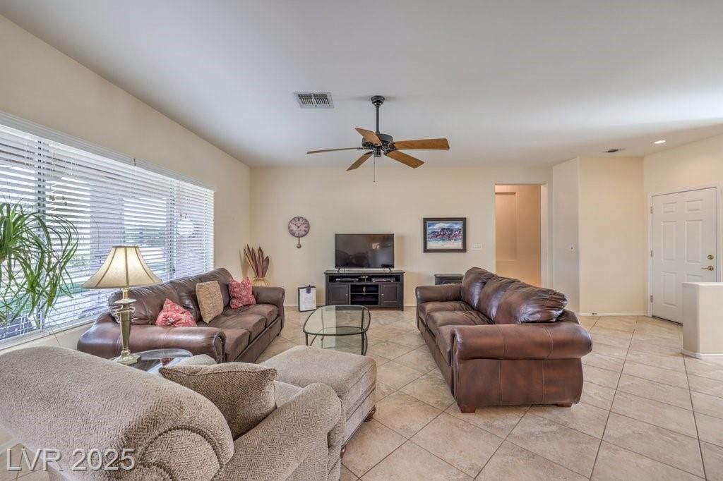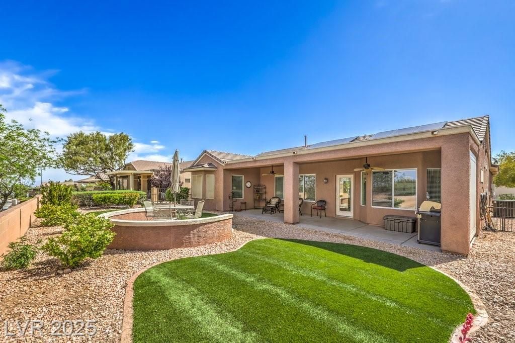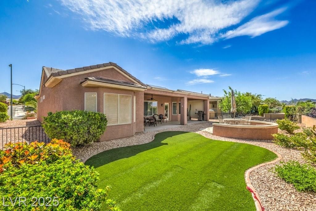 Welcome to this beautiful Monroe model in the 55+ Sun City Anthem community’s desirable Golf Mesa Village. Situated on a premium lot with breathtaking Strip and mountain views, this home offers no rear neighbor and a peaceful backyard retreat. The open concept layout is filled with natural light and features 9-ft ceilings, stone-pattern tile, and bay windows. The kitchen boasts Corian counters, quality cabinetry, and updated Frigidaire stainless-steel appliances. Enjoy the oversized laundry room—ideal as a hobby room or home office. Recent updates include new solar panels 2024, new AC/heat 2020, new Nuvo high-end water treatment system 2022, new water heater 2022, synthetic rear lawns 2023, and more. Relax out back under the covered patio with ceiling fans as you enjoy the attractive landscape and views. This home combines comfort, style, and convenience in one stunning package. Sun City Anthem offers an exciting lifestyle with recreation, fitness, pools, clubs, and a social calendar.