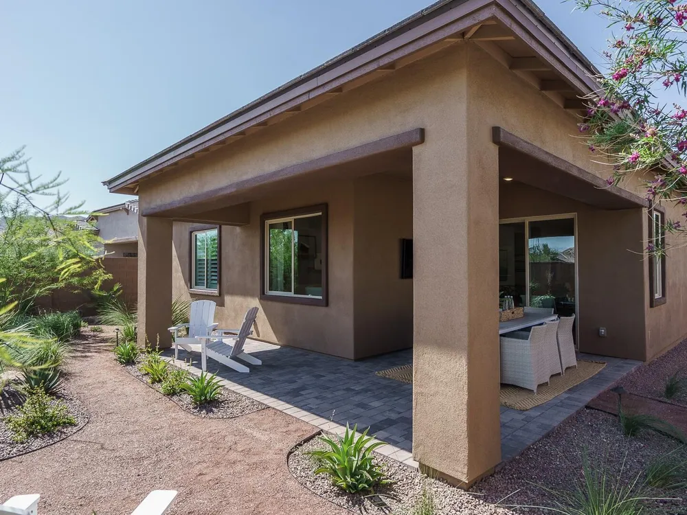 ***MODEL HOME loaded with CUSTOM FEATURES*** Our Augusta plan features 2 bdrms/2 bath w/a Study, 2 car Garage w/ separate GOLF CART GARAGE, & a PET SHOWER in the Laundry Room!! The Great Room & Kitchen offers a large kitchen island, high-quality stainless steel appliances, large w/in Pantry, & White Cabinets complemented by beautiful Quartz countertops! Right off the Great Room is an extended covered patio for family hangouts! The Owner's Suite has amazing VIEWS from its large windows, & the bathroom boasts an oversized w/in Shower with custom tile work, dual vanities, and a large w/in closet! Experience top-tier comfort and Energy Efficiency with SPRAY FOAM INSULATION, Tankless Hot Water Heater, Water Sense Plumbing fixtures & many more energy saving features!