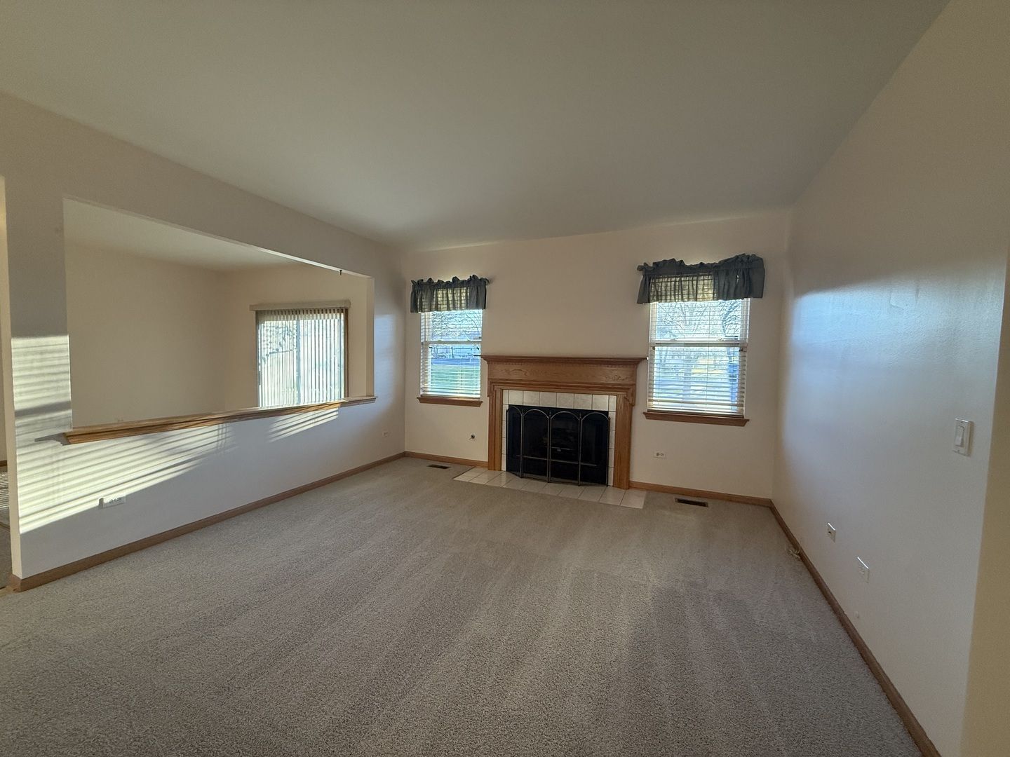 Welcome to this beautifully maintained ranch-style home in a highly desirable 55+ gated community! This spacious 3 bedroom, 2 bath residence offers comfortable single-level living with excellent amenities. The cozy living room features a charming fireplace, while the bright family room includes a sliding glass door that opens to an outdoor space. The large kitchen provides ample cabinetry and counter space, ideal for both cooking and hosting. The primary bedroom suite includes a private bath with both a soaking tub and separate shower, as well as a generous walk-in closet. The two additional bedrooms are generously sized, and the home features brand-new carpet throughout. Enjoy the convenience of a private entrance and easy access to I-55. This vibrant 55+ community offers resort-style amenities such as a clubhouse, swimming pool, fitness center, golf course, and much more, there is so much to do! Come experience the perfect blend of comfort, convenience, and community living!