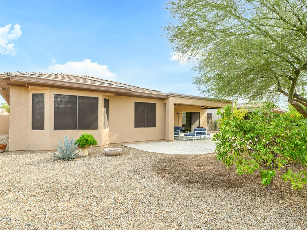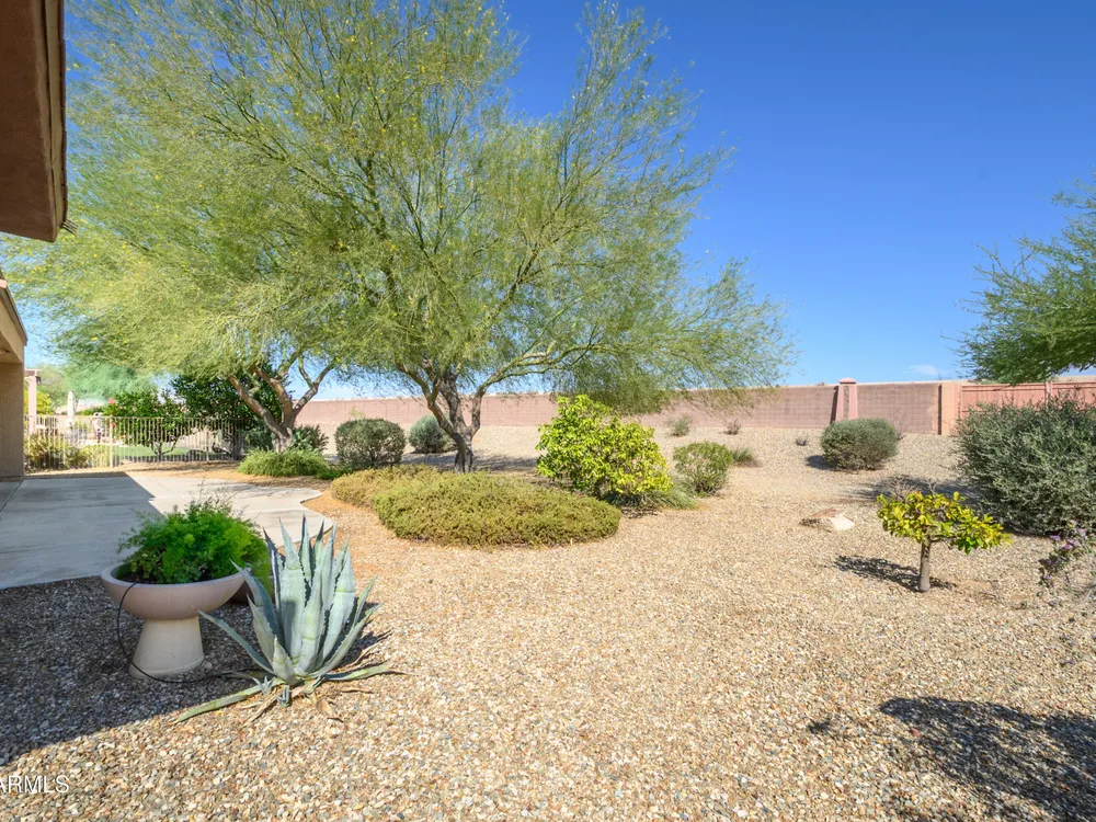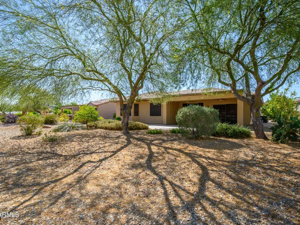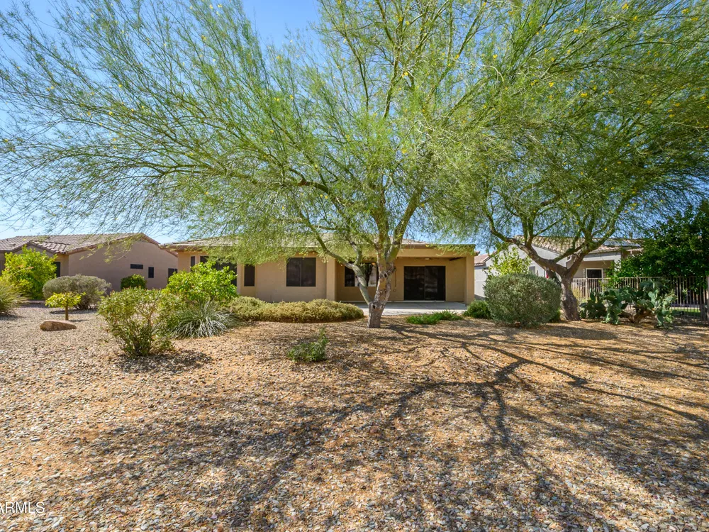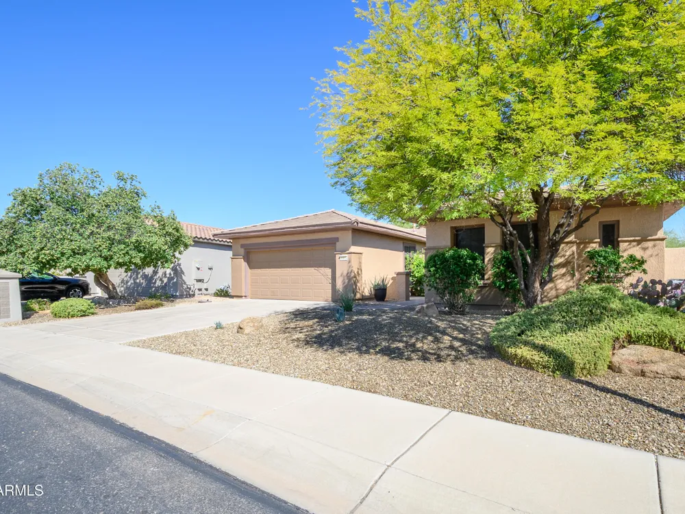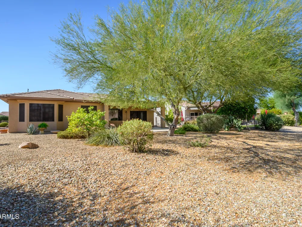 Experience unmatched privacy at 20972 N Canyon Whisper Dr in The Grand. This 1,854 sq ft Desert Rose floor plan features a rare attached CASITA and is situated on a premium berm lot with slight views of the White Tank Mountains. NorthWest facing with no rear neighbors, this home offers all tile and Cherry hardwood flooring, a spacious great room with a center island kitchen, and a primary suite with bay windows and a walk-in closet. The detached casita offers a full bath perfect for guests or hobbies. Beautiful desert landscaping, leased solar, and garage storage make this move-in-ready home the ideal retreat. Welcome to 20972 North Canyon Whisper Drive, a truly special home tucked away in the heart of Sun City Grand in Surprise, Arizona. This coveted Desert Rose floor plan, built in 2005 and with 1,854 square feet of thoughtfully designed living space, offers the ideal blend of functionality, privacy, and lifestyle. What makes this home stand apart is its incredibly private location on a berm lot with gentle views of the White Tank Mountains, as well as a highly desirable attached casitasomething rarely available in this floor plan. Southwest-facing and framed by mature desert trees, this home enjoys abundant natural light without the harsh sun, offering beautiful golden-hour moments and glowing sunsets. A private front courtyard welcomes you into the home and also offers separate access to the casita, creating a charming and functional space perfect for guests, a hobby room, home office, or even a private fitness area. Step inside to discover a move-in-ready home with absolutely no carpet throughout. All tile and luxury vinyl plank flooring give the property a modern, clean feel while offering easy maintenance and durability. The great room design is the heart of the home, where the open-concept living, dining, and kitchen spaces blend seamlessly to allow for effortless entertaining and everyday comfort. The kitchen overlooks the great room so that no one is left out, and features a generous center island, ample cabinet space, white appliances, and a neutral palette just waiting for your personal touch. Large windows and glass doors bring in natural light, connecting you to the stunning desert views. The spacious primary bedroom retreat offers a true place of rest and rejuvenation, with bay windows that frame serene views and invite morning light in. The en-suite bath features a double vanity, step-in shower, and walk-in closet that is sure to impress with its sheer size and functionality. The guest bedroom, located at the opposite end of the home, ensures privacy for both you and your visitors. The full guest bath is conveniently located nearby and is in pristine condition. The attached casita truly elevates the livability of this property. Accessed through the private front courtyard, it offers its own HVAC system, a full bathroom, and beautiful tile flooring. Whether used as a guest suite, home office, art studio, or even a private sanctuary for visiting family, this versatile space is a rare and valuable addition that dramatically expands the usability of the home. Step out back and you'll find a tranquil, low-maintenance oasis that defines Arizona living. Thanks to the berm lot, there are no neighbors directly behind youjust open desert views, natural arroyos, and the calming presence of the distant White Tank Mountains. The backyard landscaping blends native plants, palo verde trees, and mature shrubs to create a naturally beautiful and private setting. Whether you're enjoying a quiet morning coffee under the covered patio or entertaining friends during sunset, the outdoor experience is unmatched in this price range. Additional features include a two-car garage with built-in cabinetry for extra storage, an extended driveway with room for guests, and energy-efficient solar panels that provide long-term utility savings and eco-conscious living. The entire home has been well cared for and maintained to high standards, making it the perfect blank canvas for a buyer who wants something move-in ready with room to personalize. As part of The Grand community, you'll gain access to world-class amenities that enhance every aspect of your lifestyle. Imagine starting your day with a swim in one of the resort-style pools, followed by a round of golf on one of four championship golf courses designed by Billy Casper and Greg Nash. Whether you're into tennis, pickleball, hiking, woodworking, or photography, you'll find a club or group of like-minded neighbors who share your passion. The community offers two full fitness centers, indoor and outdoor lap pools, dance classes, craft studios, and more. Everything is designed with active adult living in mind, creating a lifestyle that is equal parts energetic, social, and serene. The Desert Rose floor plan is one of the most beloved for a reasonit flows intuitively, utilizes space efficiently, and maximizes comfort and connection. Add the casita, the berm lot, the views, and the elegant, move-in-ready interiors, and it becomes clear this home is a rare find in Sun City Grand.