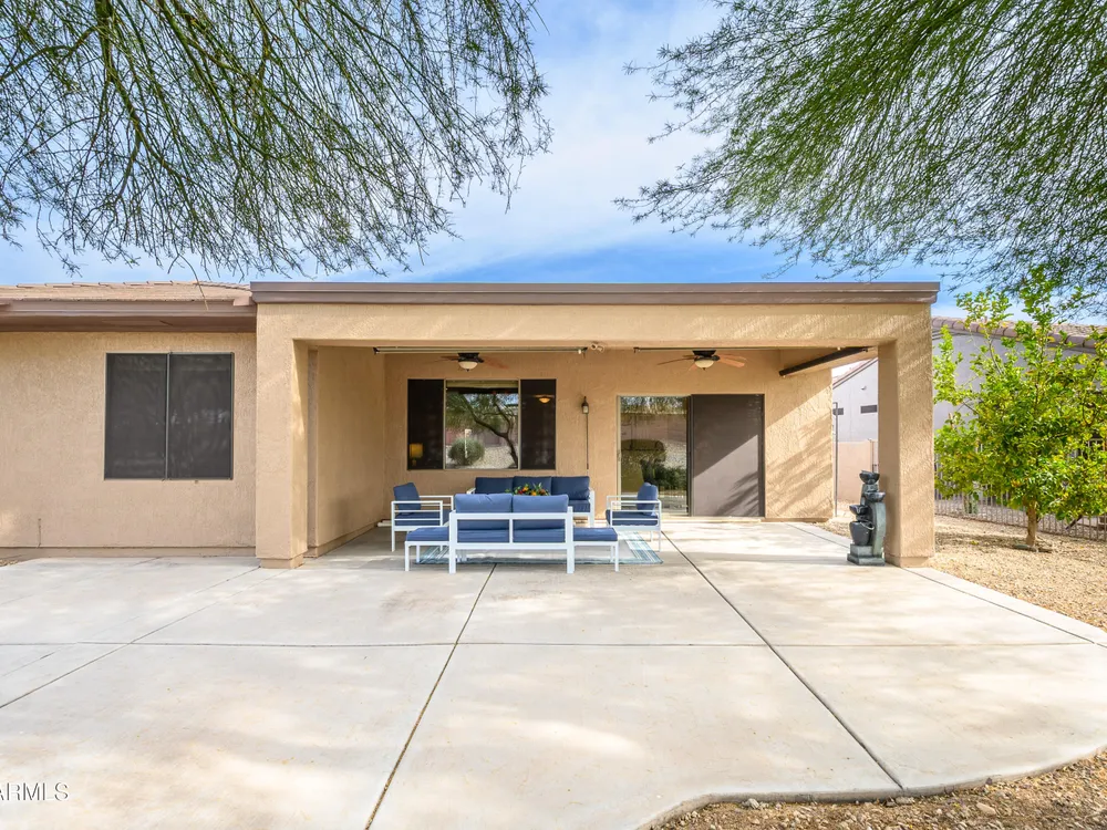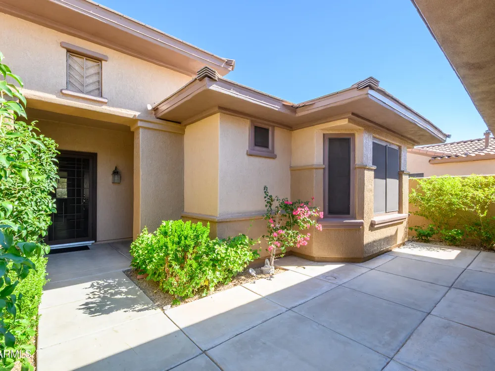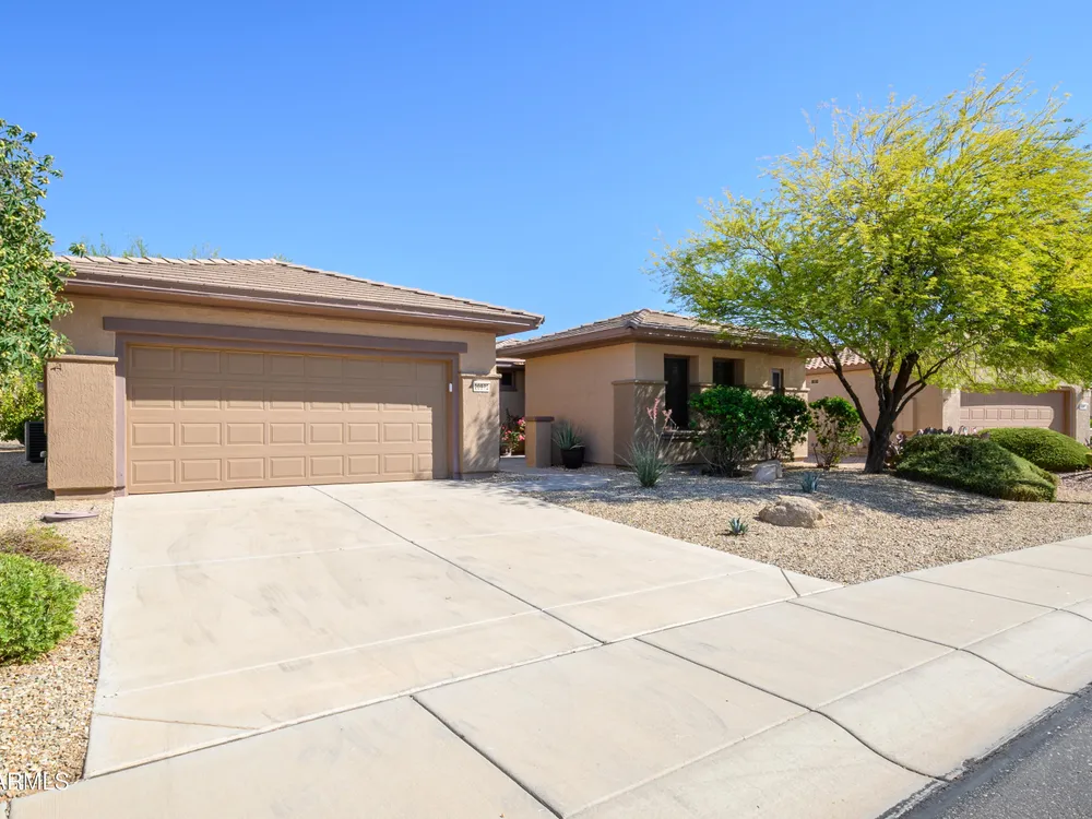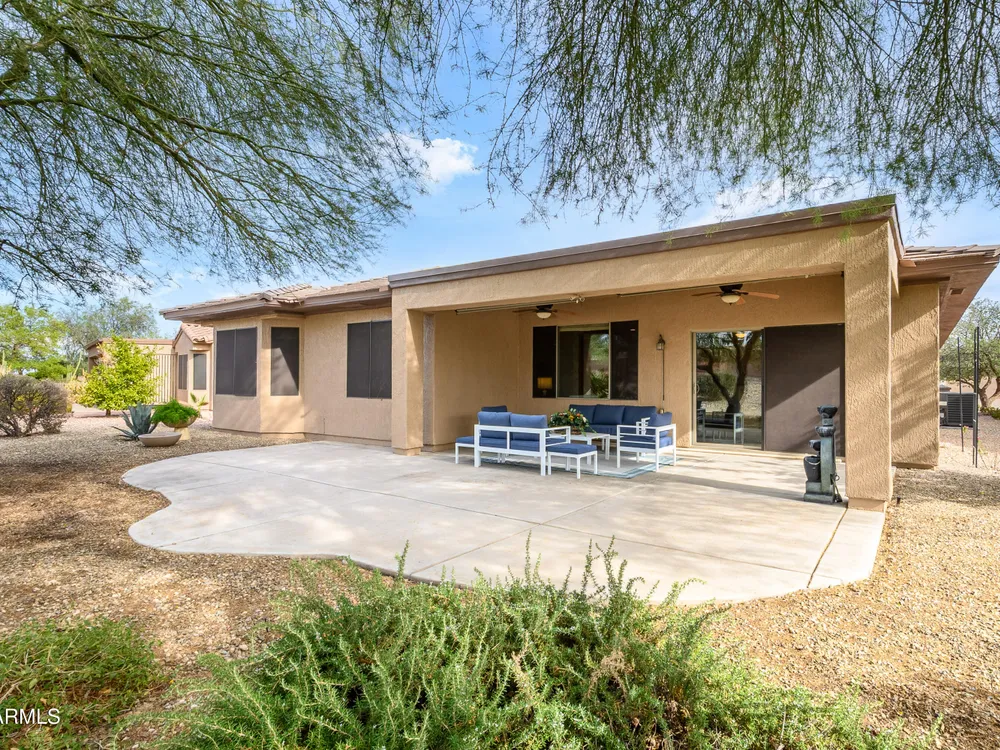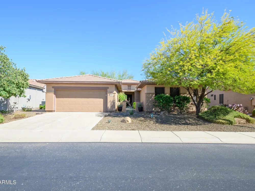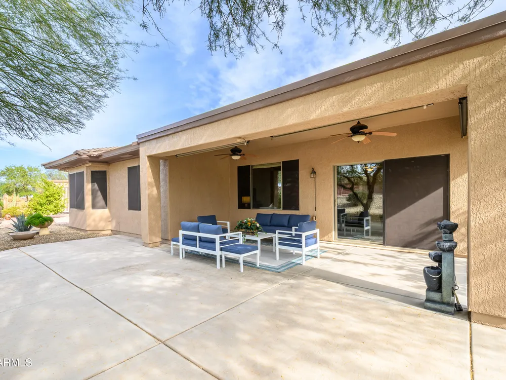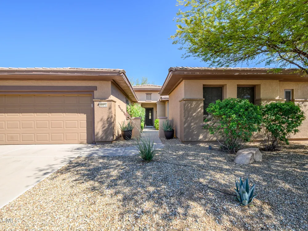 Experience unmatched privacy at 20972 N Canyon Whisper Dr in The Grand. This 1,854 sq ft Desert Rose floor plan features a rare attached CASITA and is situated on a premium berm lot with slight views of the White Tank Mountains. NorthWest facing with no rear neighbors, this home offers all tile and Cherry hardwood flooring, a spacious great room with a center island kitchen, and a primary suite with bay windows and a walk-in closet. The detached casita offers a full bath perfect for guests or hobbies. Beautiful desert landscaping, leased solar, and garage storage make this move-in-ready home the ideal retreat. Welcome to 20972 North Canyon Whisper Drive, a truly special home tucked away in the heart of Sun City Grand in Surprise, Arizona. This coveted Desert Rose floor plan, built in 2005 and with 1,854 square feet of thoughtfully designed living space, offers the ideal blend of functionality, privacy, and lifestyle. What makes this home stand apart is its incredibly private location on a berm lot with gentle views of the White Tank Mountains, as well as a highly desirable attached casitasomething rarely available in this floor plan. Southwest-facing and framed by mature desert trees, this home enjoys abundant natural light without the harsh sun, offering beautiful golden-hour moments and glowing sunsets. A private front courtyard welcomes you into the home and also offers separate access to the casita, creating a charming and functional space perfect for guests, a hobby room, home office, or even a private fitness area. Step inside to discover a move-in-ready home with absolutely no carpet throughout. All tile and luxury vinyl plank flooring give the property a modern, clean feel while offering easy maintenance and durability. The great room design is the heart of the home, where the open-concept living, dining, and kitchen spaces blend seamlessly to allow for effortless entertaining and everyday comfort. The kitchen overlooks the great room so that no one is left out, and features a generous center island, ample cabinet space, white appliances, and a neutral palette just waiting for your personal touch. Large windows and glass doors bring in natural light, connecting you to the stunning desert views. The spacious primary bedroom retreat offers a true place of rest and rejuvenation, with bay windows that frame serene views and invite morning light in. The en-suite bath features a double vanity, step-in shower, and walk-in closet that is sure to impress with its sheer size and functionality. The guest bedroom, located at the opposite end of the home, ensures privacy for both you and your visitors. The full guest bath is conveniently located nearby and is in pristine condition. The attached casita truly elevates the livability of this property. Accessed through the private front courtyard, it offers its own HVAC system, a full bathroom, and beautiful tile flooring. Whether used as a guest suite, home office, art studio, or even a private sanctuary for visiting family, this versatile space is a rare and valuable addition that dramatically expands the usability of the home. Step out back and you'll find a tranquil, low-maintenance oasis that defines Arizona living. Thanks to the berm lot, there are no neighbors directly behind youjust open desert views, natural arroyos, and the calming presence of the distant White Tank Mountains. The backyard landscaping blends native plants, palo verde trees, and mature shrubs to create a naturally beautiful and private setting. Whether you're enjoying a quiet morning coffee under the covered patio or entertaining friends during sunset, the outdoor experience is unmatched in this price range. Additional features include a two-car garage with built-in cabinetry for extra storage, an extended driveway with room for guests, and energy-efficient solar panels that provide long-term utility savings and eco-conscious living. The entire home has been well cared for and maintained to high standards, making it the perfect blank canvas for a buyer who wants something move-in ready with room to personalize. As part of The Grand community, you'll gain access to world-class amenities that enhance every aspect of your lifestyle. Imagine starting your day with a swim in one of the resort-style pools, followed by a round of golf on one of four championship golf courses designed by Billy Casper and Greg Nash. Whether you're into tennis, pickleball, hiking, woodworking, or photography, you'll find a club or group of like-minded neighbors who share your passion. The community offers two full fitness centers, indoor and outdoor lap pools, dance classes, craft studios, and more. Everything is designed with active adult living in mind, creating a lifestyle that is equal parts energetic, social, and serene. The Desert Rose floor plan is one of the most beloved for a reasonit flows intuitively, utilizes space efficiently, and maximizes comfort and connection. Add the casita, the berm lot, the views, and the elegant, move-in-ready interiors, and it becomes clear this home is a rare find in Sun City Grand.