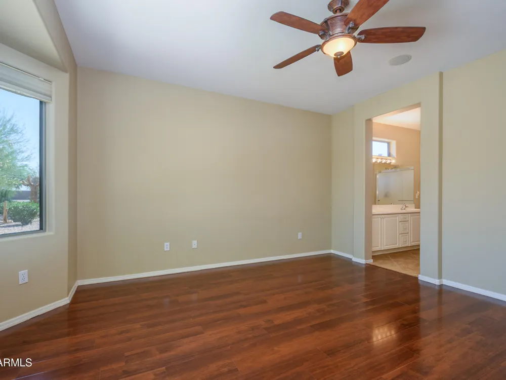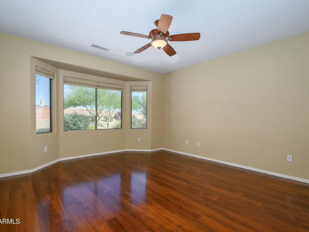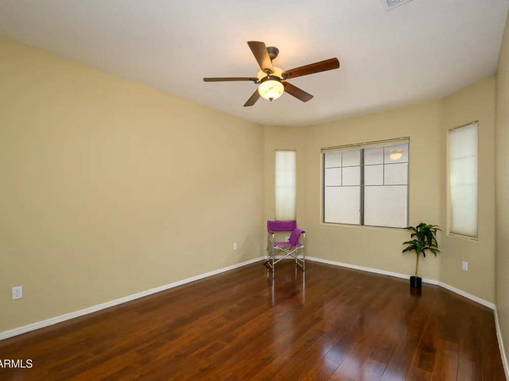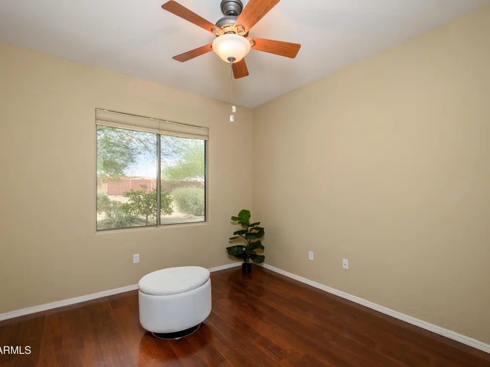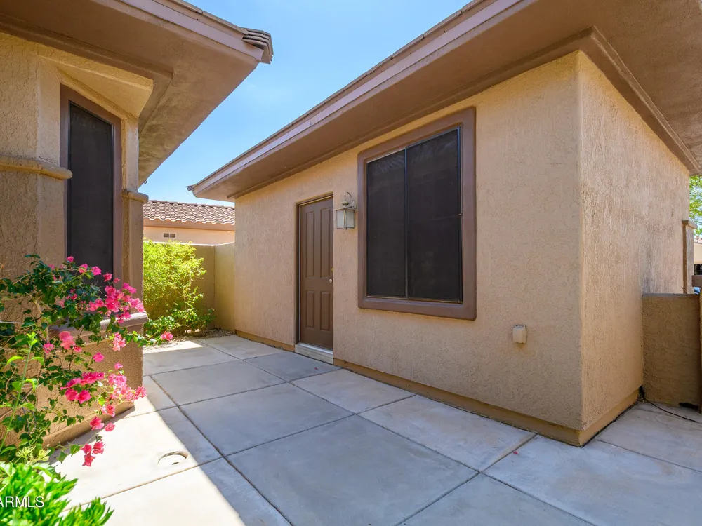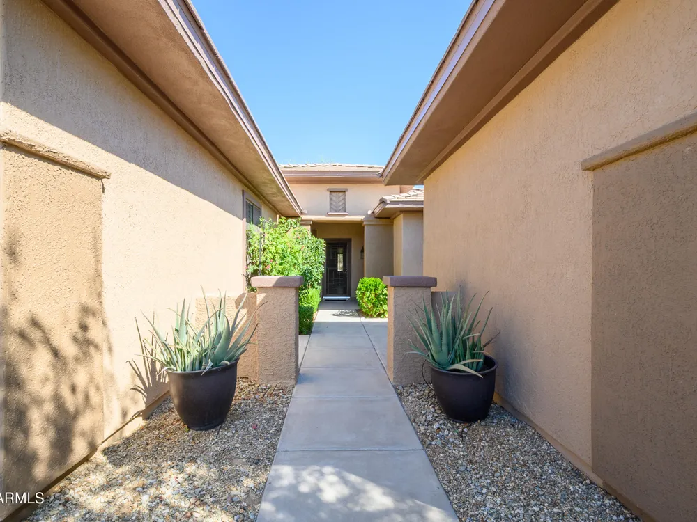 Experience unmatched privacy at 20972 N Canyon Whisper Dr in The Grand. This 1,854 sq ft Desert Rose floor plan features a rare attached CASITA and is situated on a premium berm lot with slight views of the White Tank Mountains. NorthWest facing with no rear neighbors, this home offers all tile and Cherry hardwood flooring, a spacious great room with a center island kitchen, and a primary suite with bay windows and a walk-in closet. The detached casita offers a full bath perfect for guests or hobbies. Beautiful desert landscaping, leased solar, and garage storage make this move-in-ready home the ideal retreat. Welcome to 20972 North Canyon Whisper Drive, a truly special home tucked away in the heart of Sun City Grand in Surprise, Arizona. This coveted Desert Rose floor plan, built in 2005 and with 1,854 square feet of thoughtfully designed living space, offers the ideal blend of functionality, privacy, and lifestyle. What makes this home stand apart is its incredibly private location on a berm lot with gentle views of the White Tank Mountains, as well as a highly desirable attached casitasomething rarely available in this floor plan. Southwest-facing and framed by mature desert trees, this home enjoys abundant natural light without the harsh sun, offering beautiful golden-hour moments and glowing sunsets. A private front courtyard welcomes you into the home and also offers separate access to the casita, creating a charming and functional space perfect for guests, a hobby room, home office, or even a private fitness area. Step inside to discover a move-in-ready home with absolutely no carpet throughout. All tile and luxury vinyl plank flooring give the property a modern, clean feel while offering easy maintenance and durability. The great room design is the heart of the home, where the open-concept living, dining, and kitchen spaces blend seamlessly to allow for effortless entertaining and everyday comfort. The kitchen overlooks the great room so that no one is left out, and features a generous center island, ample cabinet space, white appliances, and a neutral palette just waiting for your personal touch. Large windows and glass doors bring in natural light, connecting you to the stunning desert views. The spacious primary bedroom retreat offers a true place of rest and rejuvenation, with bay windows that frame serene views and invite morning light in. The en-suite bath features a double vanity, step-in shower, and walk-in closet that is sure to impress with its sheer size and functionality. The guest bedroom, located at the opposite end of the home, ensures privacy for both you and your visitors. The full guest bath is conveniently located nearby and is in pristine condition. The attached casita truly elevates the livability of this property. Accessed through the private front courtyard, it offers its own HVAC system, a full bathroom, and beautiful tile flooring. Whether used as a guest suite, home office, art studio, or even a private sanctuary for visiting family, this versatile space is a rare and valuable addition that dramatically expands the usability of the home. Step out back and you'll find a tranquil, low-maintenance oasis that defines Arizona living. Thanks to the berm lot, there are no neighbors directly behind youjust open desert views, natural arroyos, and the calming presence of the distant White Tank Mountains. The backyard landscaping blends native plants, palo verde trees, and mature shrubs to create a naturally beautiful and private setting. Whether you're enjoying a quiet morning coffee under the covered patio or entertaining friends during sunset, the outdoor experience is unmatched in this price range. Additional features include a two-car garage with built-in cabinetry for extra storage, an extended driveway with room for guests, and energy-efficient solar panels that provide long-term utility savings and eco-conscious living. The entire home has been well cared for and maintained to high standards, making it the perfect blank canvas for a buyer who wants something move-in ready with room to personalize. As part of The Grand community, you'll gain access to world-class amenities that enhance every aspect of your lifestyle. Imagine starting your day with a swim in one of the resort-style pools, followed by a round of golf on one of four championship golf courses designed by Billy Casper and Greg Nash. Whether you're into tennis, pickleball, hiking, woodworking, or photography, you'll find a club or group of like-minded neighbors who share your passion. The community offers two full fitness centers, indoor and outdoor lap pools, dance classes, craft studios, and more. Everything is designed with active adult living in mind, creating a lifestyle that is equal parts energetic, social, and serene. The Desert Rose floor plan is one of the most beloved for a reasonit flows intuitively, utilizes space efficiently, and maximizes comfort and connection. Add the casita, the berm lot, the views, and the elegant, move-in-ready interiors, and it becomes clear this home is a rare find in Sun City Grand.