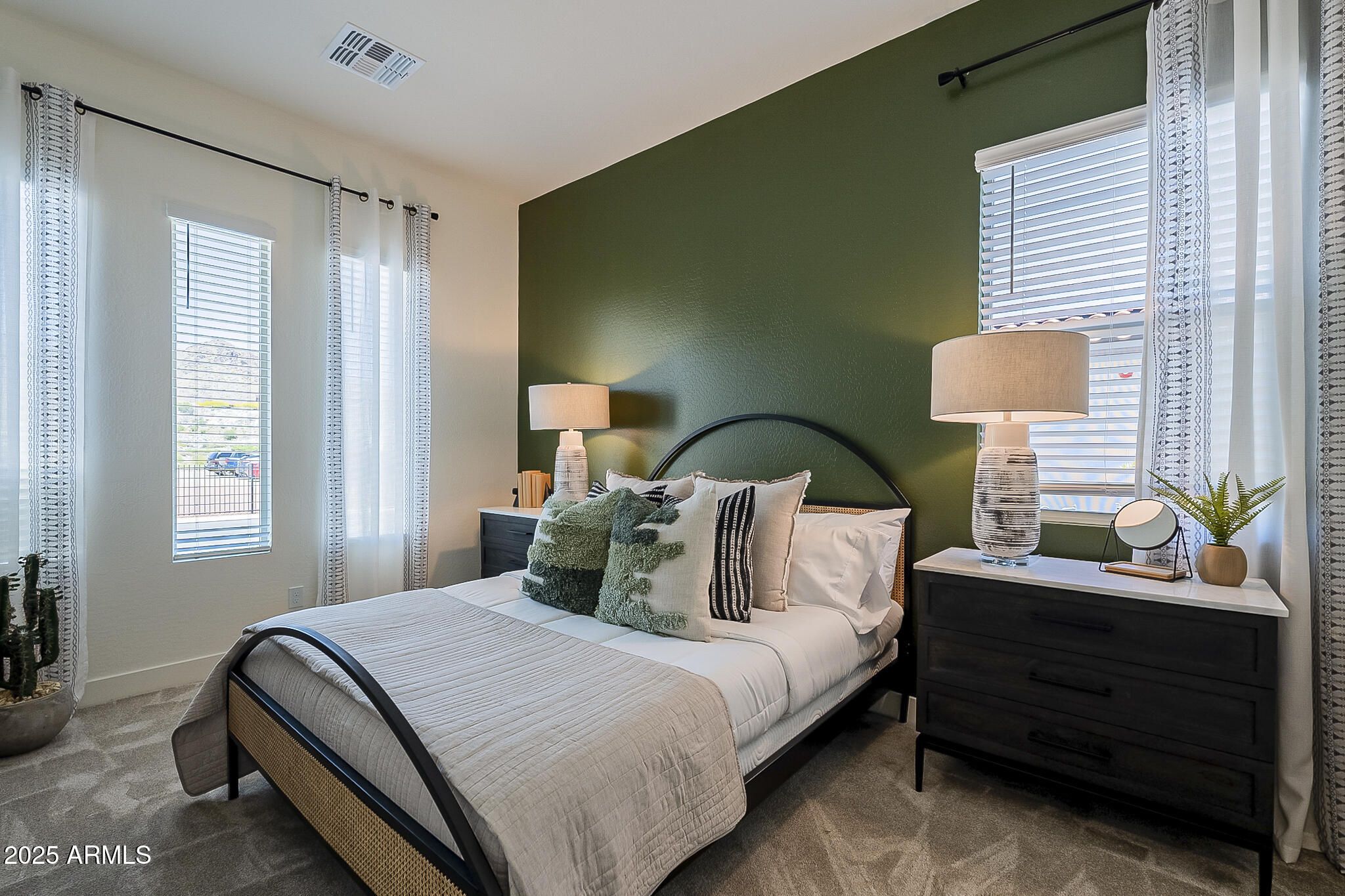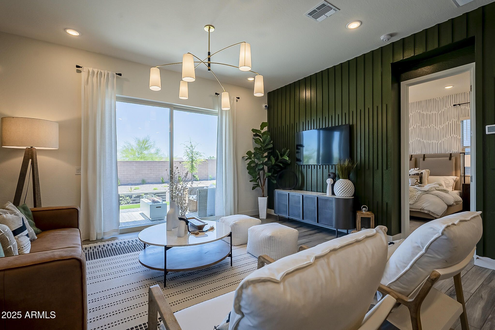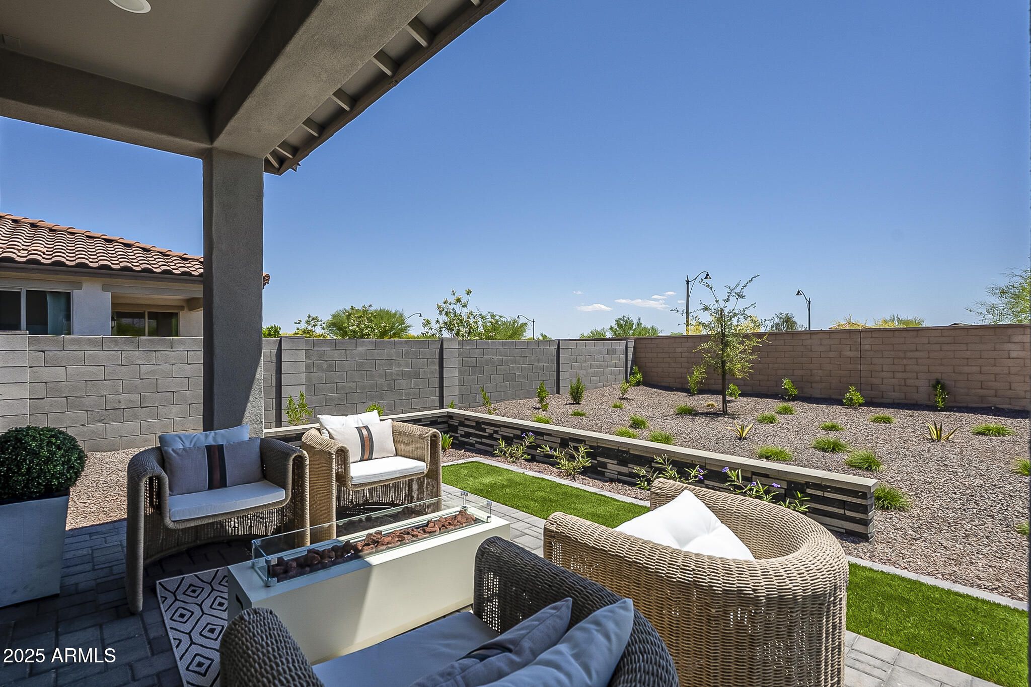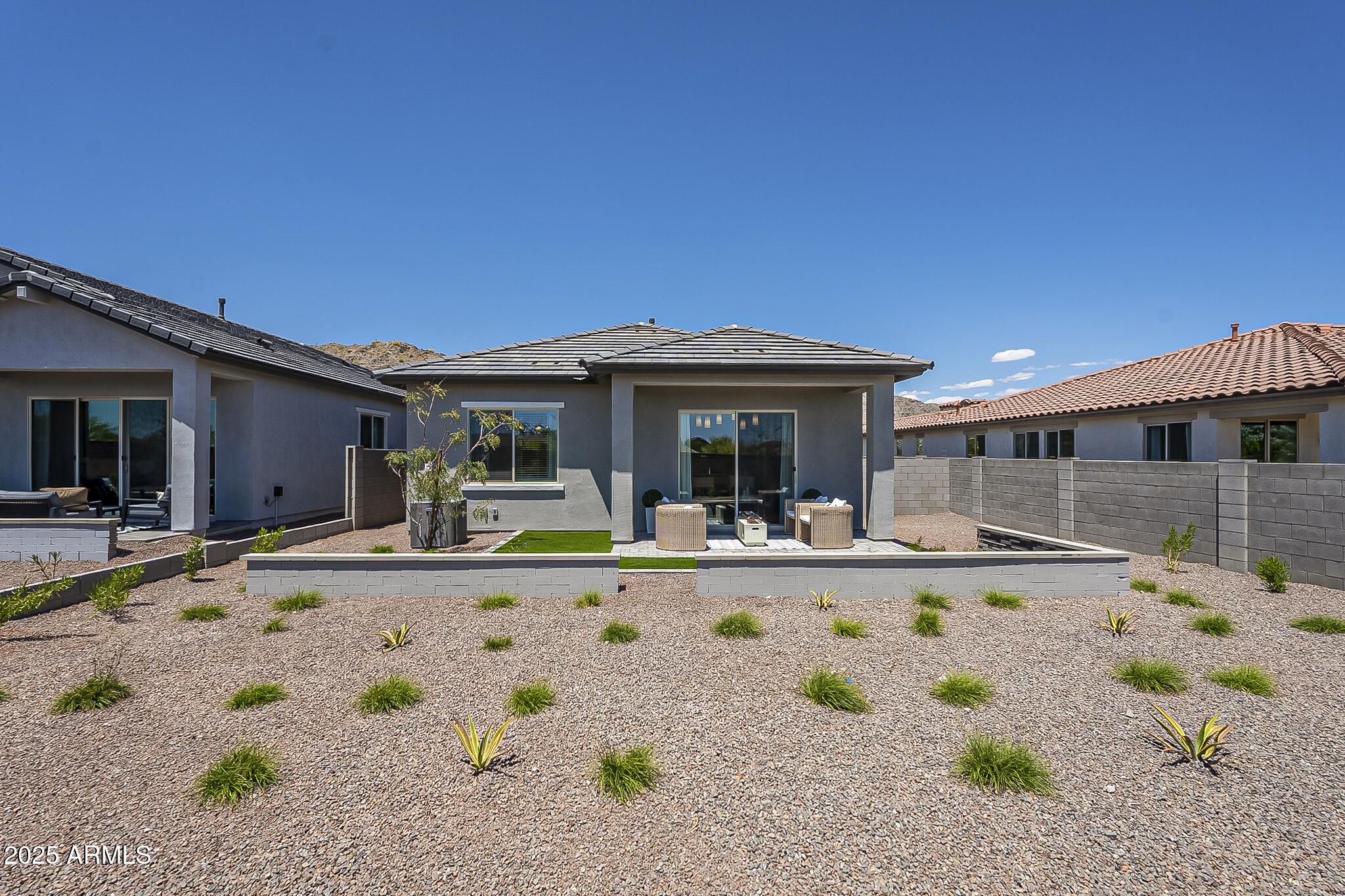 Experience mountainside living at its finest in the beautiful Victory at Verrado 55+ community! Located on the famous Builder Row, this stunning FORMER MODEL HOME offers 2 bedrooms, 2 bathrooms, and a versatile flex room—perfect for a home office, dining space, or cozy reading nook. With 10' ceilings and 8' doors, the open floor plan feels bright, spacious, and inviting.The home showcases elegant designer lighting, and upgrades throughout. The large lot provides added privacy and plenty of space to relax or entertain, while the paver driveway and walkway enhance its modern curb appeal.Perfect as your full-time residence or a winter retreat, this home combines comfort, functionality, and timeless style—a truly elegant desert escape. NOTE: Occupancy available the first week of January 2026