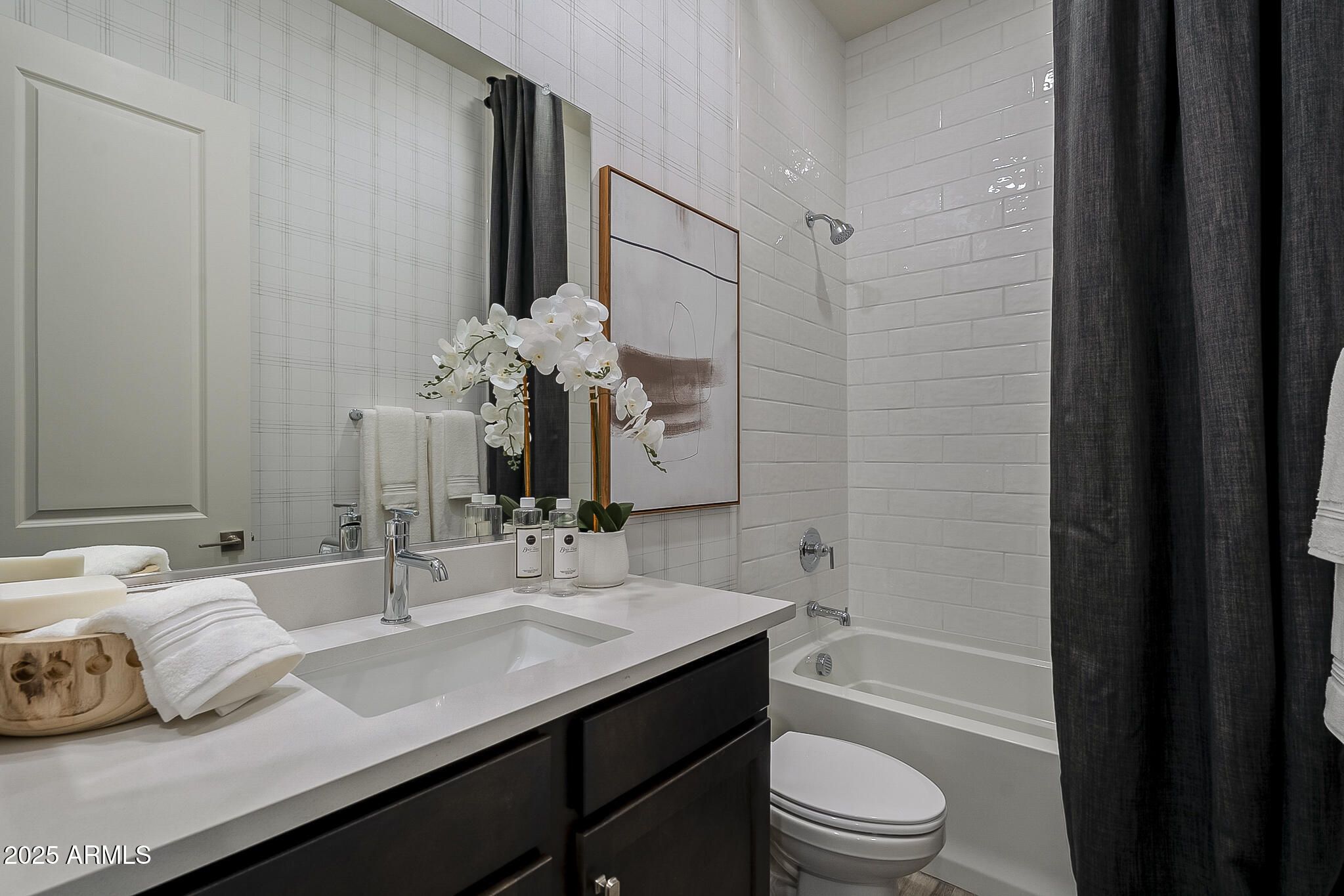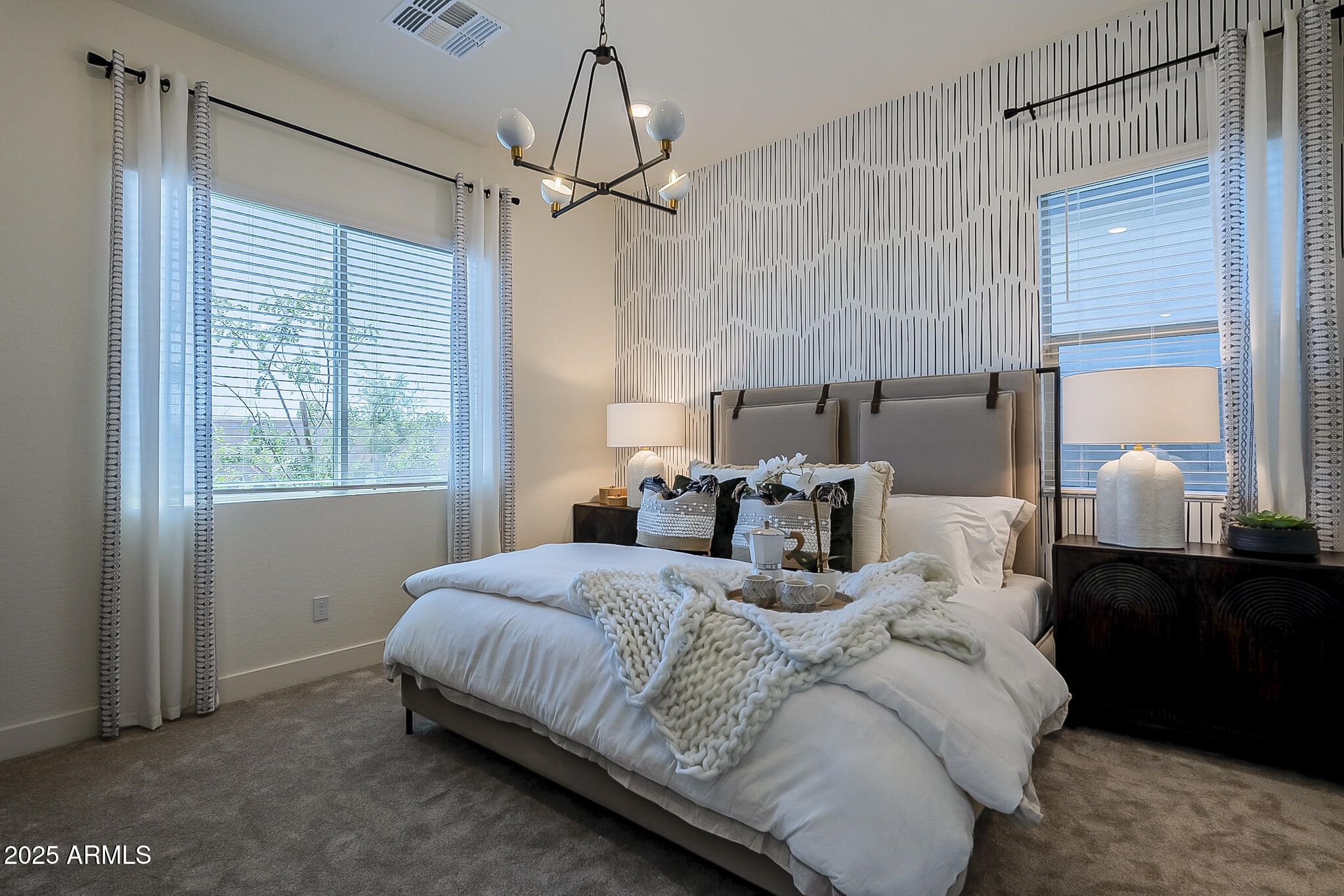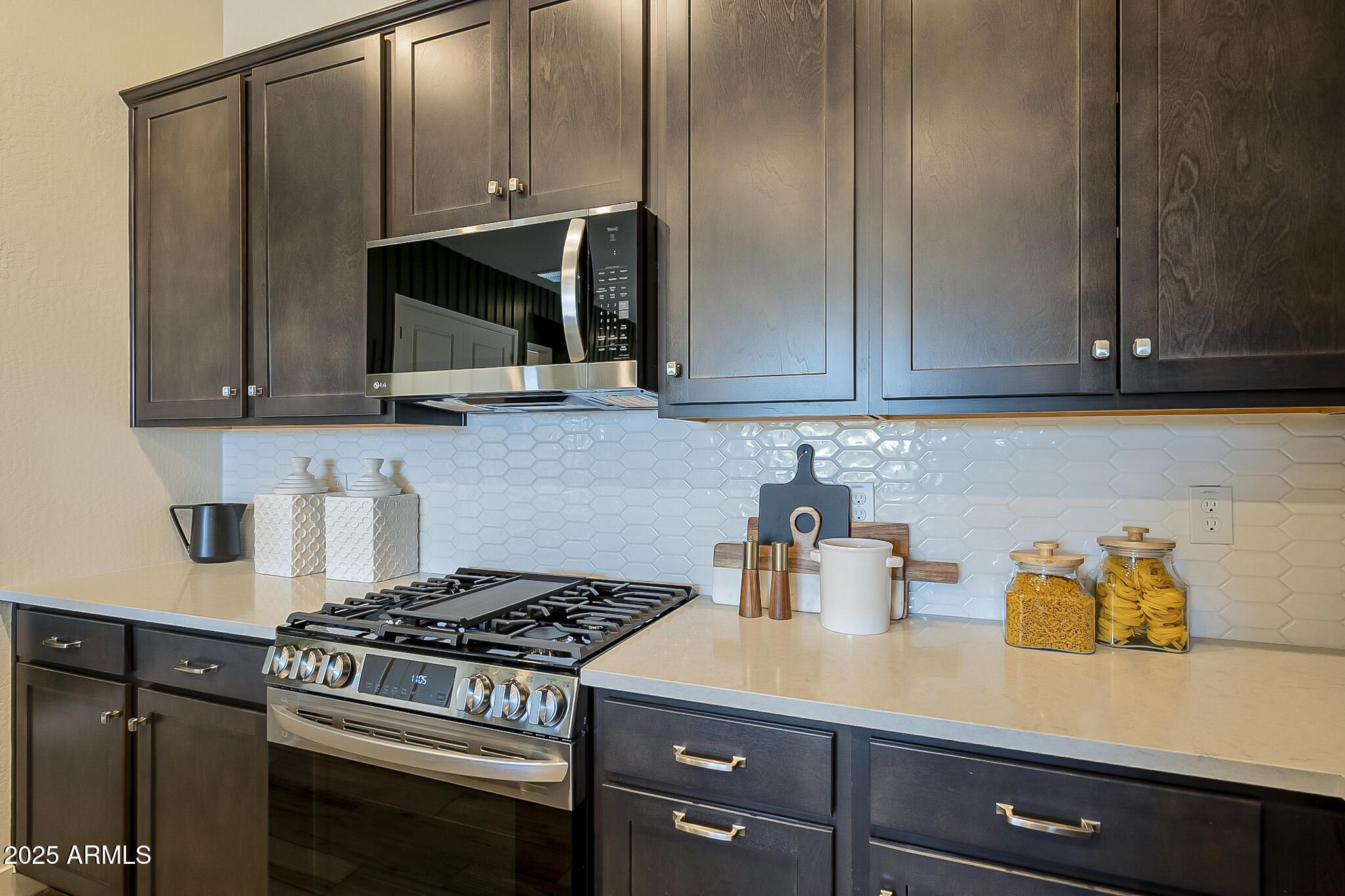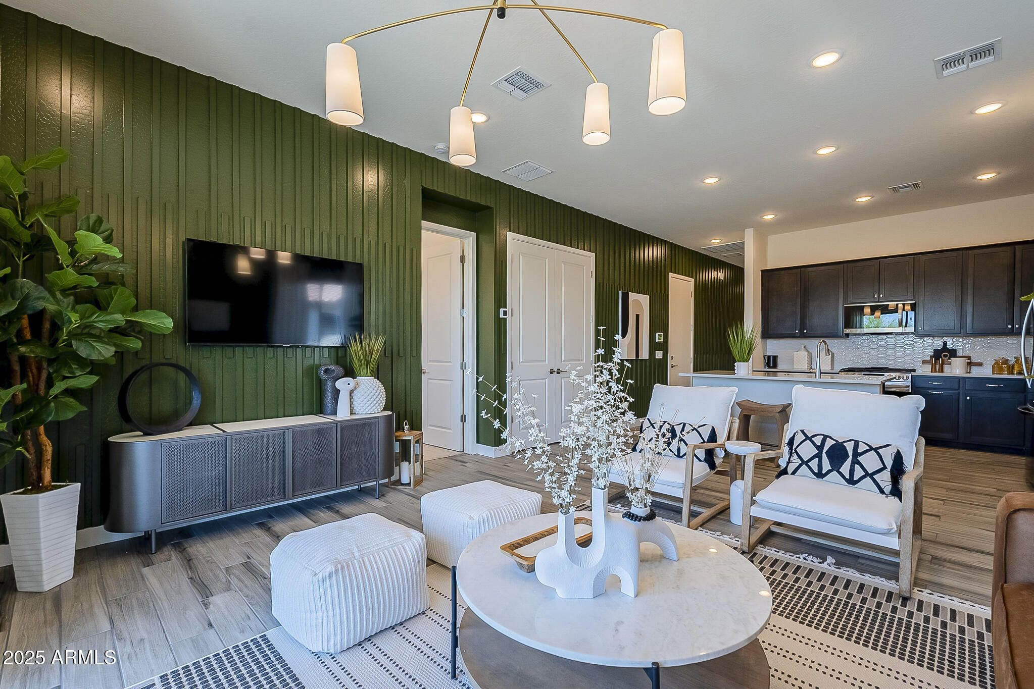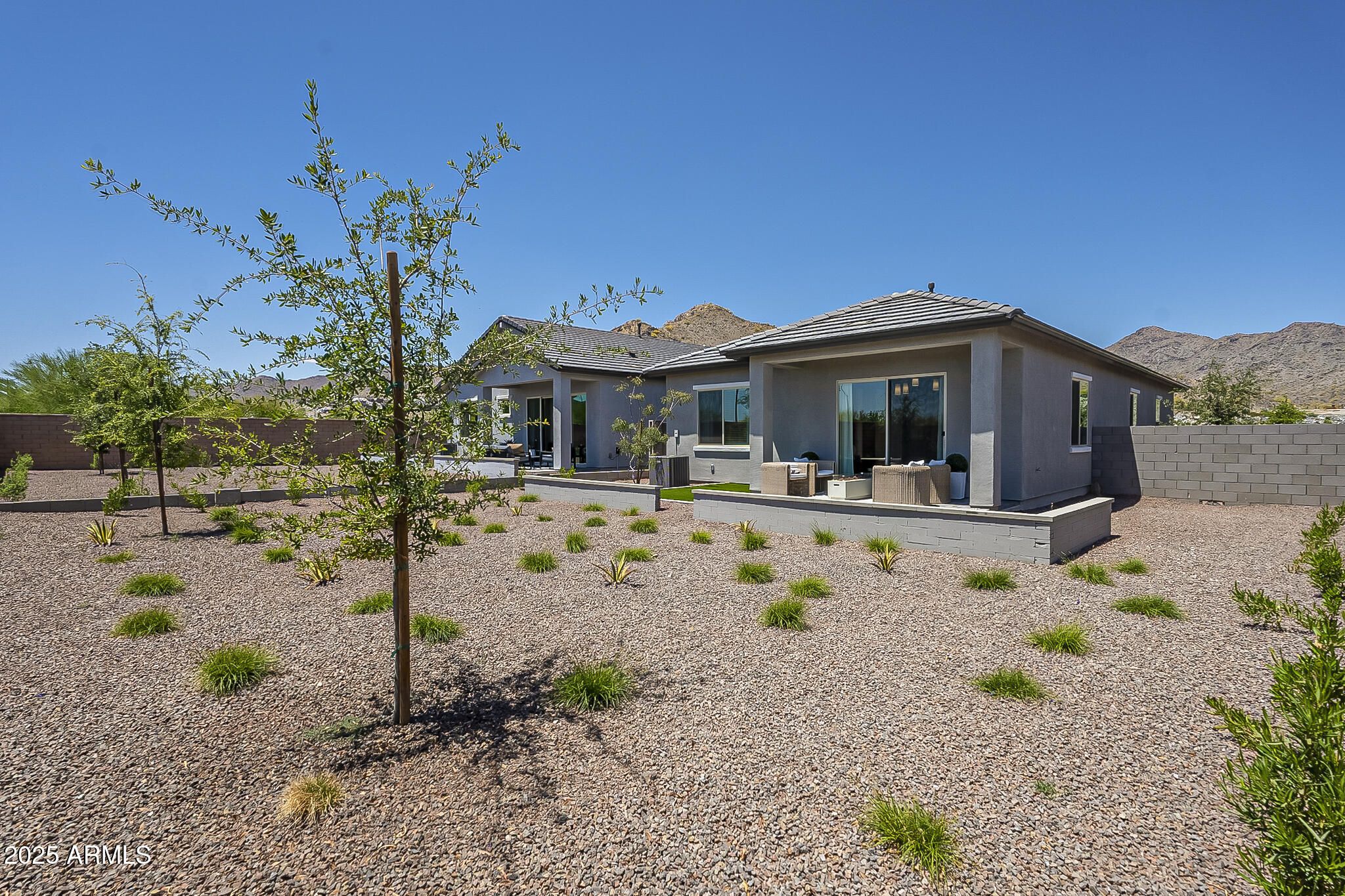 Experience mountainside living at its finest in the beautiful Victory at Verrado 55+ community! Located on the famous Builder Row, this stunning FORMER MODEL HOME offers 2 bedrooms, 2 bathrooms, and a versatile flex room—perfect for a home office, dining space, or cozy reading nook. With 10' ceilings and 8' doors, the open floor plan feels bright, spacious, and inviting.The home showcases elegant designer lighting, and upgrades throughout. The large lot provides added privacy and plenty of space to relax or entertain, while the paver driveway and walkway enhance its modern curb appeal.Perfect as your full-time residence or a winter retreat, this home combines comfort, functionality, and timeless style—a truly elegant desert escape. NOTE: Occupancy available the first week of January 2026