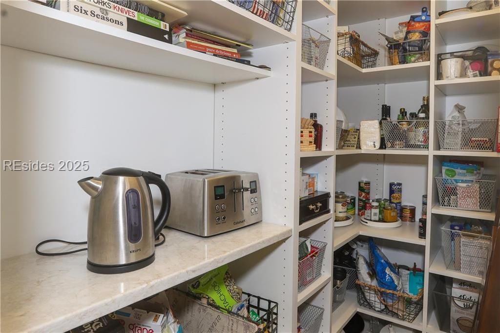 - Attic Access, Bookcases, Built-in Features, Tray Ceiling(s), Ceiling Fan(s), Carbon Monoxide Detector, Fire Extinguisher, Fireplace, Main Level Primary, Multiple Primary Bathrooms, New Paint, Smooth Ceilings, Separate Shower, Wired for Sound, Window Treatments, Entrance Foyer, Eat-in Kitchen, Pantry, Workshop