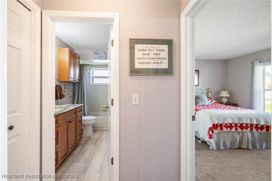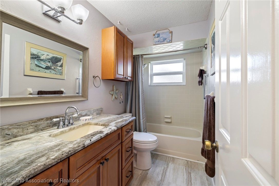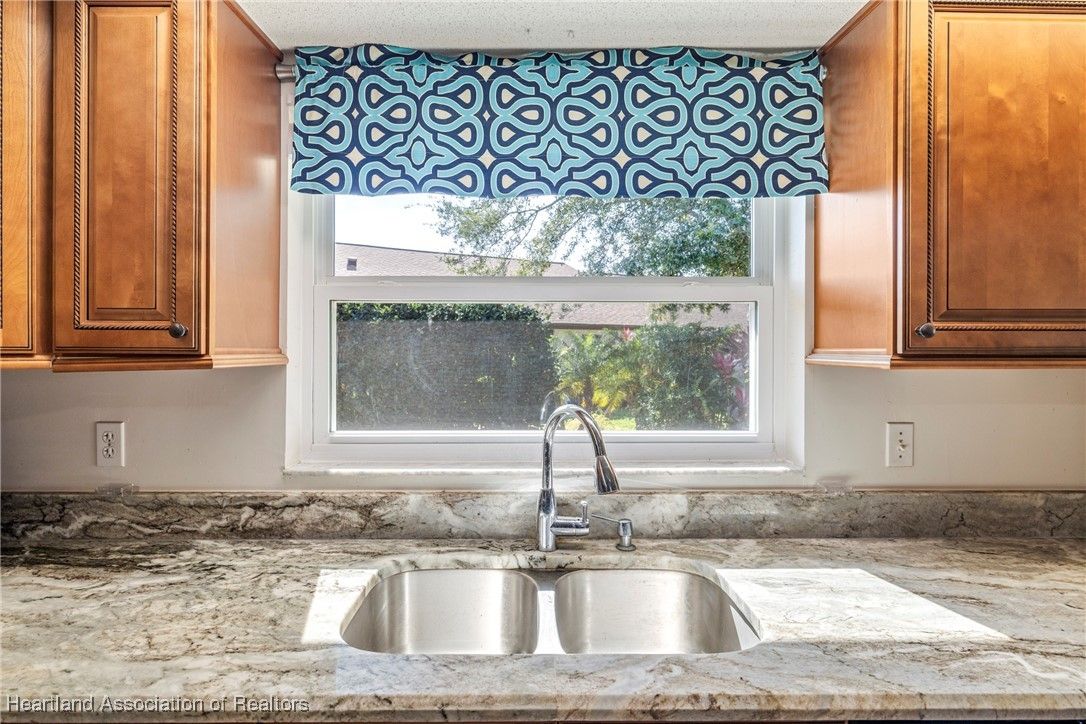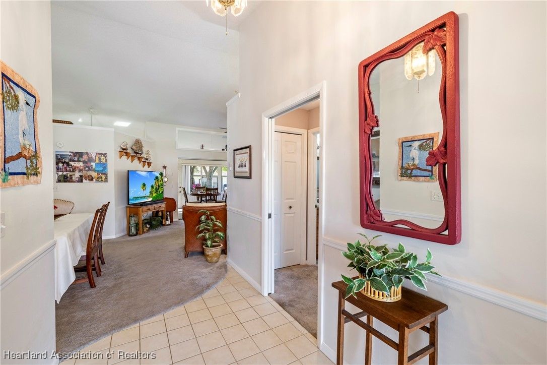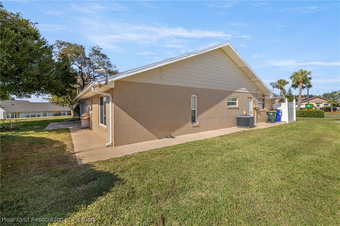 Welcome to this beautifully maintained 2 bedroom 2 bath home located in the highly desirable gated 55+ community of Tomoka Heights, where comfort, quality craftsmanship, and peaceful surroundings come together in one inviting setting. The exterior features a manicured lawn, mature landscaping, a wide driveway, and a welcoming covered entry that sets the tone for the warm and thoughtfully designed interior. Inside, the open concept layout blends the dining room, living room, and family room into one expansive and comfortable living space. The dining room flows naturally into the living room which offers vaulted ceilings, soft natural light, and an inviting atmosphere for both everyday living and entertaining. The living room continues into a large family room with multiple windows that provide a panoramic view of the beautiful backyard and allow sunlight to brighten the space throughout the day. The kitchen is a standout feature and includes custom wood cabinetry, abundant storage, and stunning Peterborough granite countertops that add elegance and durability. A large window above the sink brings in natural light and frames a soothing view of the outdoors. The kitchen layout opens directly into the family room so the cook is always part of the conversation. To the left of the kitchen is the private master suite which includes a spacious bedroom, a generous closet, and an ensuite bathroom with a walk in shower and updated finishes. The guest wing is located to the right of the living and dining areas and features a comfortable second bedroom and an adjoining full bath. This ideal split floor plan offers privacy for both residents and guests and makes the home perfect for both seasonal and full time living. Other highlights include a new roof (2019), new AC (2019), new windows (2019), interior laundry room with built in cabinetry, ceiling fans, upgraded flooring and well maintained neutral finishes that make the home move in ready. Residents of Tomoka Heights enjoy an exceptional lifestyle supported by a variety of core amenities. The community offers a heated inground swimming pool, a well appointed community center for gatherings and activities, shuffleboard courts, pickleball courts, and a scenic lakefront setting on Lake Henry with additional access to Lake June. These amenities provide opportunities for relaxation and recreation while enhancing the overall Florida lifestyle that draws so many people to this well established neighborhood. Tomoka Heights is known for its secure gated entrance, peaceful atmosphere, beautifully maintained common areas, and friendly environment that makes it one of the most sought after 55 plus neighborhoods in the Lake Placid area.