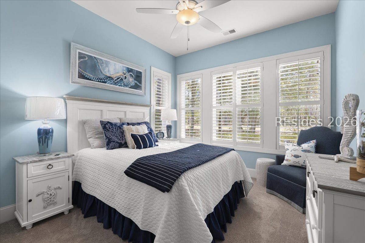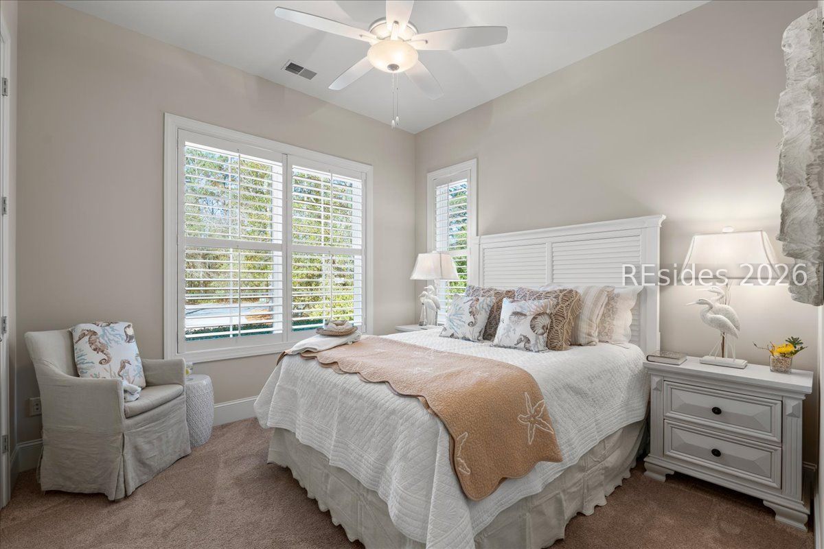 Stunning Custom H2 Home on the Golf Course in Hilton Head Plantation. Experience Lowcountry living at its finest in this beautifully crafted 2014 H2 custom home, perfectly positioned along the fairway and at the end of a cul-de-sac in the highly sought after Hilton Head Plantation. This 4BD/3BA residence blends modern comfort with timeless coastal design, offering an inviting retreat surrounded by lush natural beauty. Step inside to an open, light filled floor plan featuring quality finishes, thoughtful details, and seamless indoor-outdoor flow. The living room anchors the home with soaring ceilings and serene views of the golf course and a cozy gas fireplace. A gourmet kitchen with custom cabinetry, premium appliances, and a generous island makes entertaining effortless. The primary suite, located on the first floor, provides a peaceful escape with a spa inspired bath and ample closet space. Two additional bedrooms on the first floor offer flexibility for guests, a home office, or multigenerational living. Upstairs, find a 4th bedroom or large bonus room and another full bathroom. Outdoor living shines here-relax on the covered porch, enjoy morning coffee overlooking the greens, or host gatherings in the beautifully landscaped yard. Hard coat stucco, oversized 2 car garage with epoxy flooring, freshly painted, plantation shutters throughout, central vacuum, plenty of attic storage and spray foam insulation. Located within one of Hilton Head's premier gated communities, this home offers easy access to world class amenities including golf, pools, leisure trails, Skull Creek Marina, and the island's natural beauty. A rare opportunity to own a custom built home with golf course views in an exceptional community.