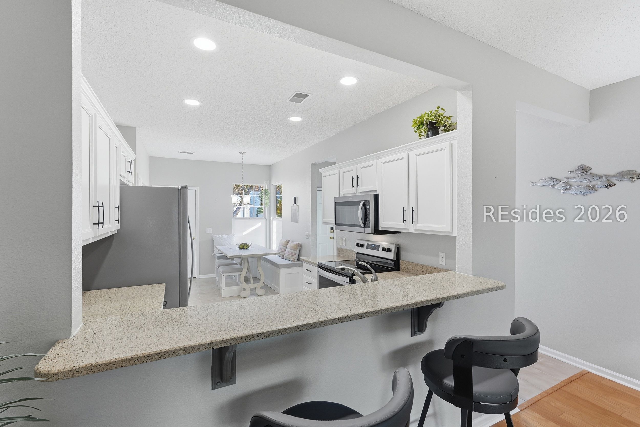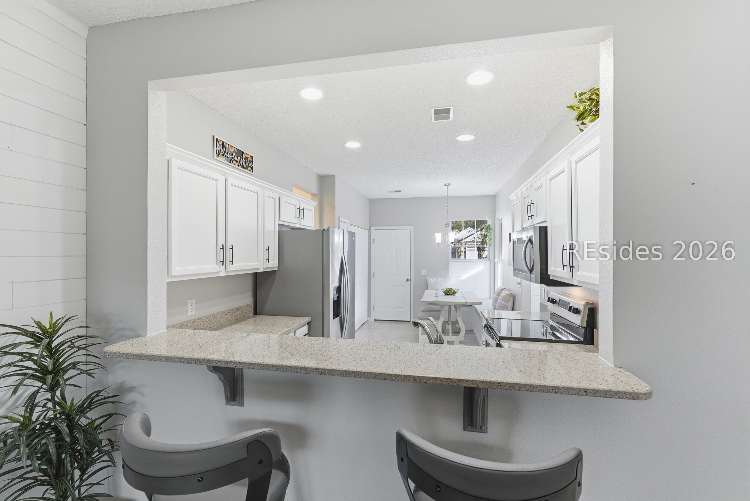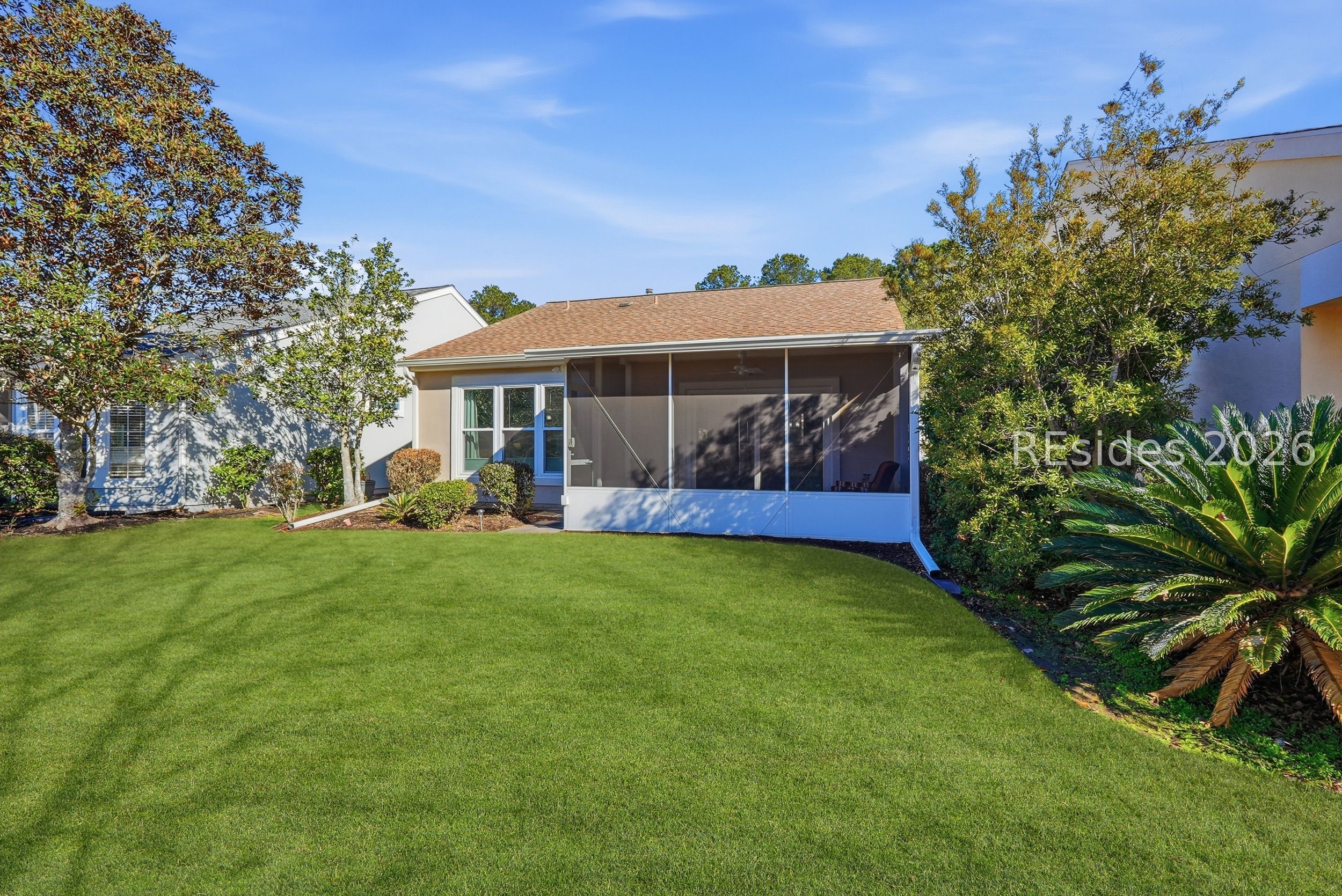Welcome home to this fully furnished 2BD/2BA Azalea model offering a serene water-to-landscape views and a prime location near the Hidden Cypress Amenity Center in Sun City South. This turnkey property is ideal as a primary residence, vacation getaway, or investment opportunity.The updated kitchen features granite countertops, refreshed white cabinetry, stainless steel appliances, and a charming eat-in area with built-in bench seating. Additional highlights include wood flooring, a screened lanai for enjoying the peaceful setting, shiplap accent wall in the living room, and a 2023 water heater. A one-year home warranty is included for added peace of mind. Living in Sun City Hilton Head offers a true resort-style experience with access to golf courses, indoor and outdoor pools, fitness centers, walking trails, a wide variety of clubs, and a lively social calendar. Conveniently located near shopping, dining, medical facilities, and just a short drive to the beaches of Hilton Head Island, this move-in-ready home provides both comfort and privacy in a highly desirable setting.