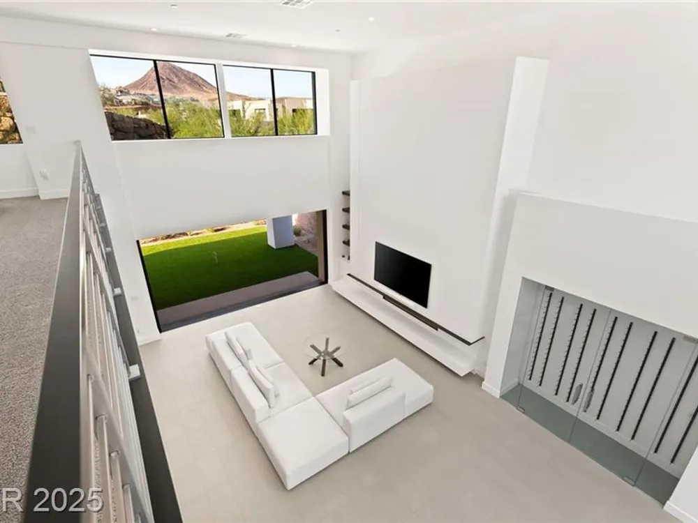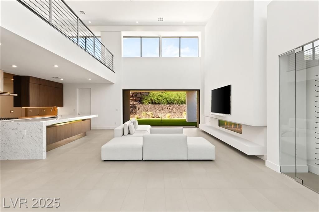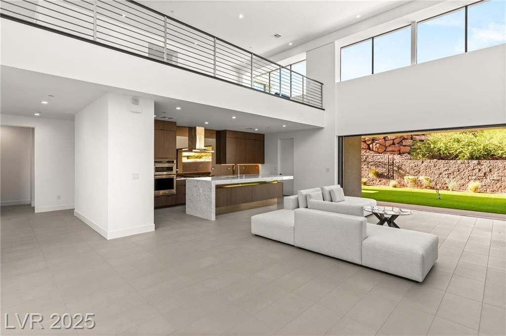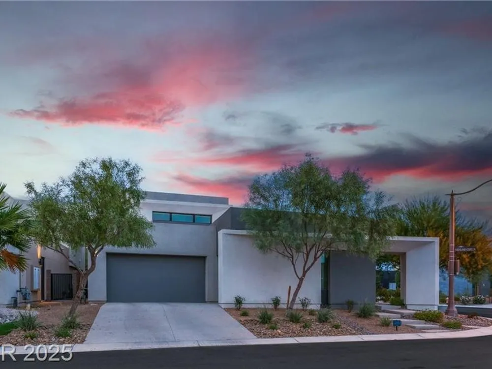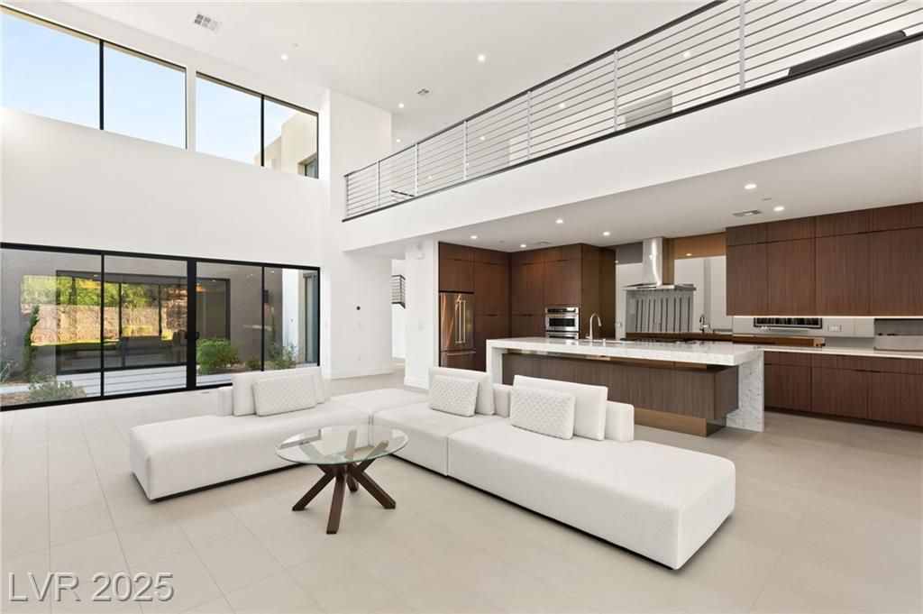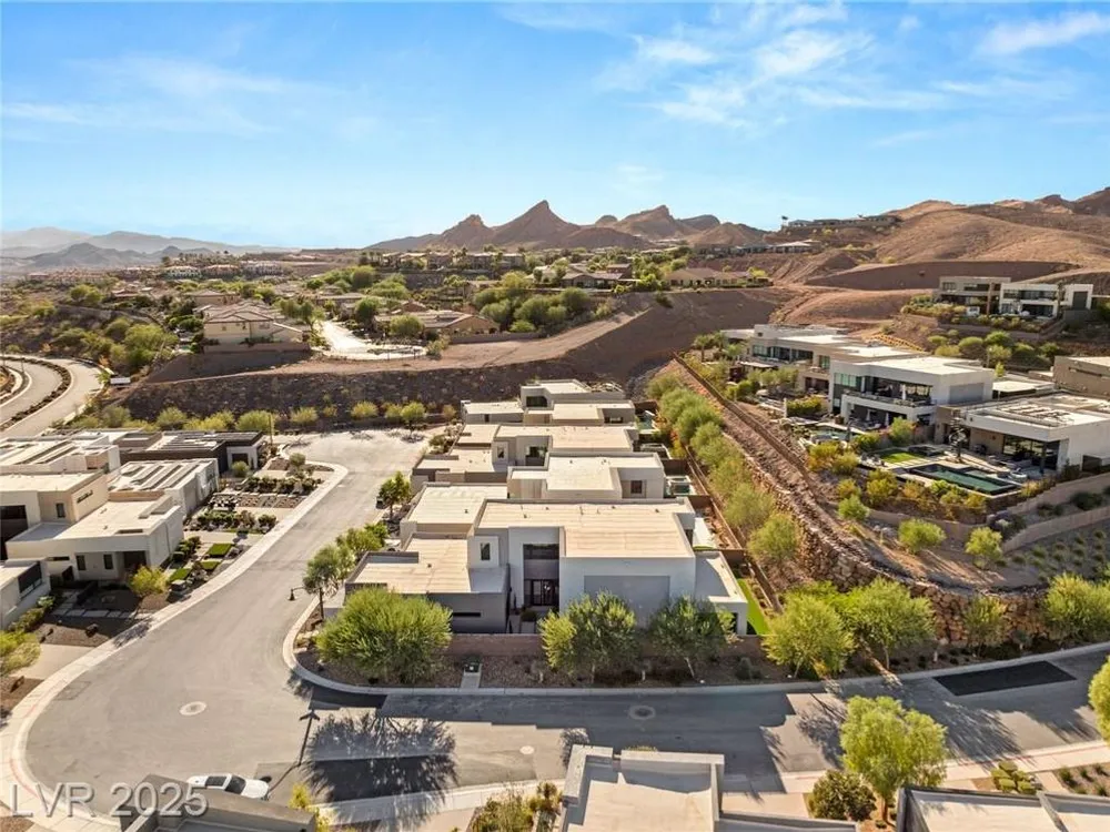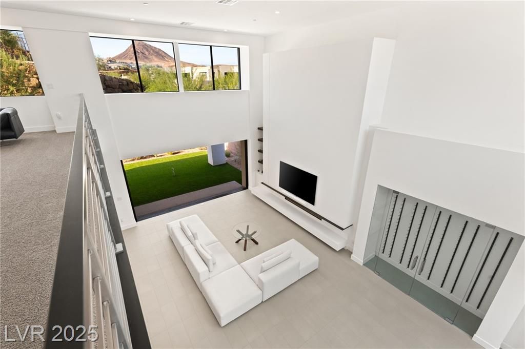 Step into a masterpiece of architectural elegance by Blue Heron, located within the prestigious Vantage gated community on a tiered bluff and corner lot overlooking Lake Las Vegas. This 4,692-square-foot luxurious retreat is a stunning example of an Architecturally Significant Home. Experience the seamless integration of biophilic design, highlighted by a captivating six-foot DaVinci fireplace and a custom wine room. Relax in the downstairs theater/media room or enjoy the expansive second story loft with overflow of natural light. The gourmet kitchen shines with a marble waterfall island and a bronze glass backsplash, while expansive floor-to-ceiling glass pocket doors blend indoor and outdoor spaces. The primary suite offers a serene escape, complete with a lavish bath and direct outdoor access. Discover unparalleled style and tranquility in this exclusive mountainside escape, offering panoramic lake and mountain vistas. Elevate your lifestyle with sophistication and innovation.