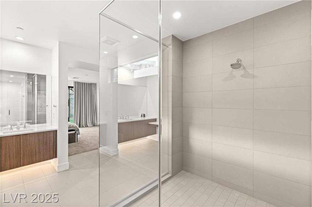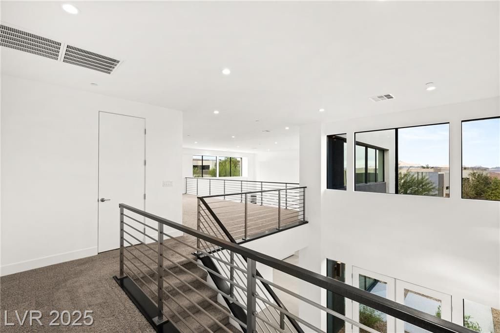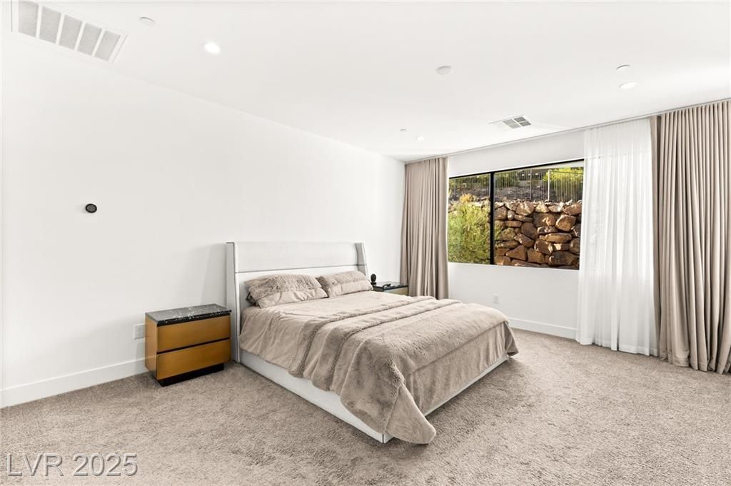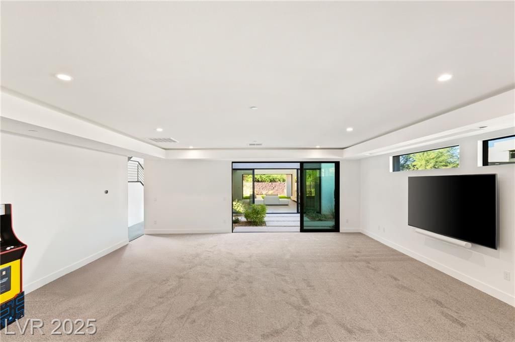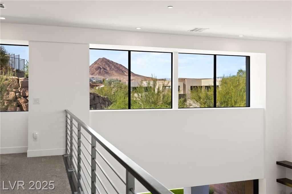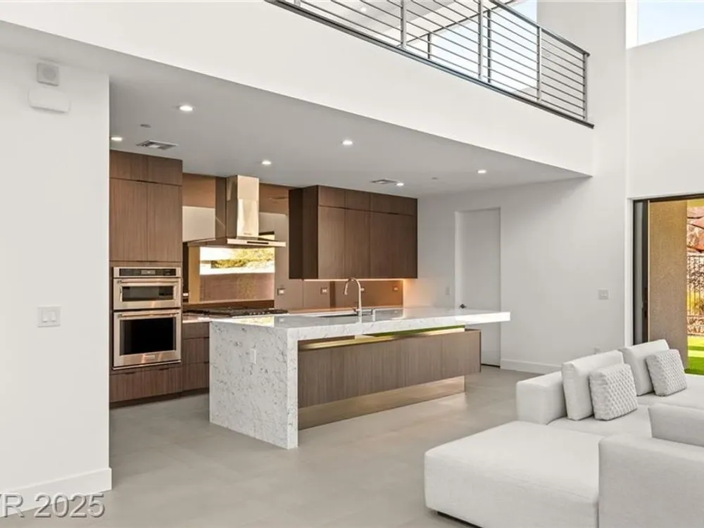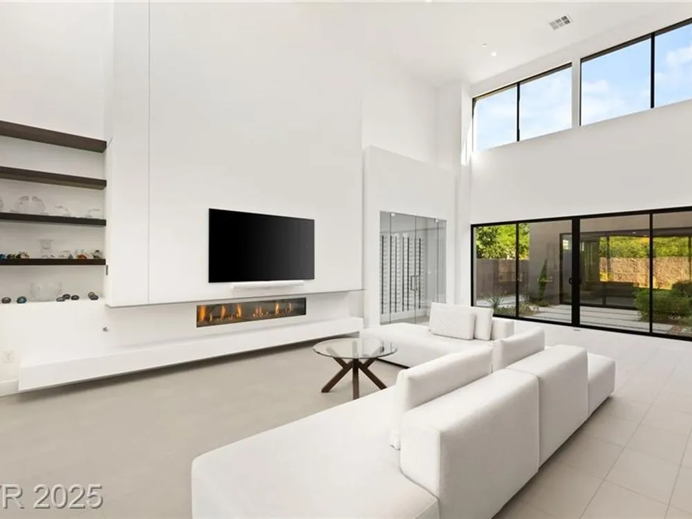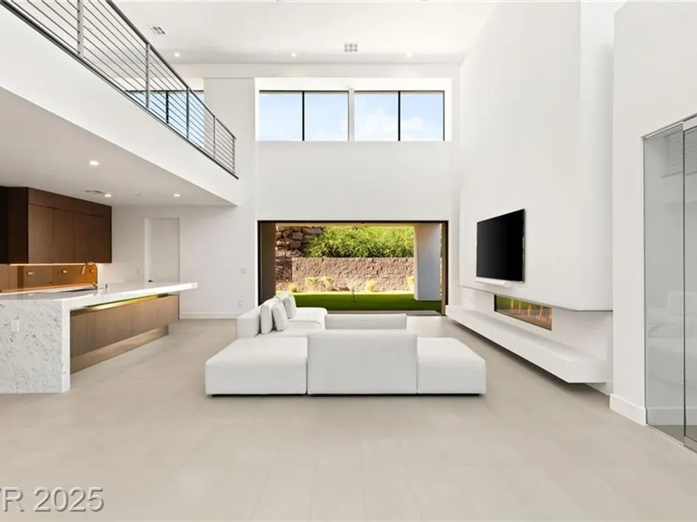 Step into a masterpiece of architectural elegance by Blue Heron, located within the prestigious Vantage gated community on a tiered bluff and corner lot overlooking Lake Las Vegas. This 4,692-square-foot luxurious retreat is a stunning example of an Architecturally Significant Home. Experience the seamless integration of biophilic design, highlighted by a captivating six-foot DaVinci fireplace and a custom wine room. Relax in the downstairs theater/media room or enjoy the expansive second story loft with overflow of natural light. The gourmet kitchen shines with a marble waterfall island and a bronze glass backsplash, while expansive floor-to-ceiling glass pocket doors blend indoor and outdoor spaces. The primary suite offers a serene escape, complete with a lavish bath and direct outdoor access. Discover unparalleled style and tranquility in this exclusive mountainside escape, offering panoramic lake and mountain vistas. Elevate your lifestyle with sophistication and innovation.