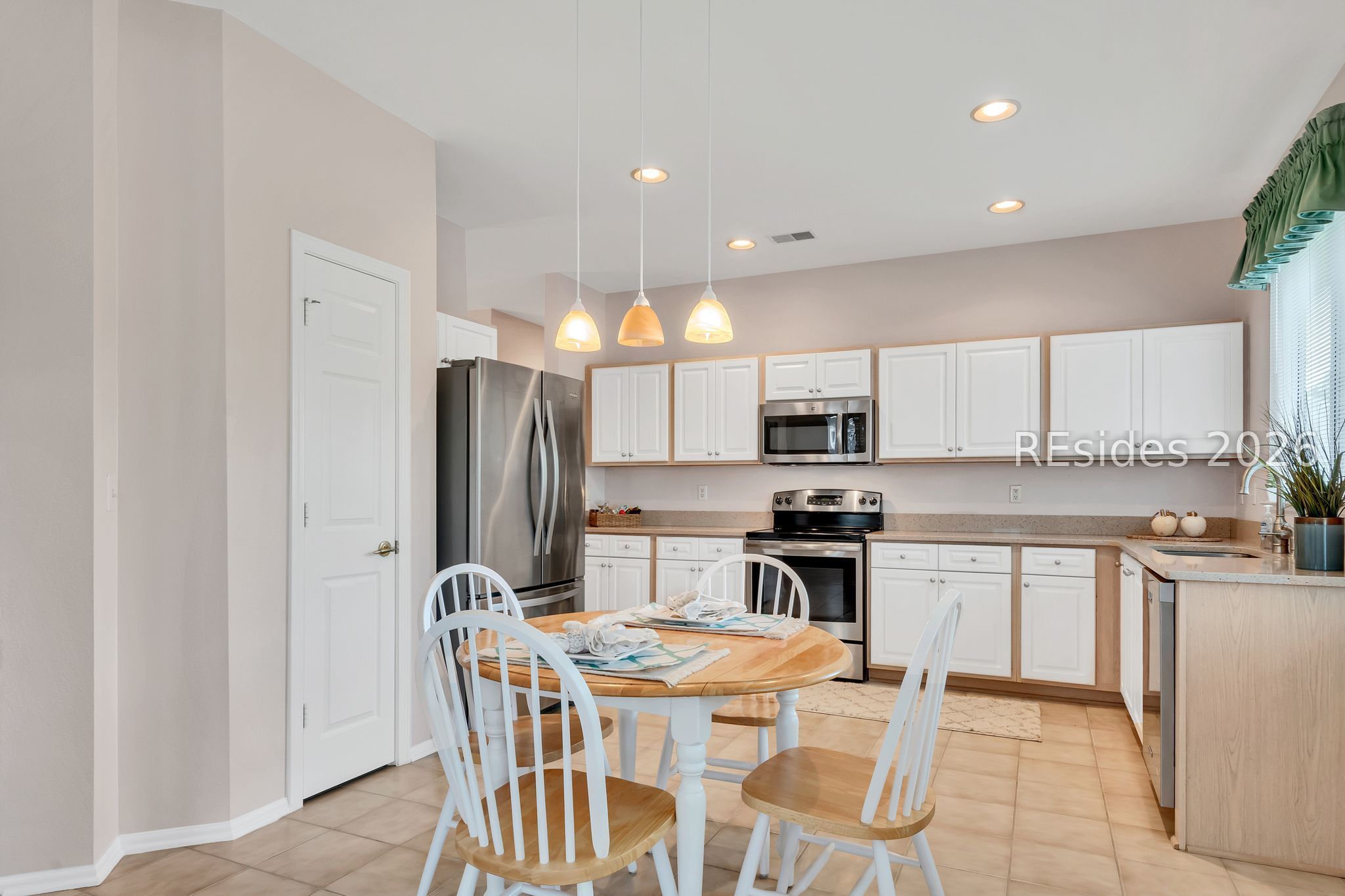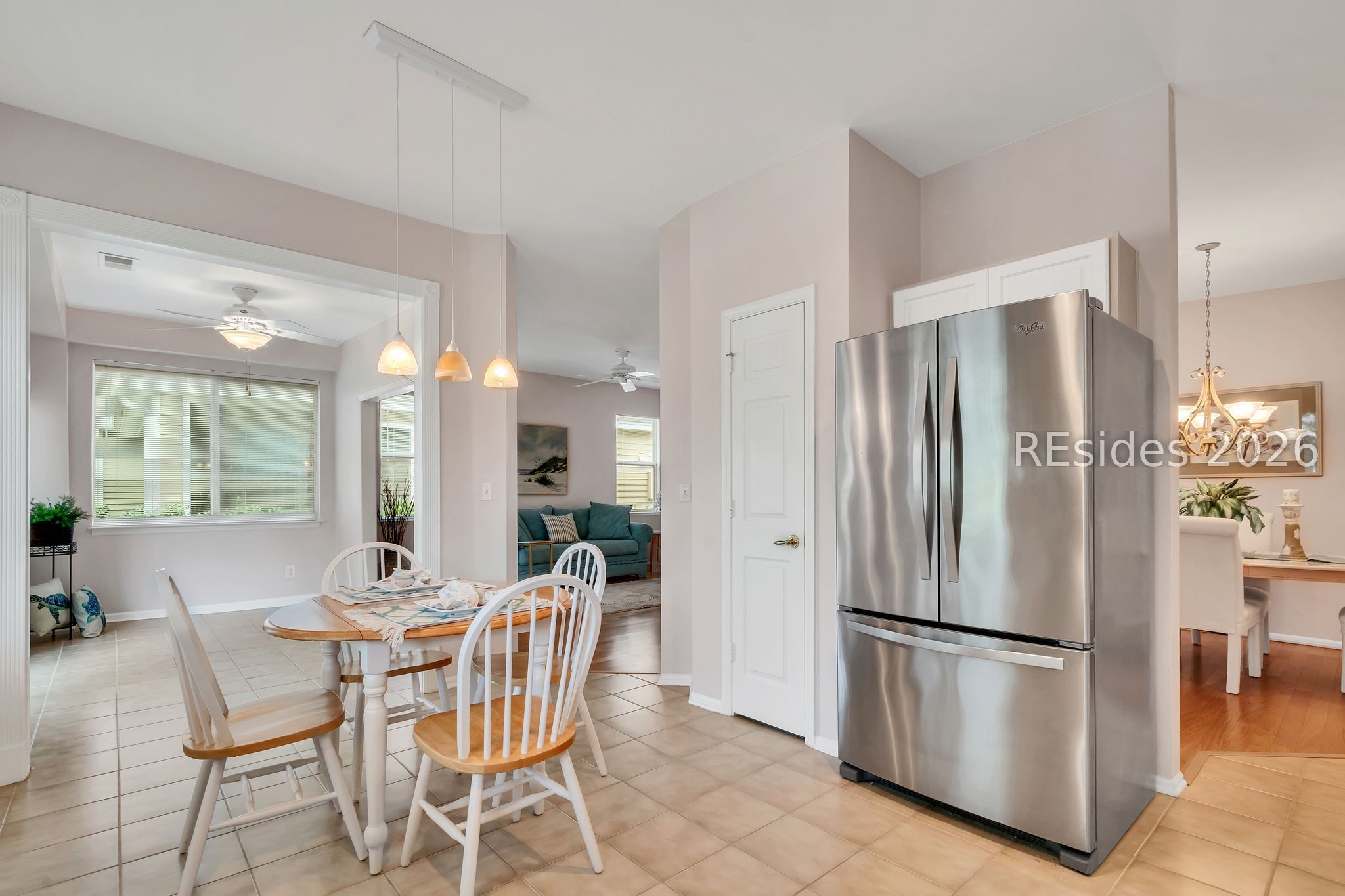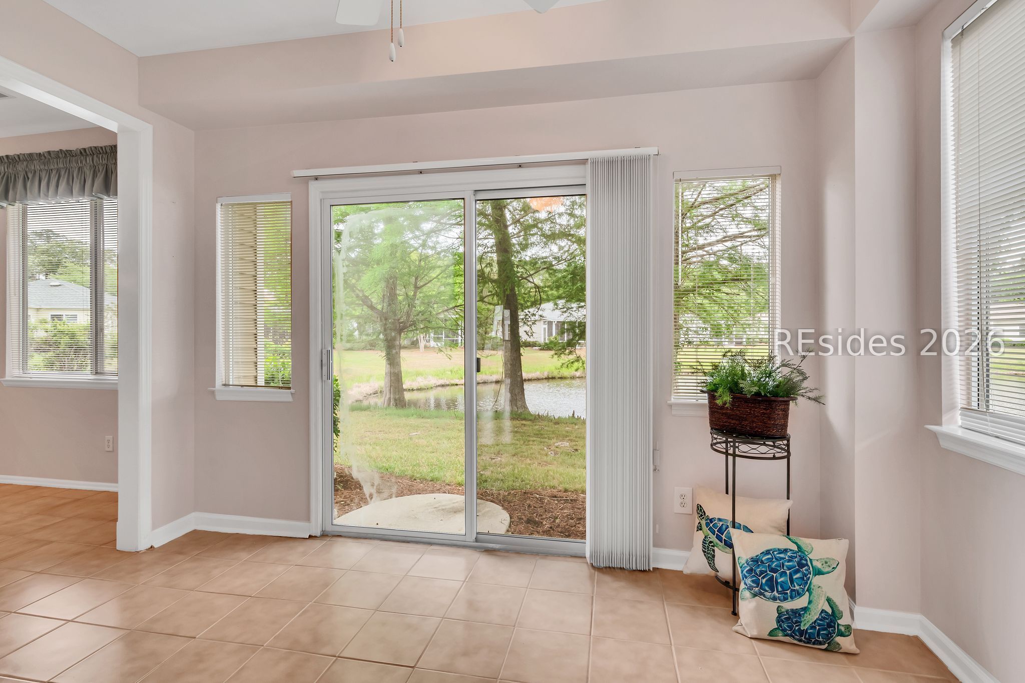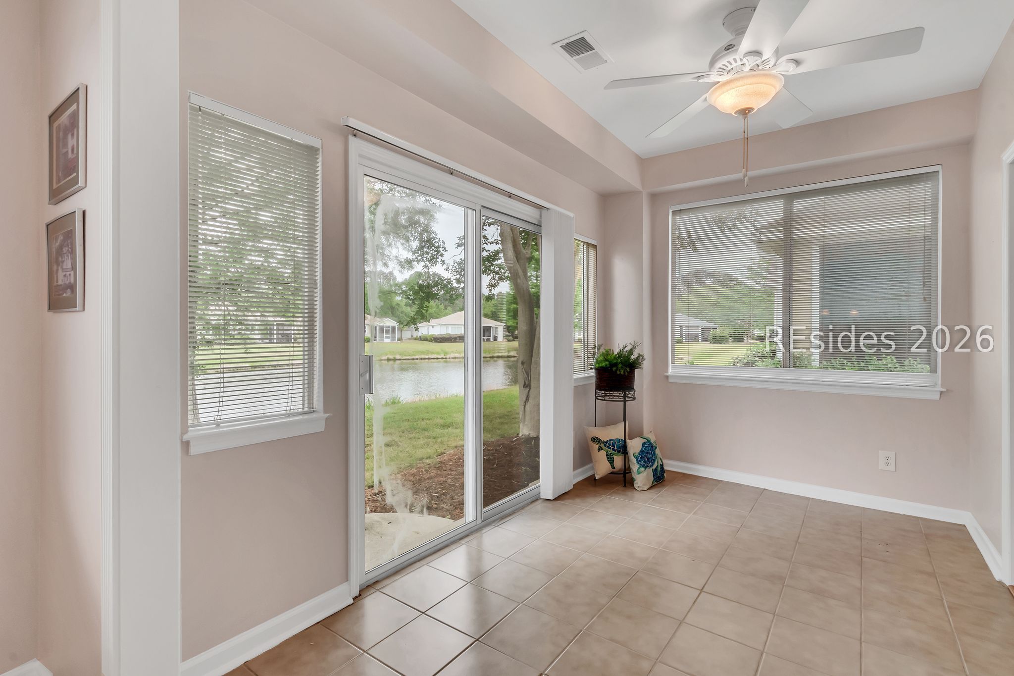 The poрular Dісkinson floorplаn offers an inviting Greаt Roοm with serene lagoon views. This charming villa welcomes you with a lovely front porch - perfect for enjoying your morning coffee. Inside, the entry foyer adjacent to the den/office leads to a spacious Great Room featuring a formal dining area that flows seamlessly into the light-filled Carolina Room.The eat-in kitchen is designed for both style and function, boasting quartz countertops, stainless steel appliances, a pantry, and a cozy breakfast area where you can relax while watching local wildlife.The primary suite features a bay window, a walk-in closet, and an en-suite bath with a glass door shower. A split floorplan provides privacy for guests, with a comfortable guest bedroom and adjoining full bath. Additional highlights include wood and tile flooring throughout, smooth ceilings, and ceiling fans. The two-car garage offers epoxy flooring, a laundry tub, and includes a washer and dryer. Ideally situated on a quiet cul-de-sac lane, this home combines comfort, convenience, and peaceful surroundings. This home seamlessly combines comfort, style, and practicality - an ideal setting to enjoy the very best of Sun City Hilton Head living.