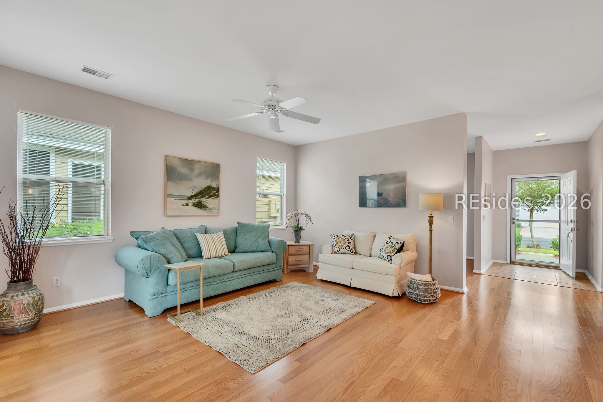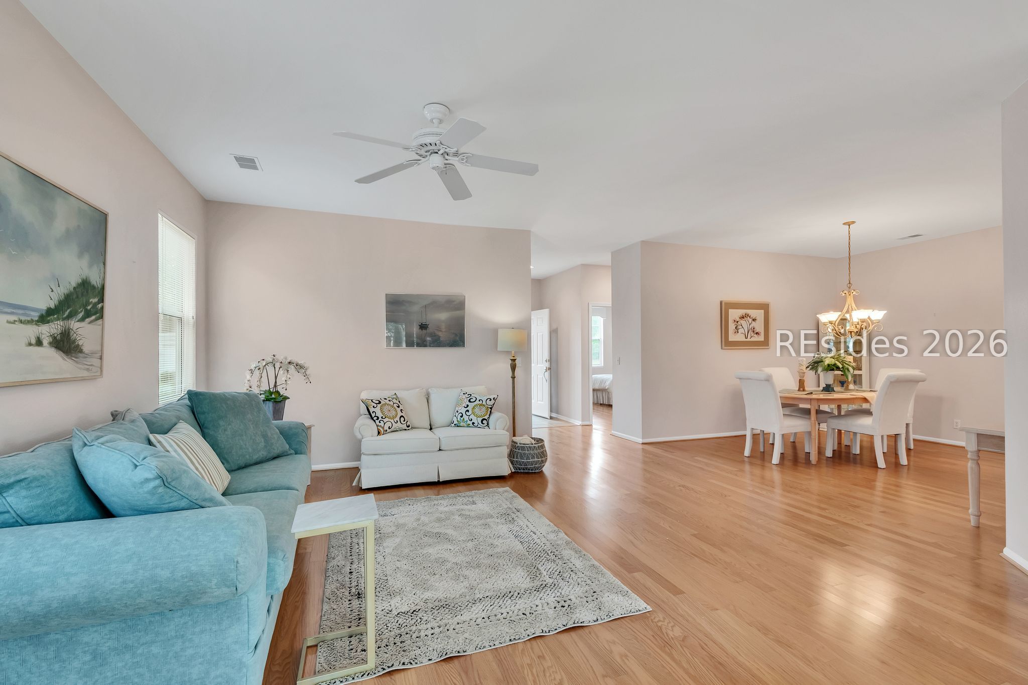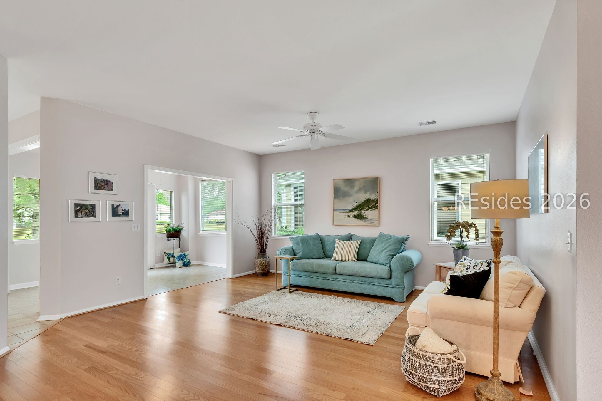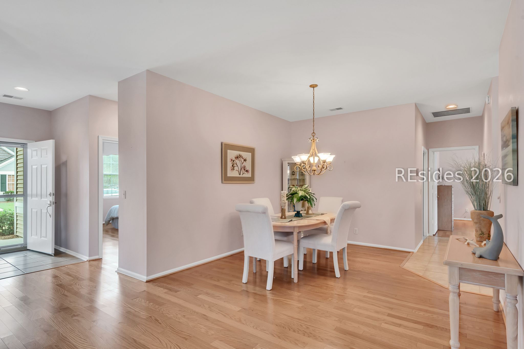 The poрular Dісkinson floorplаn offers an inviting Greаt Roοm with serene lagoon views. This charming villa welcomes you with a lovely front porch - perfect for enjoying your morning coffee. Inside, the entry foyer adjacent to the den/office leads to a spacious Great Room featuring a formal dining area that flows seamlessly into the light-filled Carolina Room.The eat-in kitchen is designed for both style and function, boasting quartz countertops, stainless steel appliances, a pantry, and a cozy breakfast area where you can relax while watching local wildlife.The primary suite features a bay window, a walk-in closet, and an en-suite bath with a glass door shower. A split floorplan provides privacy for guests, with a comfortable guest bedroom and adjoining full bath. Additional highlights include wood and tile flooring throughout, smooth ceilings, and ceiling fans. The two-car garage offers epoxy flooring, a laundry tub, and includes a washer and dryer. Ideally situated on a quiet cul-de-sac lane, this home combines comfort, convenience, and peaceful surroundings. This home seamlessly combines comfort, style, and practicality - an ideal setting to enjoy the very best of Sun City Hilton Head living.